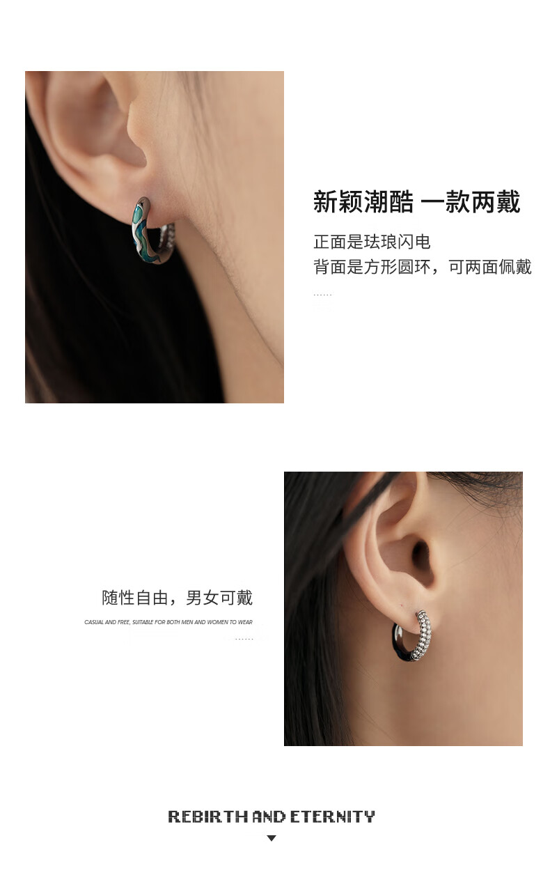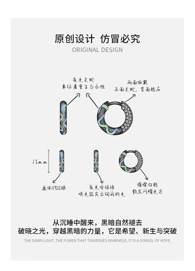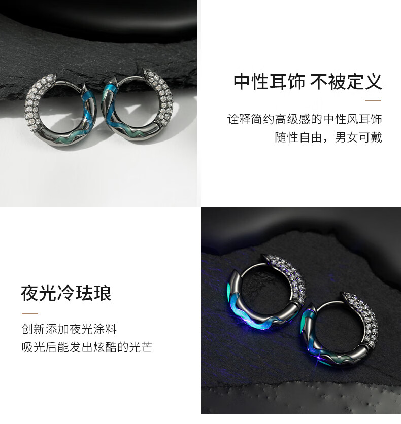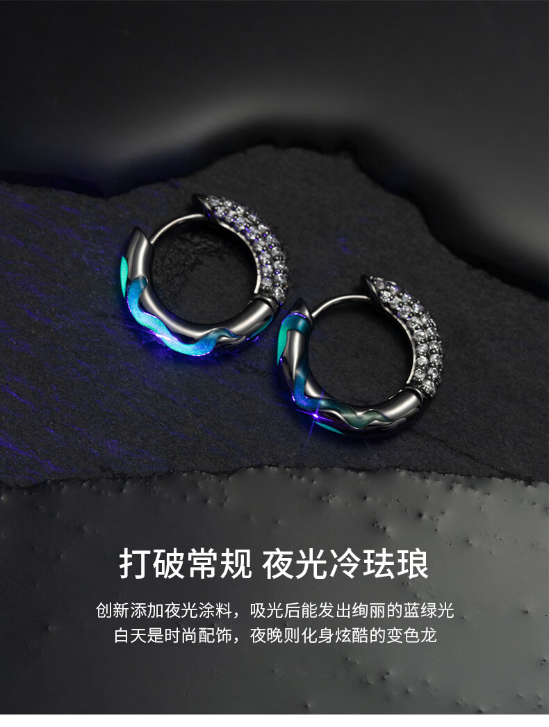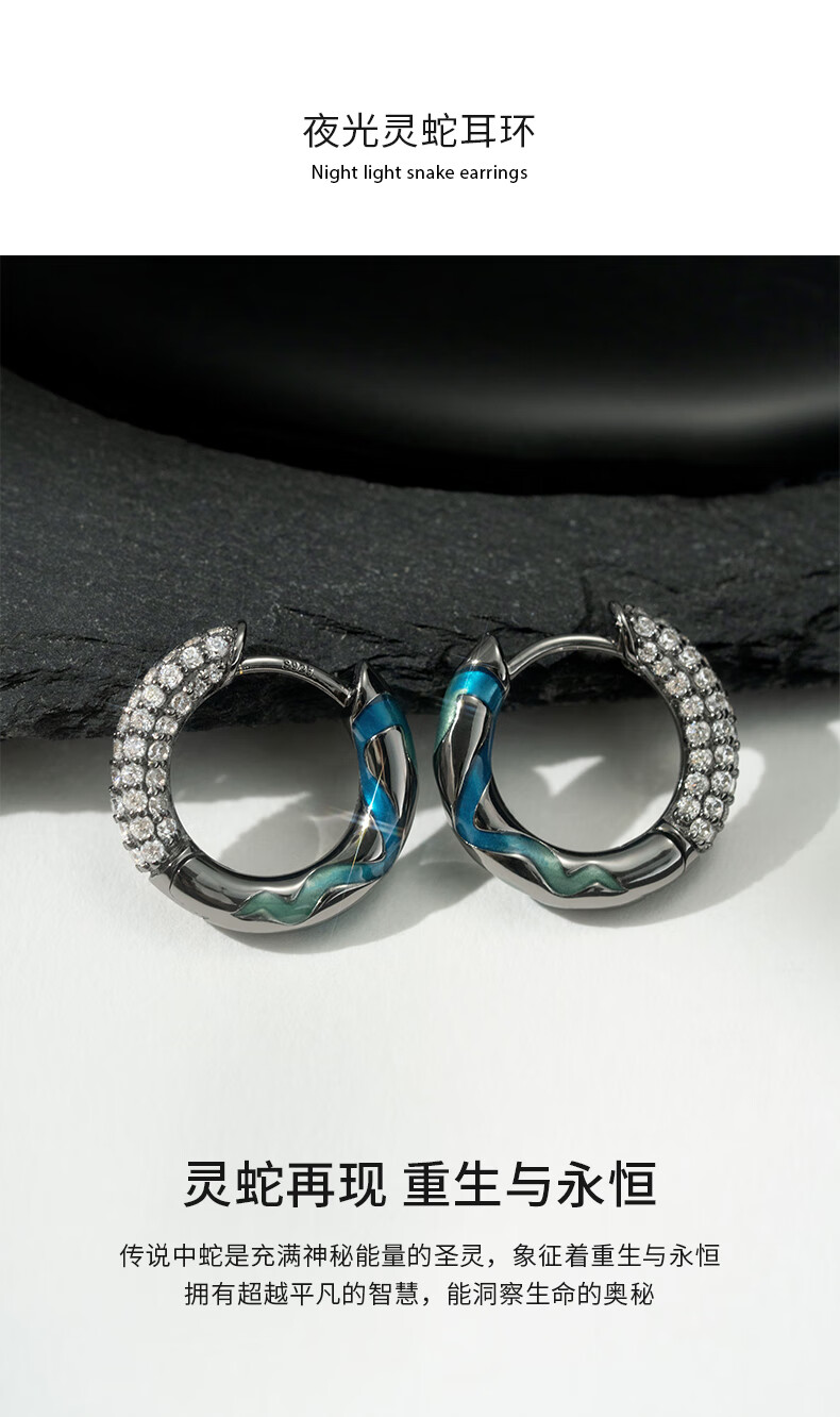 SINCE YOU Luminous Snake Earrings Men's Sterling Silver Earrings Personalized Niche Full Diamond High-Quality Two-Wear Earrings Female Birthday Gift Luminous Snake Earrings (One Pair)