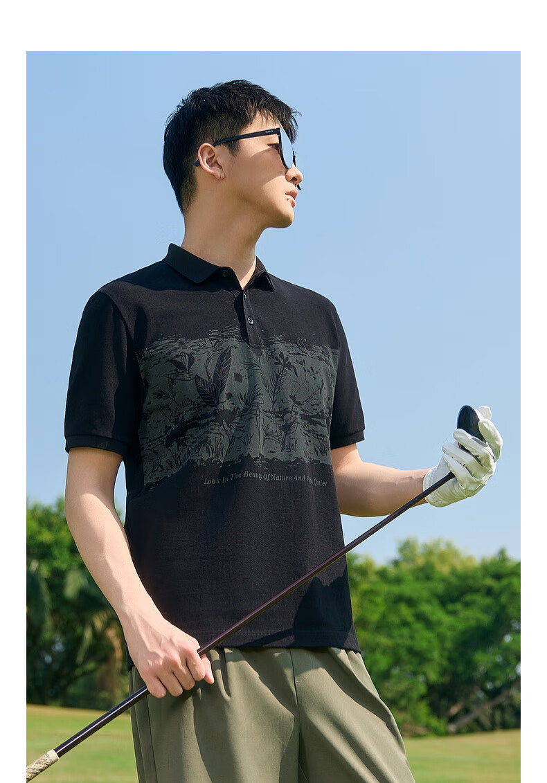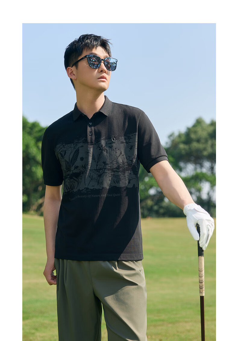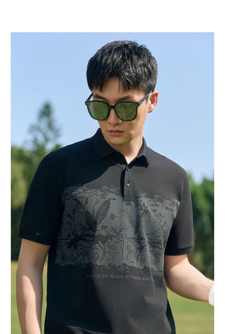 CABBEEN Ice Oxygen Cool Polo Shirt Men's Cool Mesh Art Floral Summer Short-Sleeved Polo Shirt Men's Anthracite 01 (Comfortable Version) L /175/50