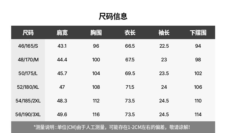 Size (cm) 42 44 46 48 50