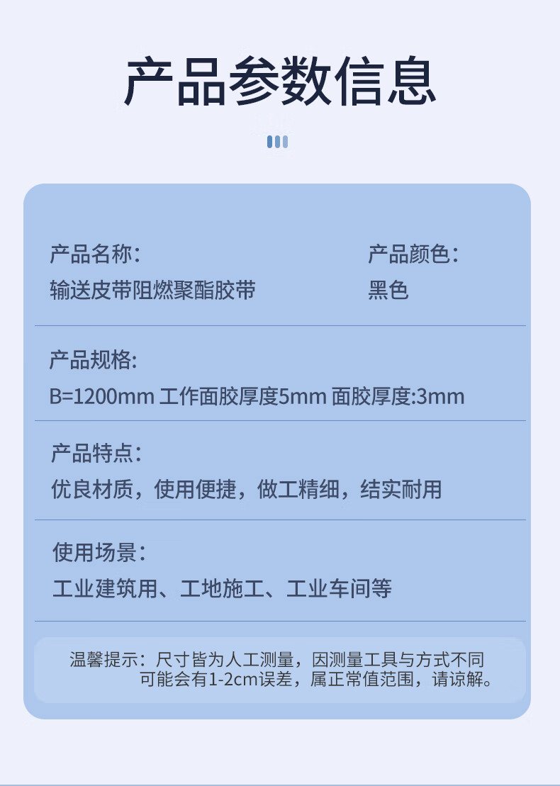 TEDA conveyor belt flame retardant polyester tape B=1200mm working surface tape thickness 5mm surface tape thickness 3mm