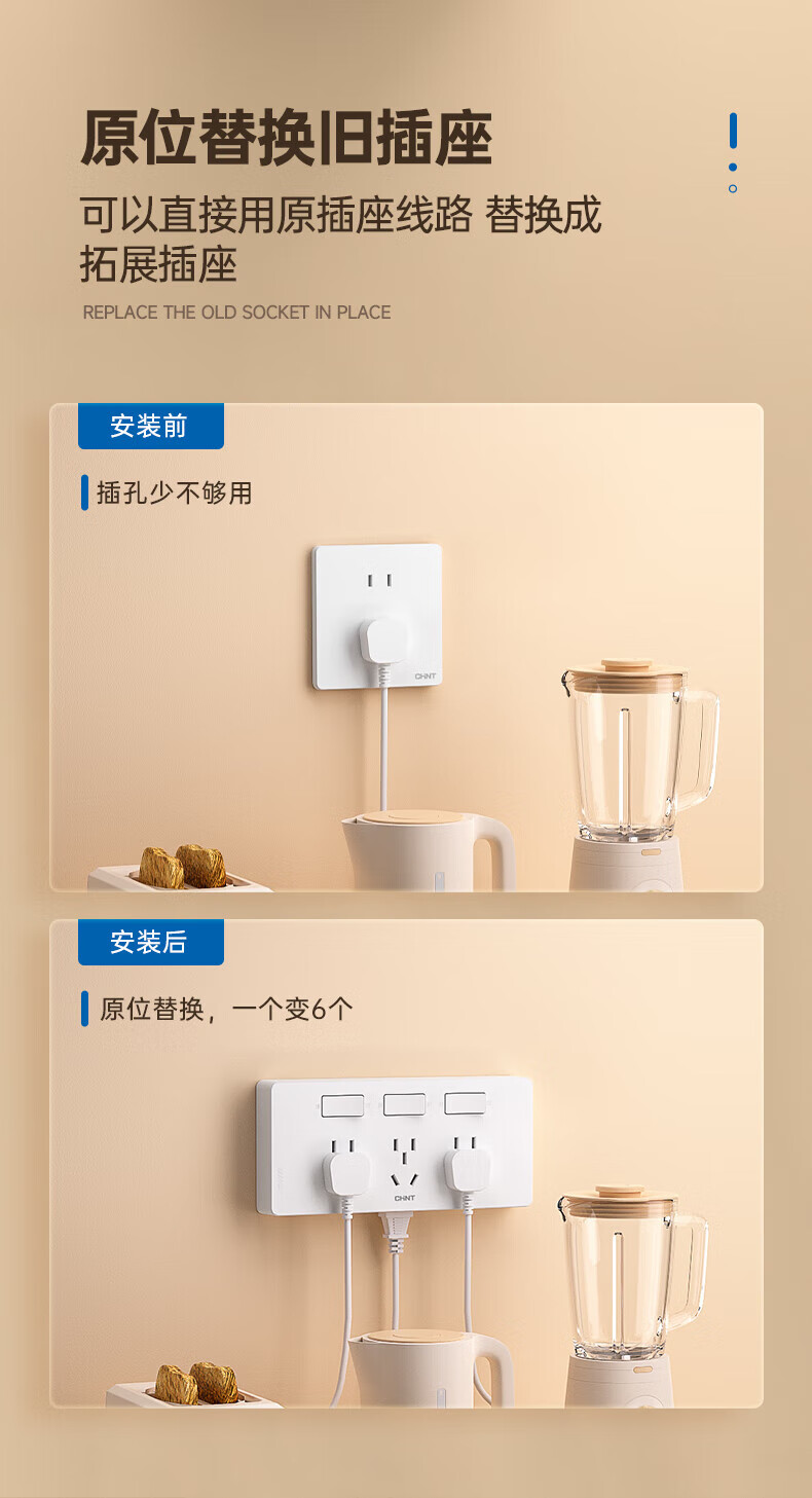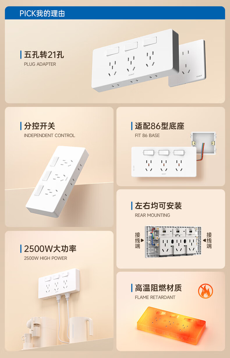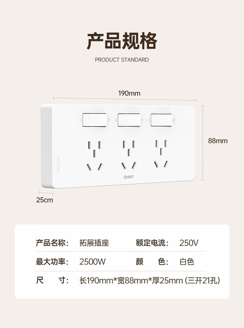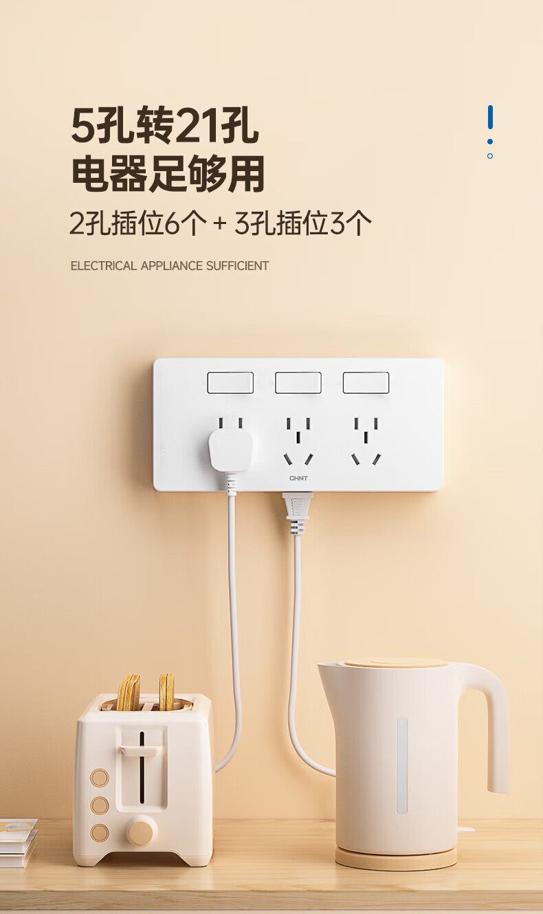 Chint (CHNT) extended switch socket 21-hole multi-hole converter wall switch panel independent switch white 21 holes