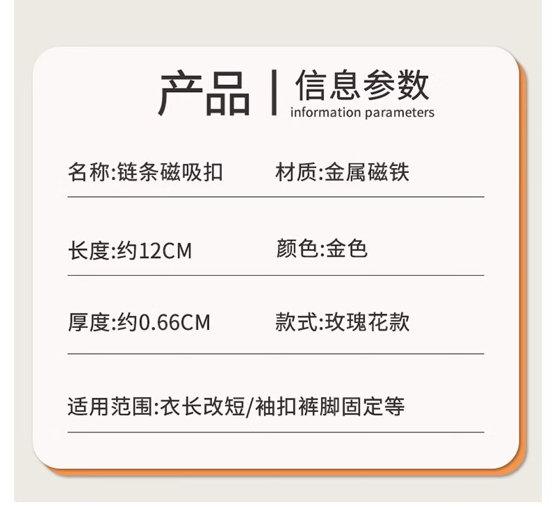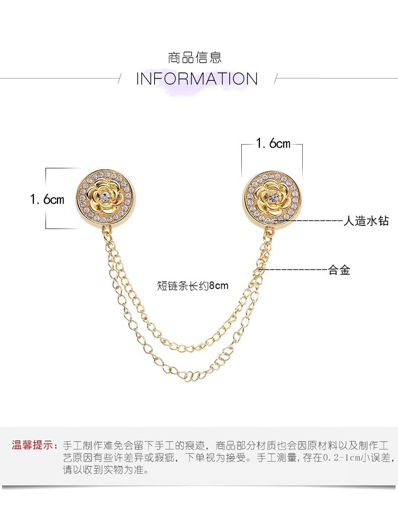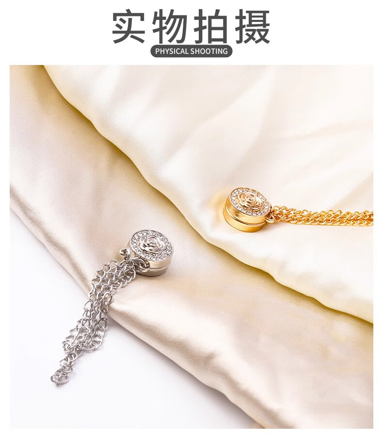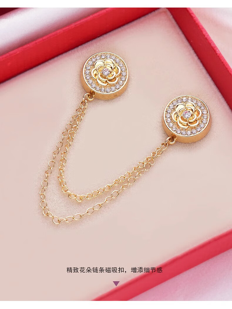 Shufen cufflinks, light luxury style shirts, seamless chain magnetic buckles, women's sleeve length and corner shortening artifact, daily versatile Q0108 golden rose chain cufflinks (pair)