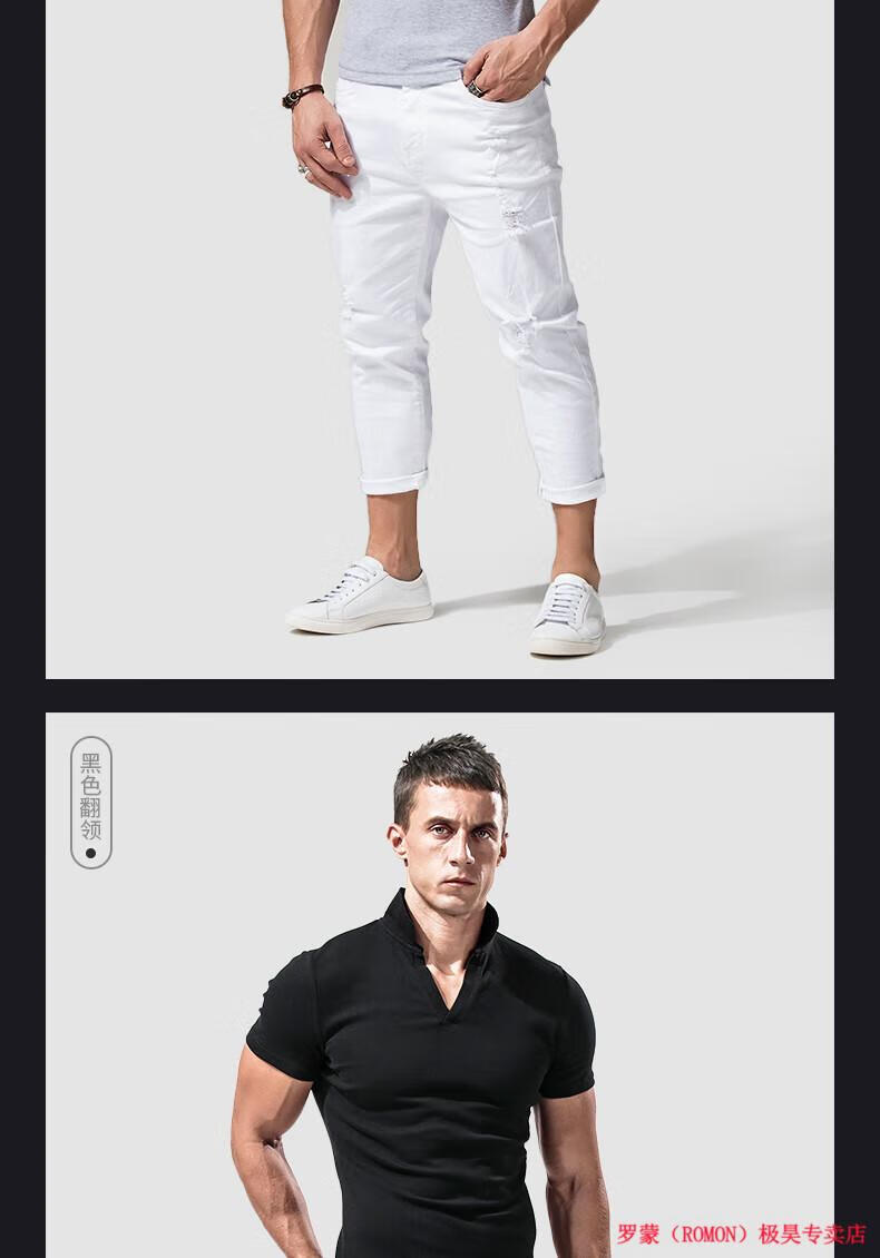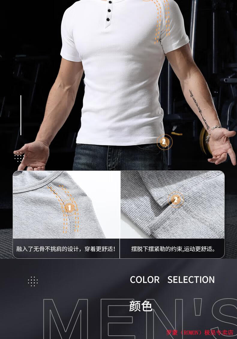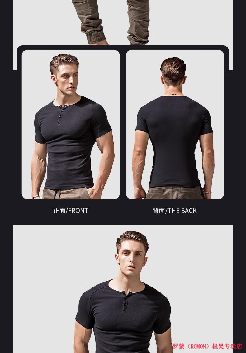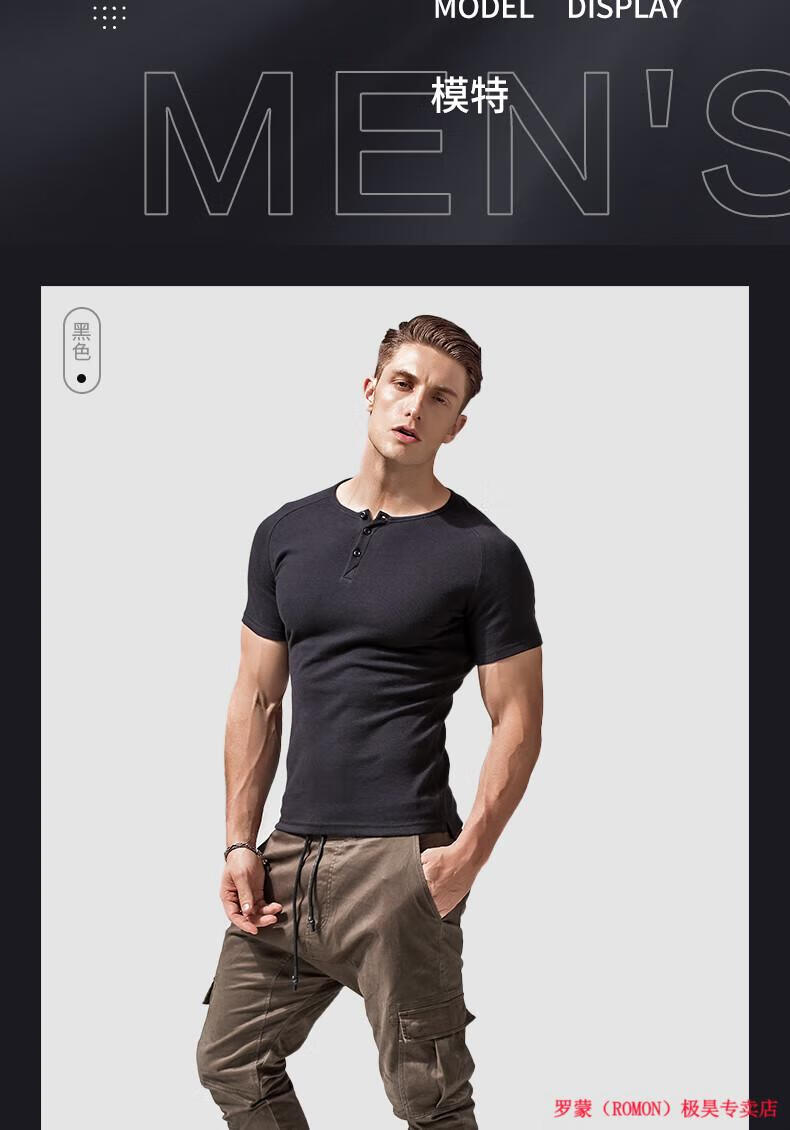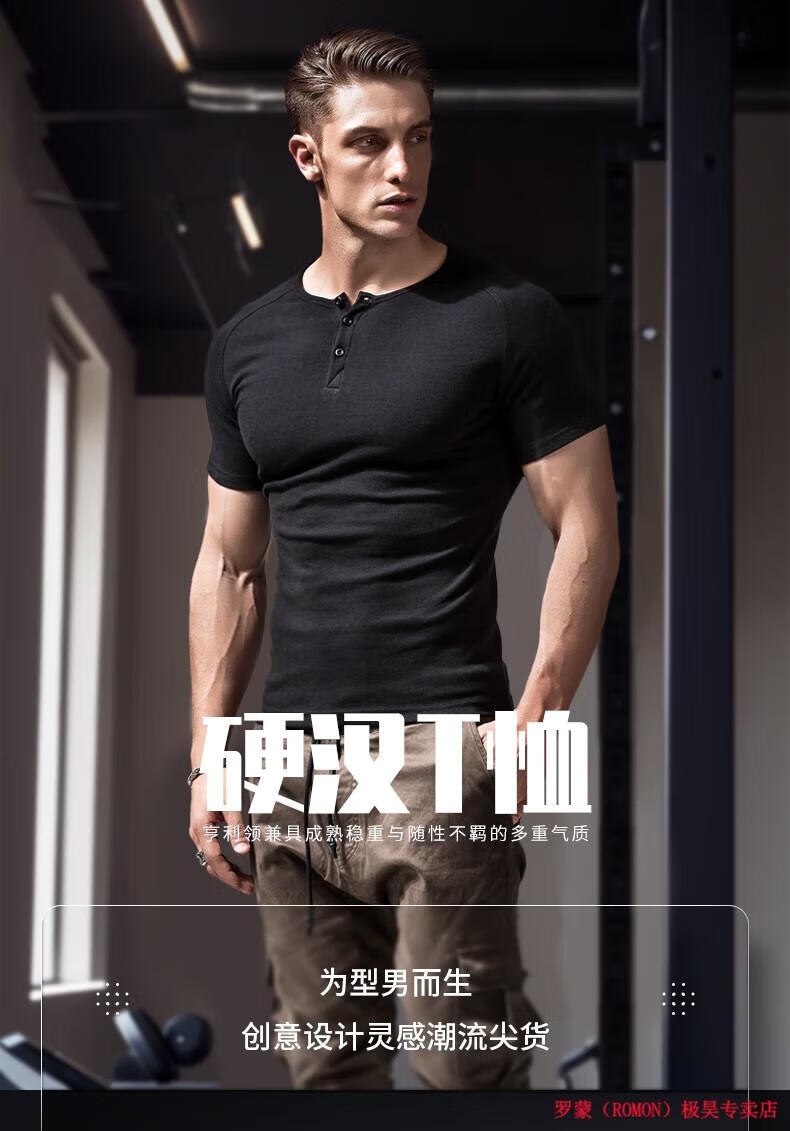 ROMON Henry shirt men's short-sleeved T-shirt Henry collar American retro heavyweight cotton tight slim short-sleeved bottoming shirt spring and autumn black (short-sleeved) T1781 M 90-Jin Jin equals 0.5 kg