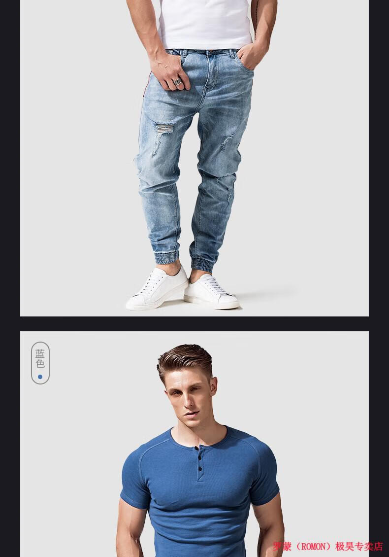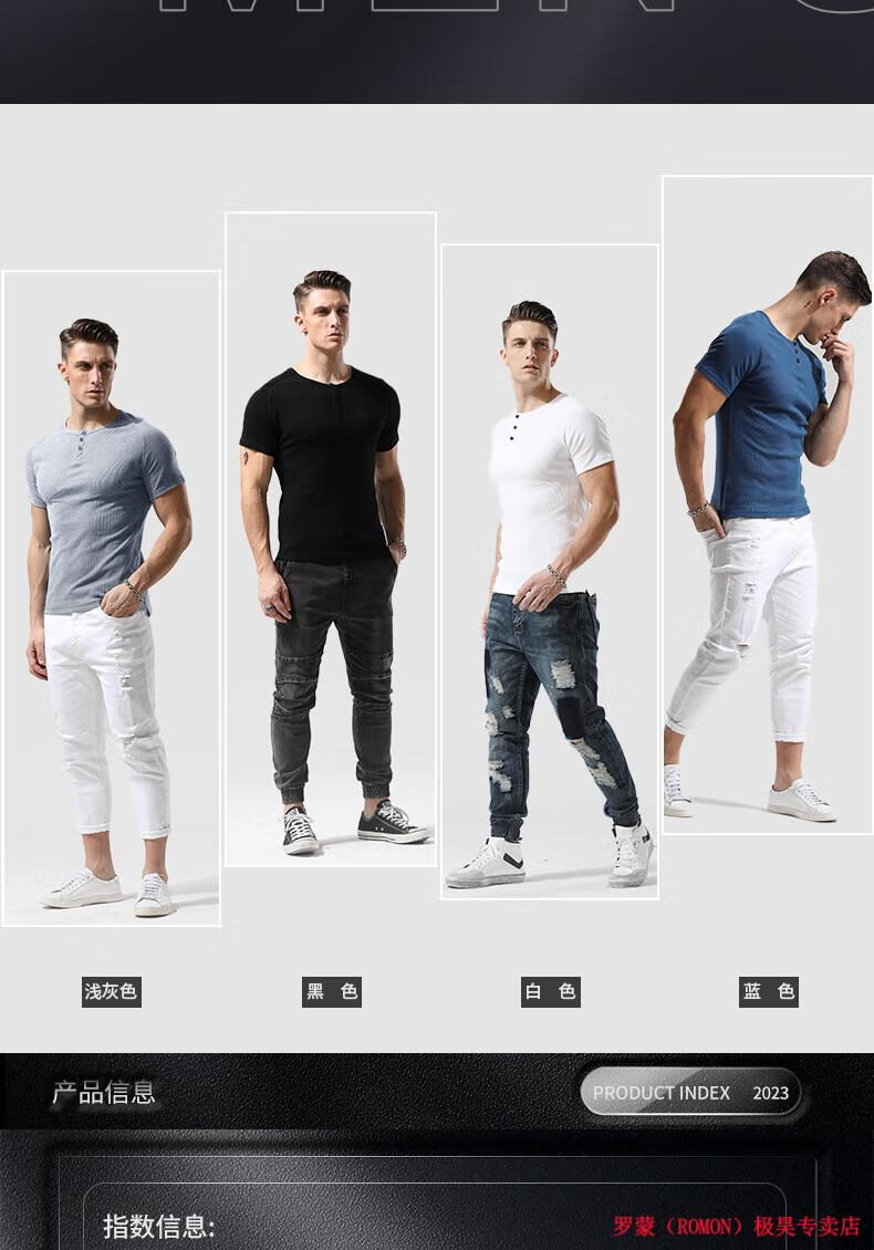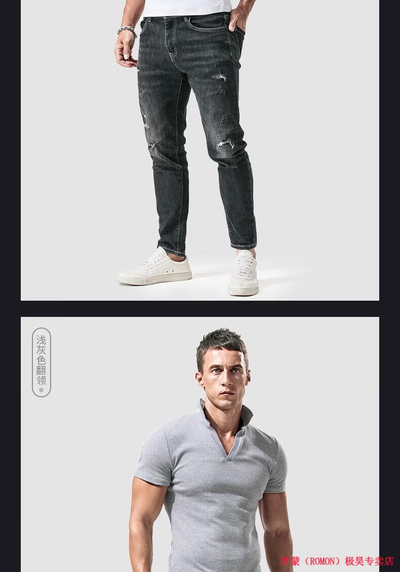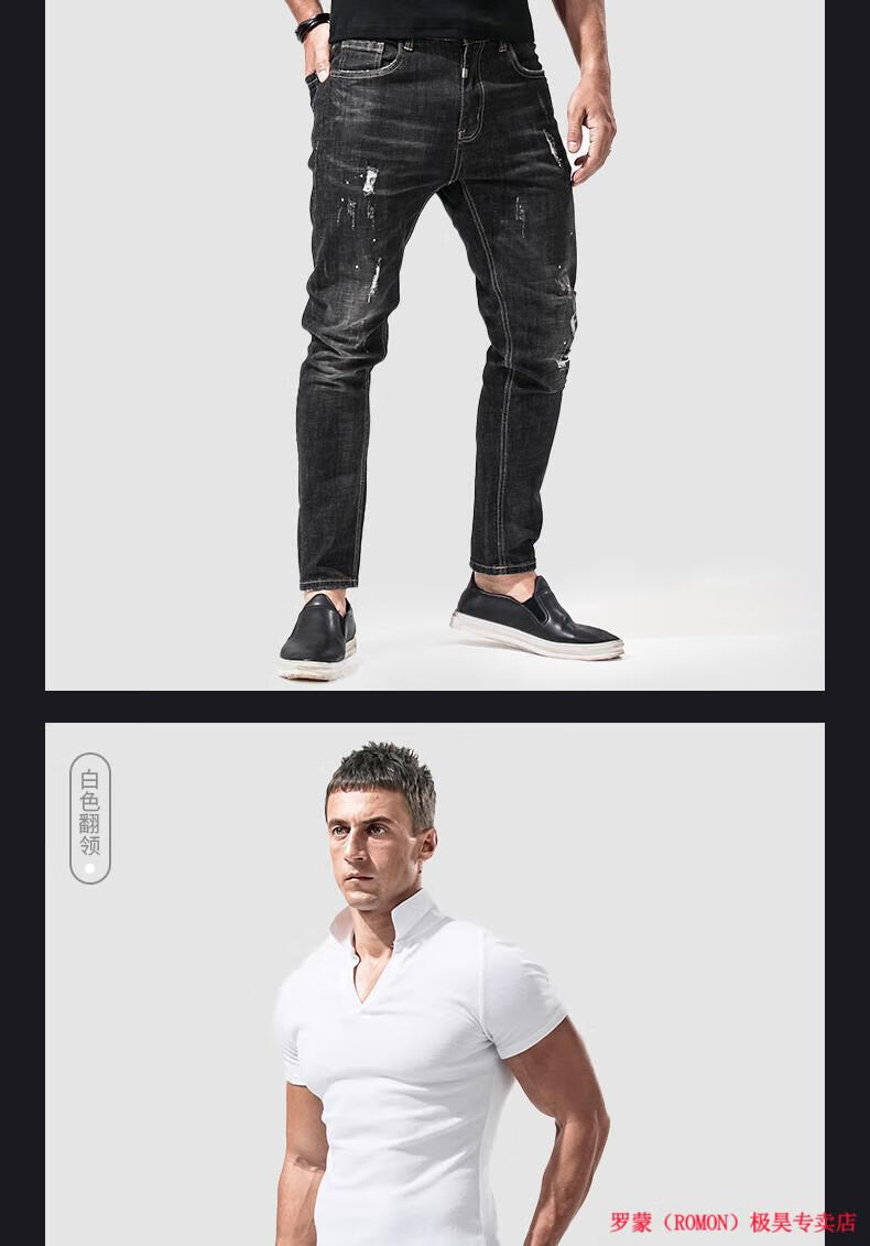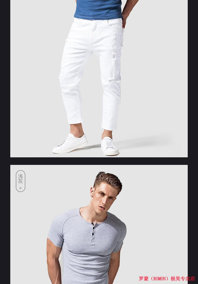 ROMON Henry shirt men's short-sleeved T-shirt Henry collar American retro heavyweight cotton tight slim short-sleeved bottoming shirt spring and autumn black (short-sleeved) T1781 M 90-Jin Jin equals 0.5 kg