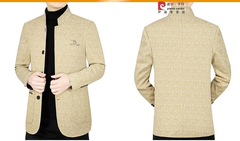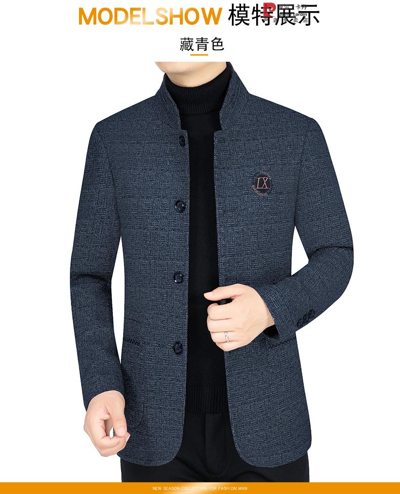 Pierre Cardin Woolen Coat Jacket Men's Middle-aged Spring and Autumn Loose Casual Stand-up Collar Woolen Dad Jacket Dark Blue 35723 XL 180 Suitable for 135--155Jin Jin is equal to 0.5 kg