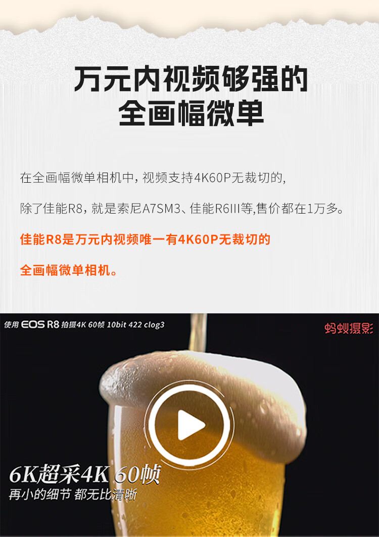 Canon r8 mirrorless camera full frame national bank genuine eos r8 professional mirrorless single camera portrait scenery sports animal travel 4k video vlog live broadcast R8 set + RF50F1.8 small portrait spittoon package five capture card + battery + tripod + HD cable + 1V1 debugging