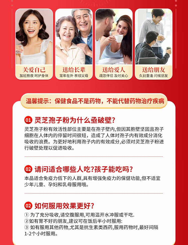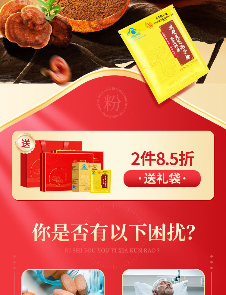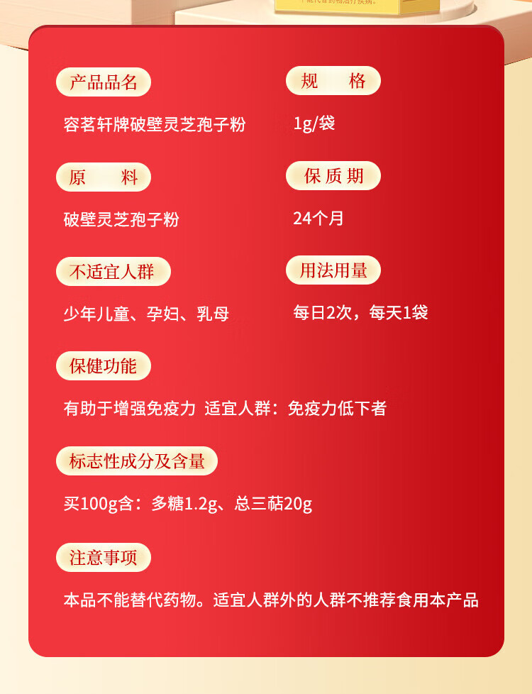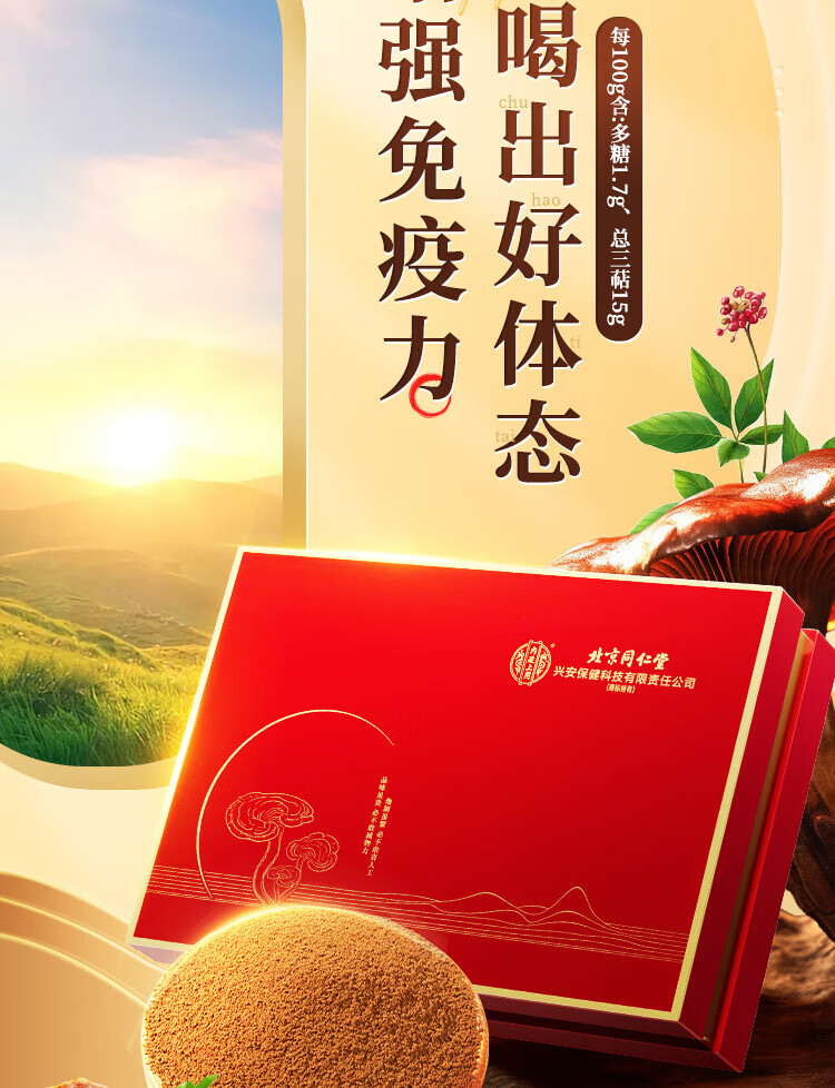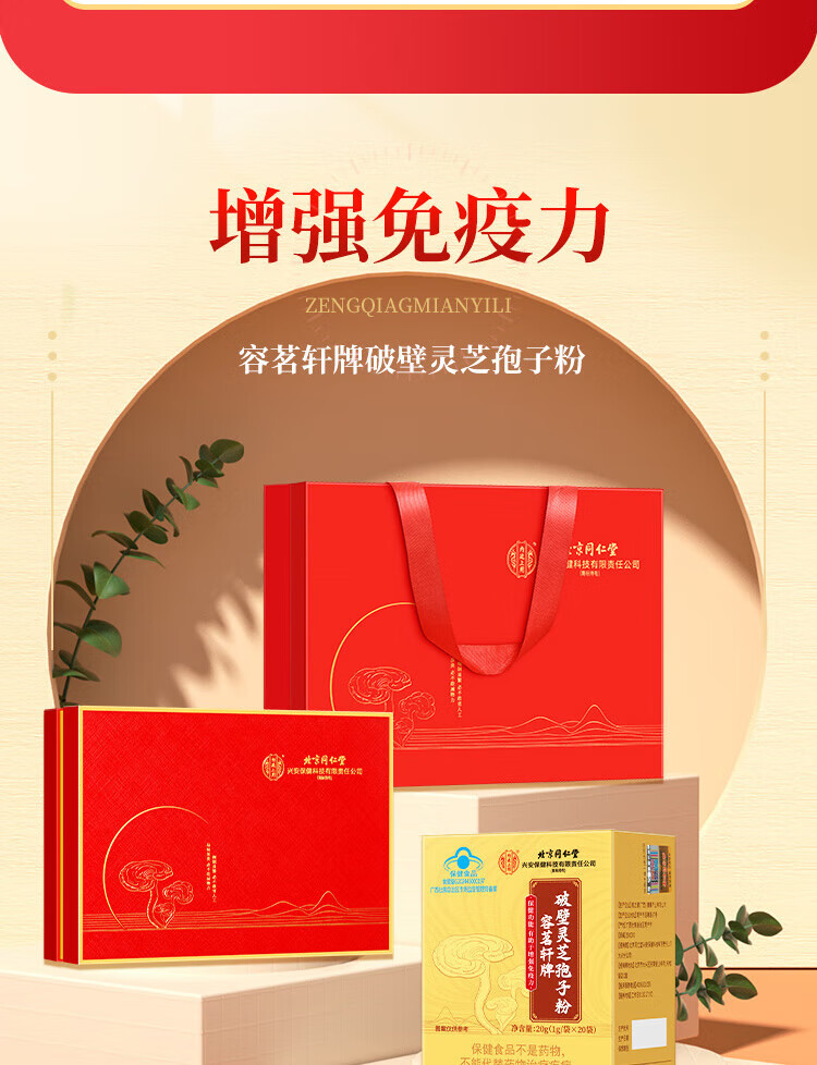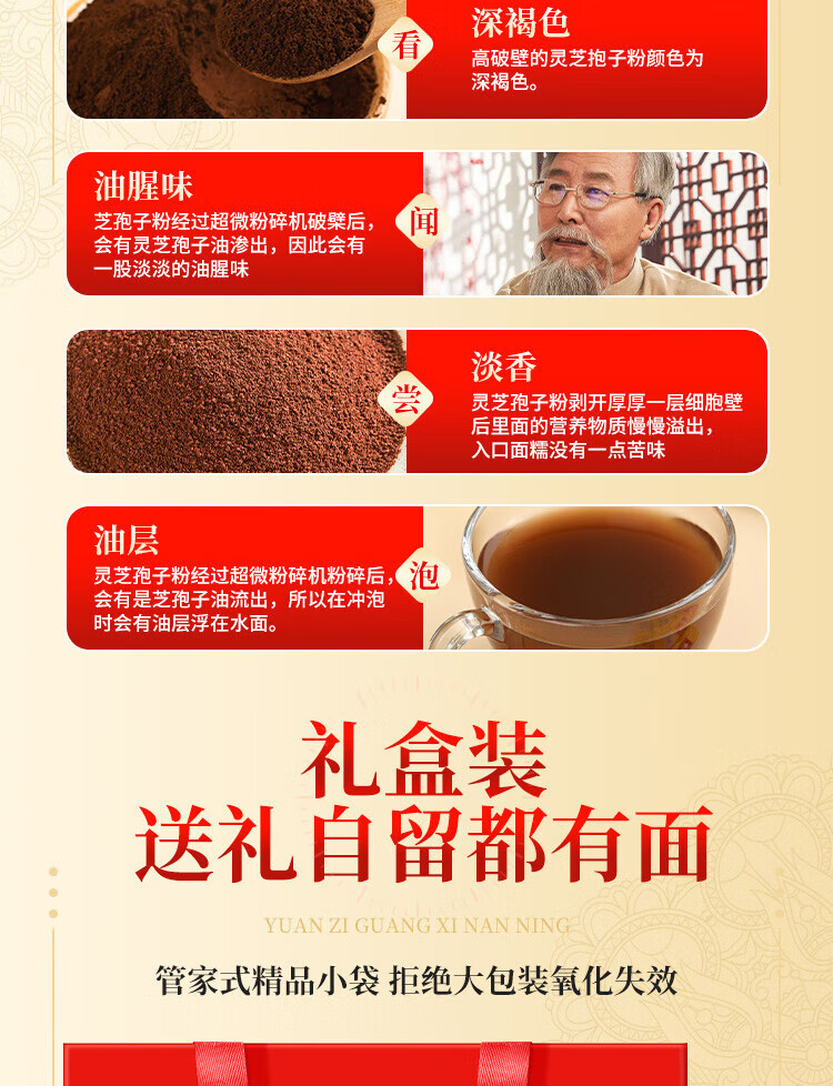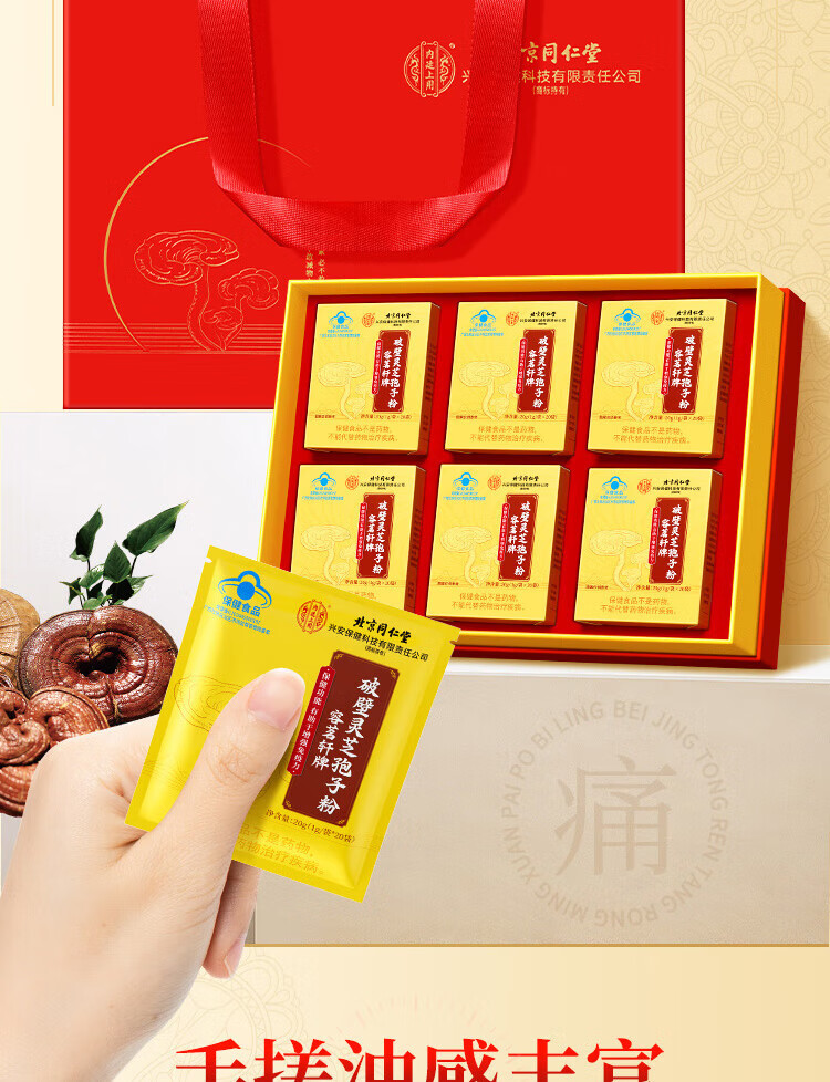 Tongrentang Beijing Tongrentang Broken Ganoderma Spore Powder Enhances Immunity and Sends New Year Gifts to Elders New Year Gift Box 120g Popular Recommendation Spore Powder 40g (40 Bags)