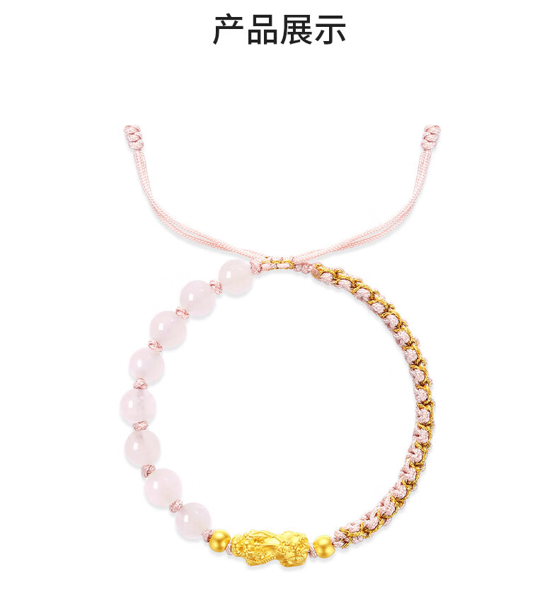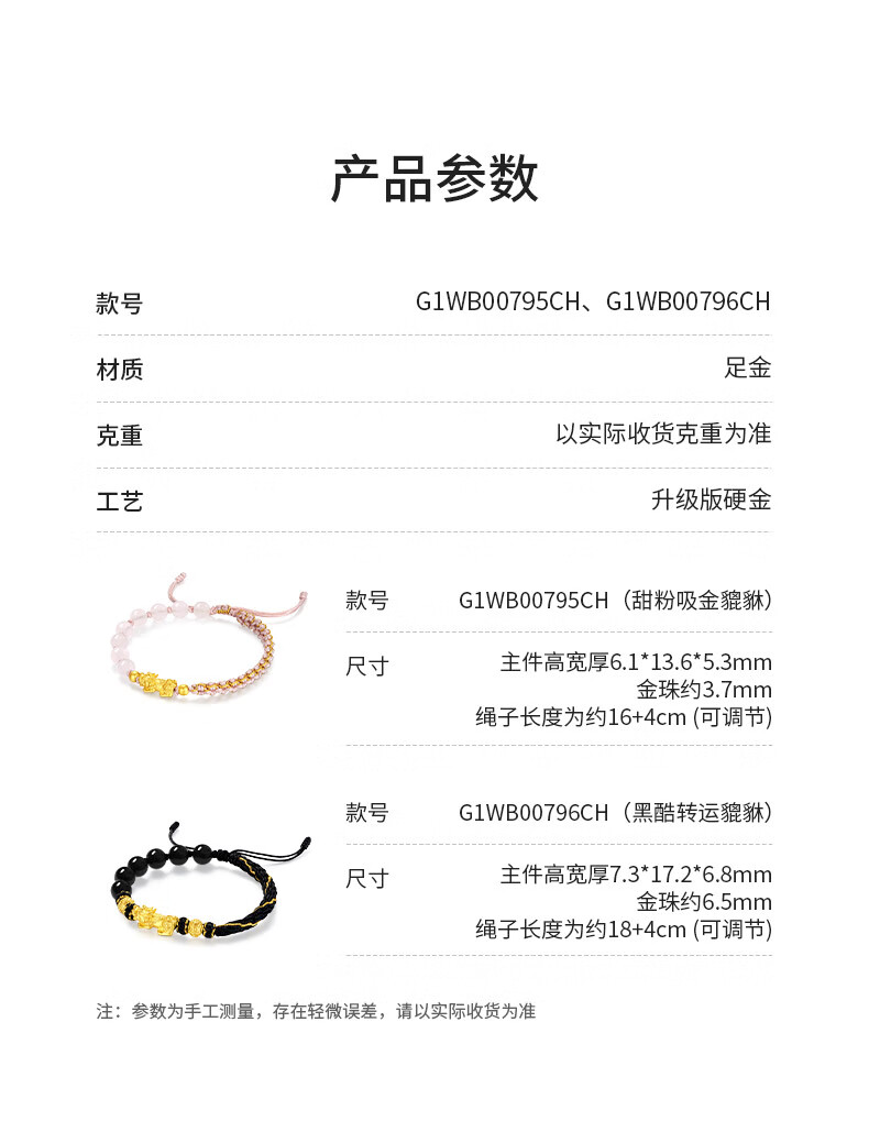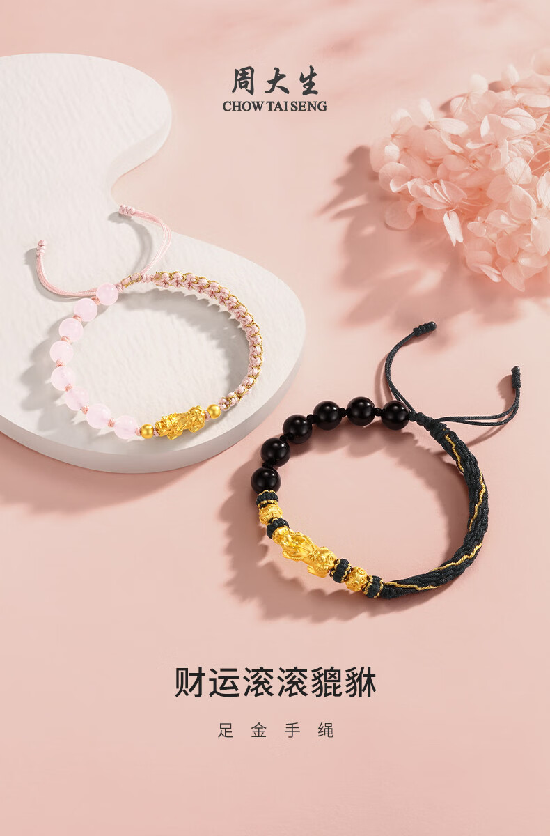 Chow Tai Sang Gold Pixiu Bracelet Pure Gold Hard Gold Wealth Gold Bead Couple Bracelet Birthday Gift for Girlfriend Gold Black Cool Transfer Pixiu Bracelet Men's -0.90g