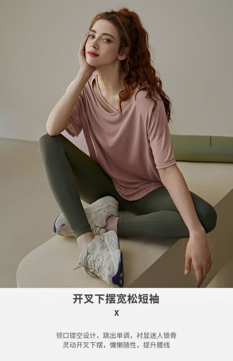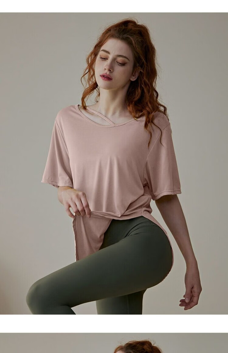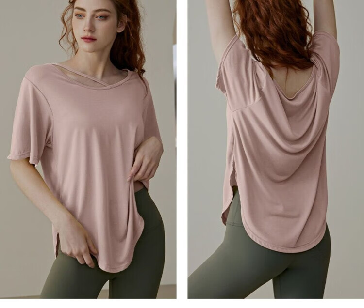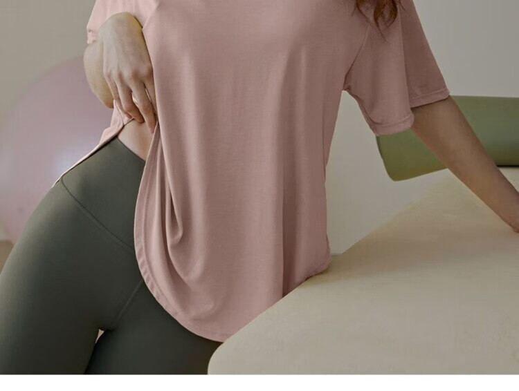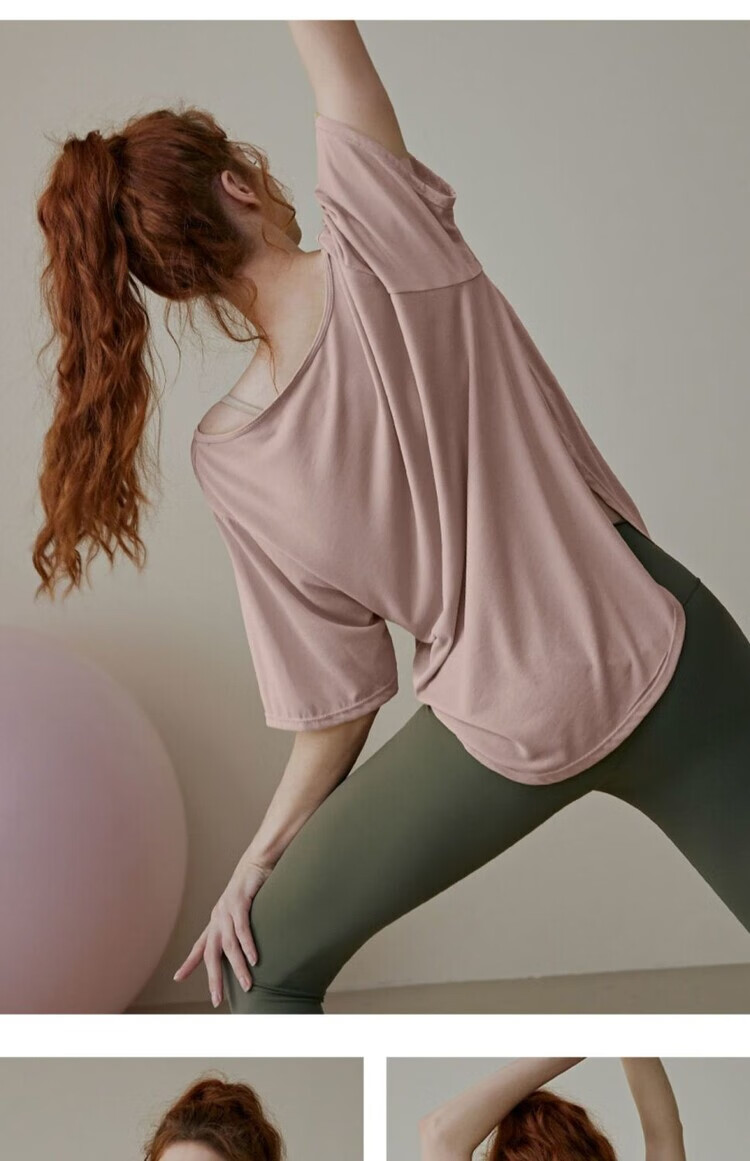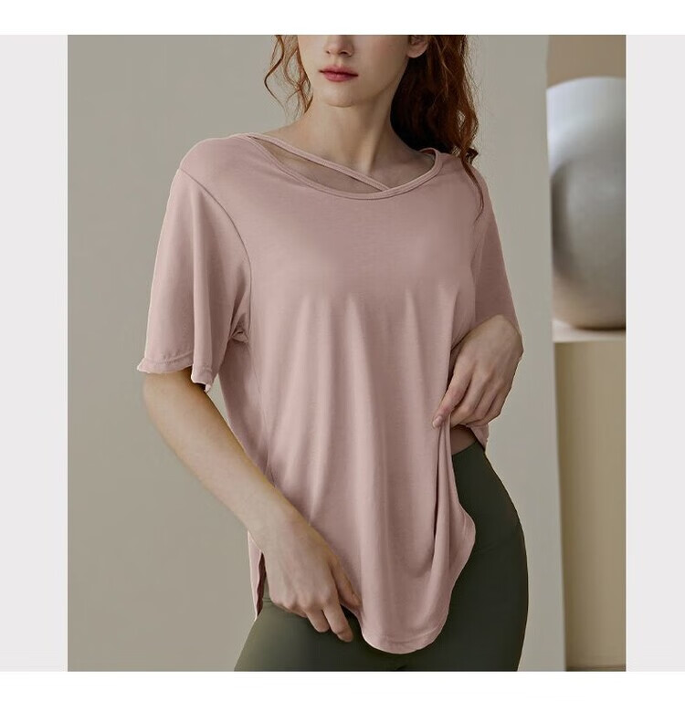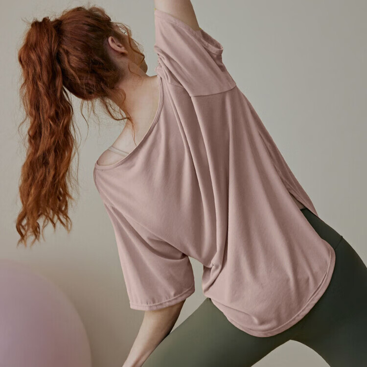 Shantou Lincun Pilates training clothes, large size quick-drying nude yoga clothes, breathable casual large size tops for fat girls, loose sports running, lotus root pink 8001/ L recommended 140-160 Jin Jin equals 0.5 kg