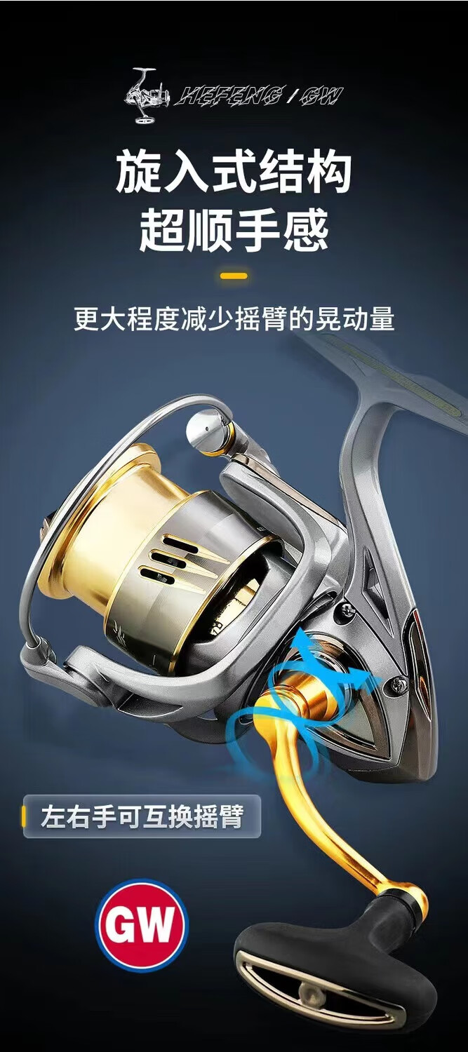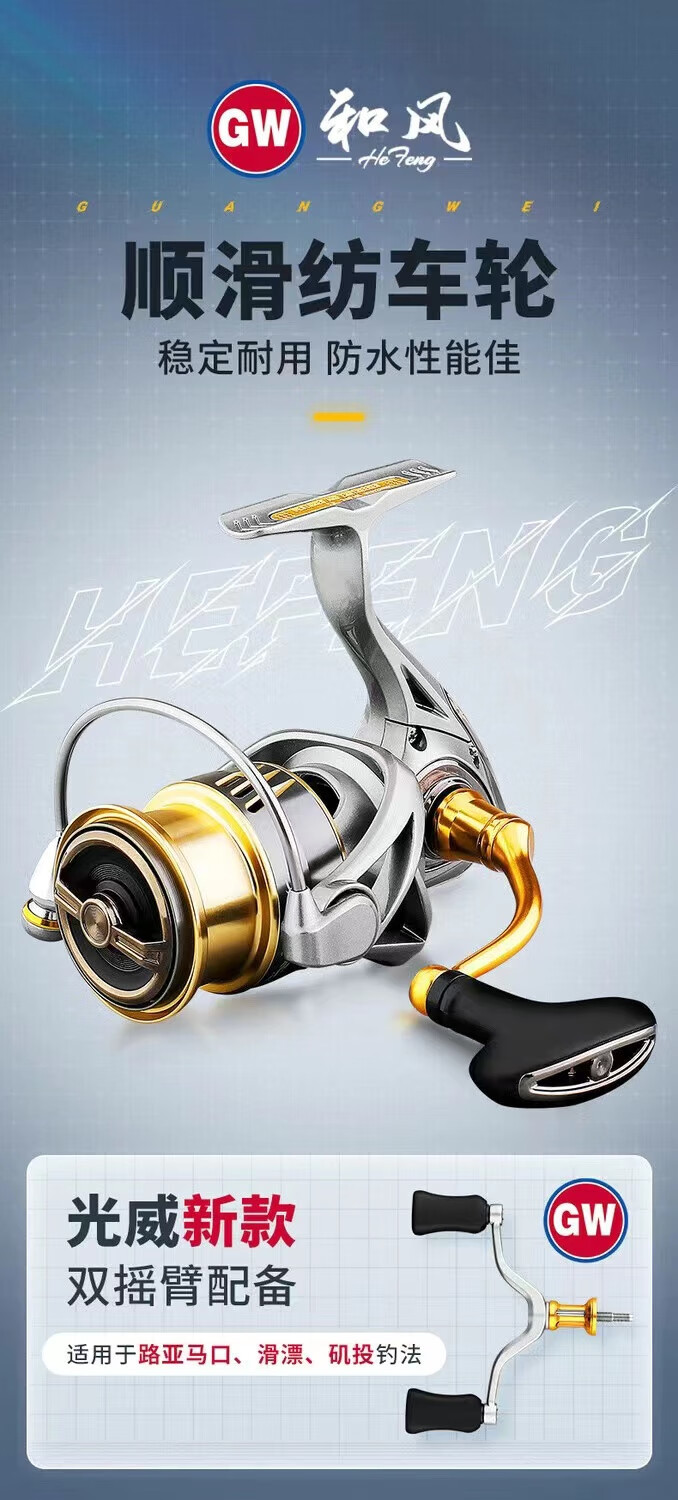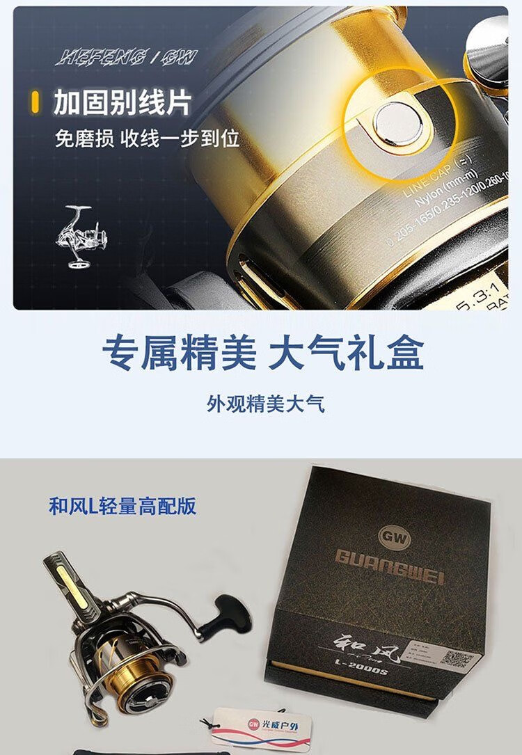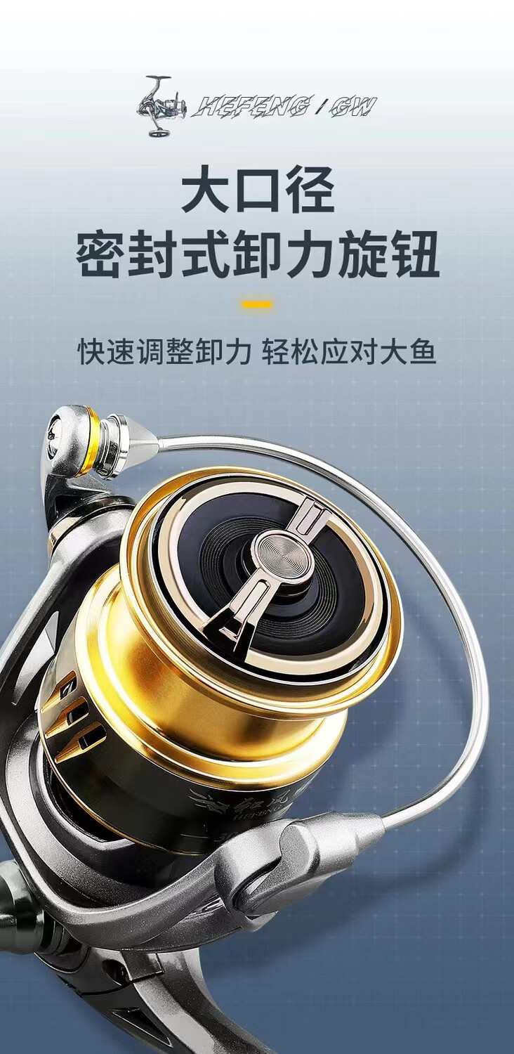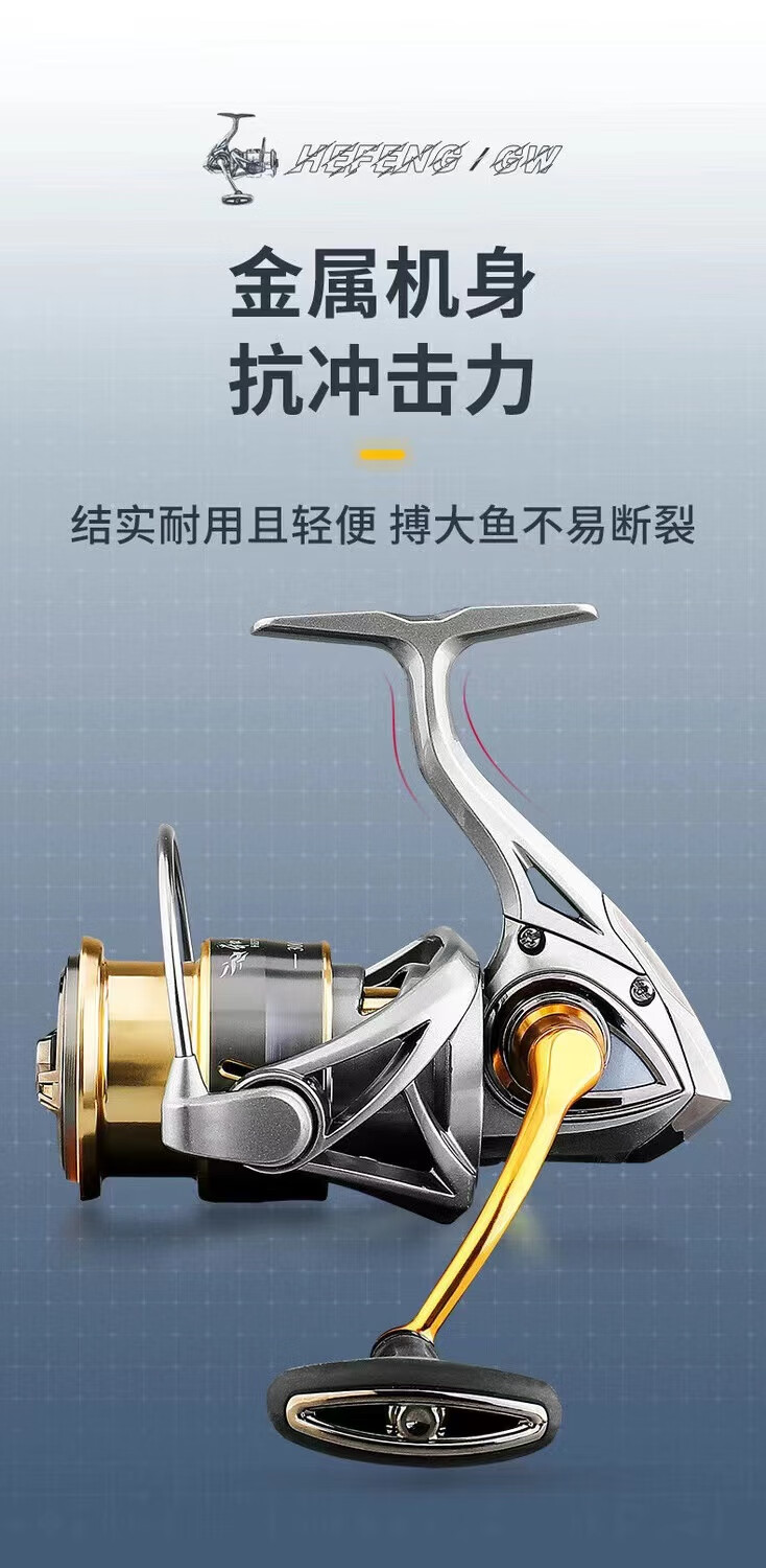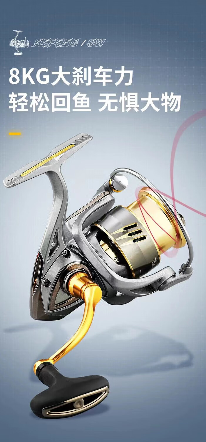 Guangwei Hefeng spinning wheel sea pole Luyaji fishing long-range all-metal inclined mouth shallow line cup anti-seawater fish wheel sea fishing wheel shallow line cup 2000 S version