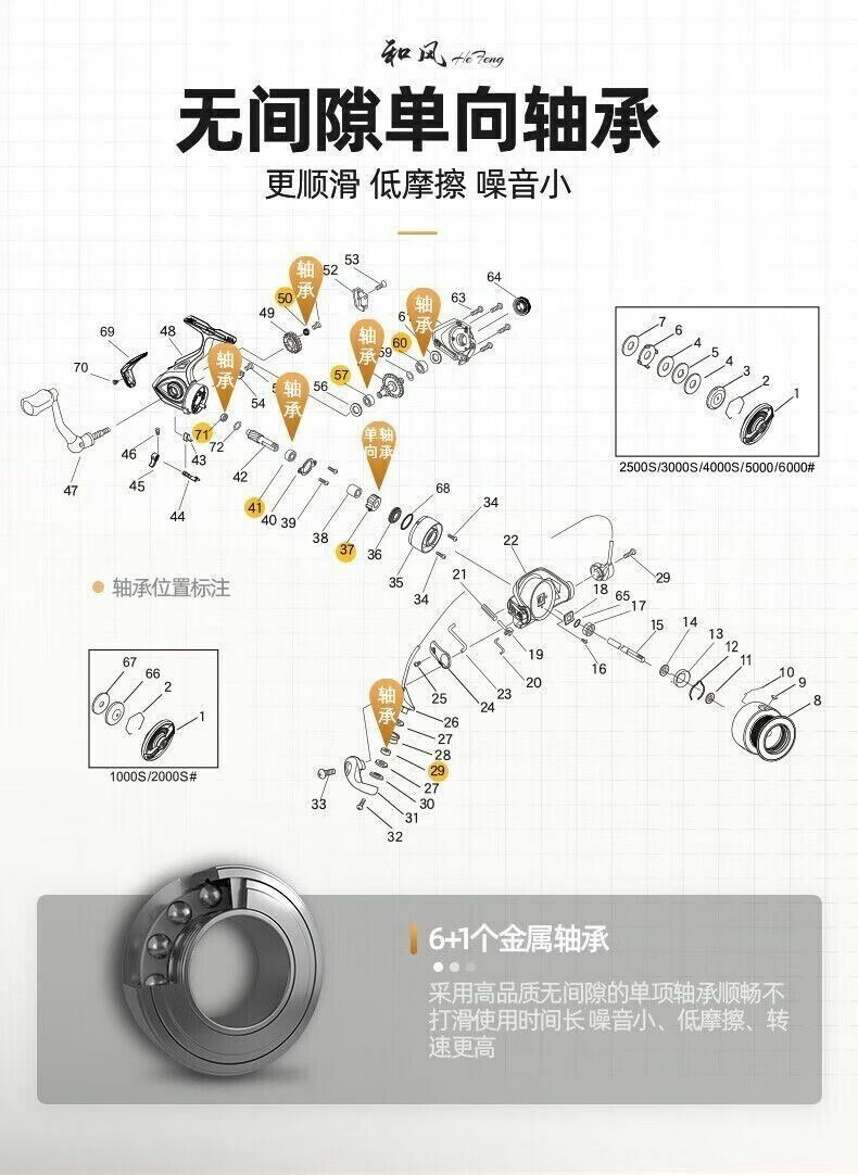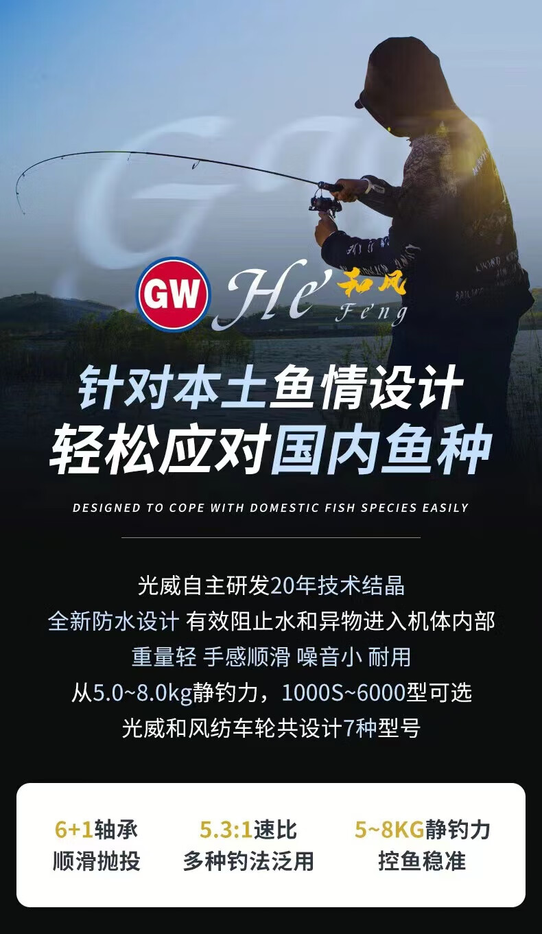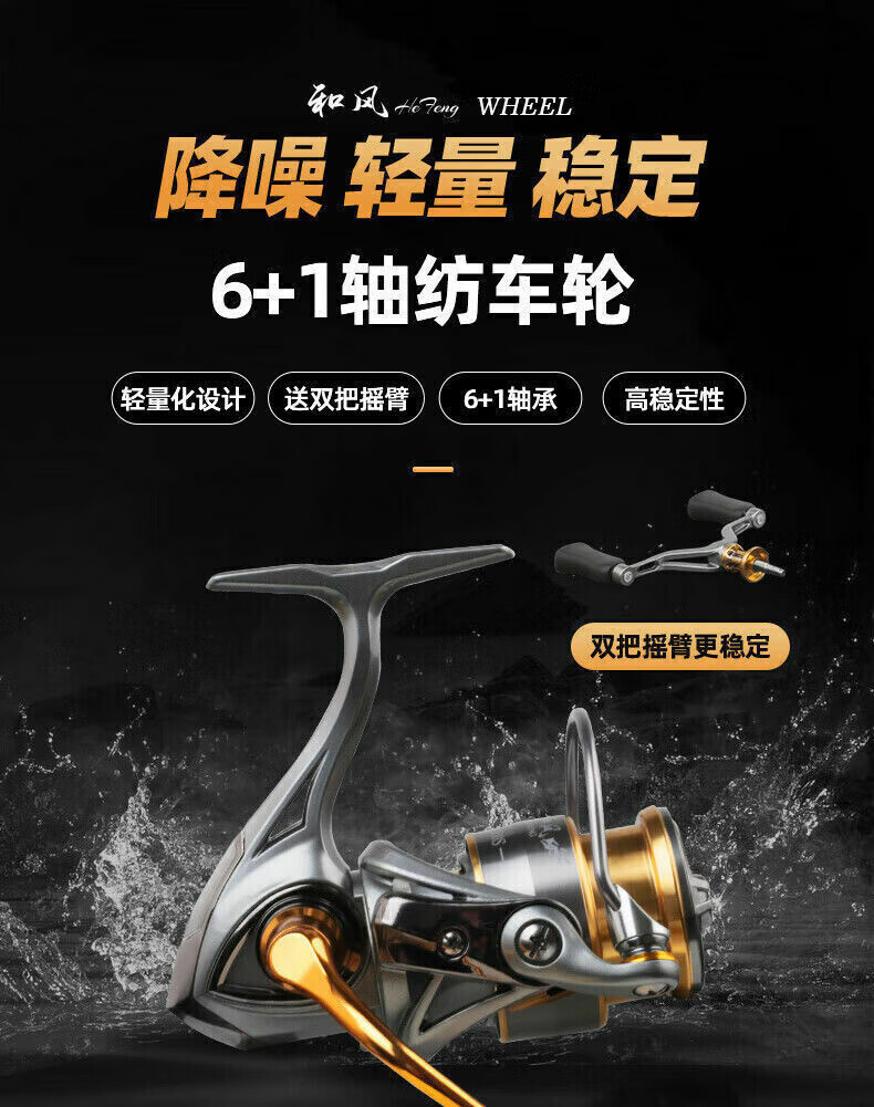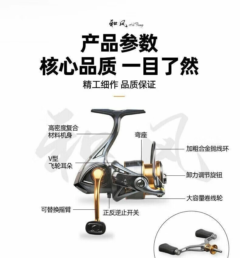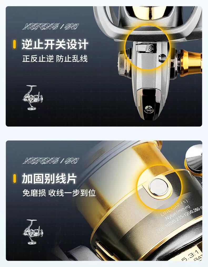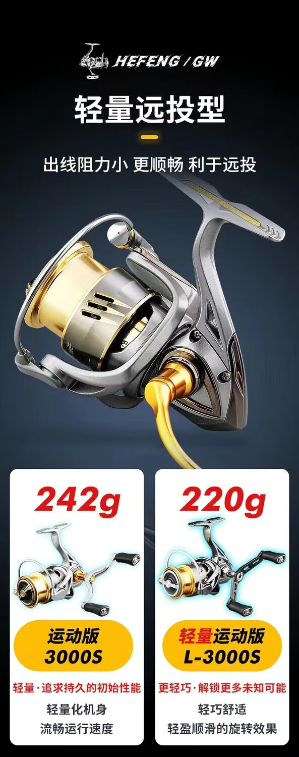 Guangwei Hefeng spinning wheel sea pole Luyaji fishing long-range all-metal inclined mouth shallow line cup anti-seawater fish wheel sea fishing wheel shallow line cup 2000 S version