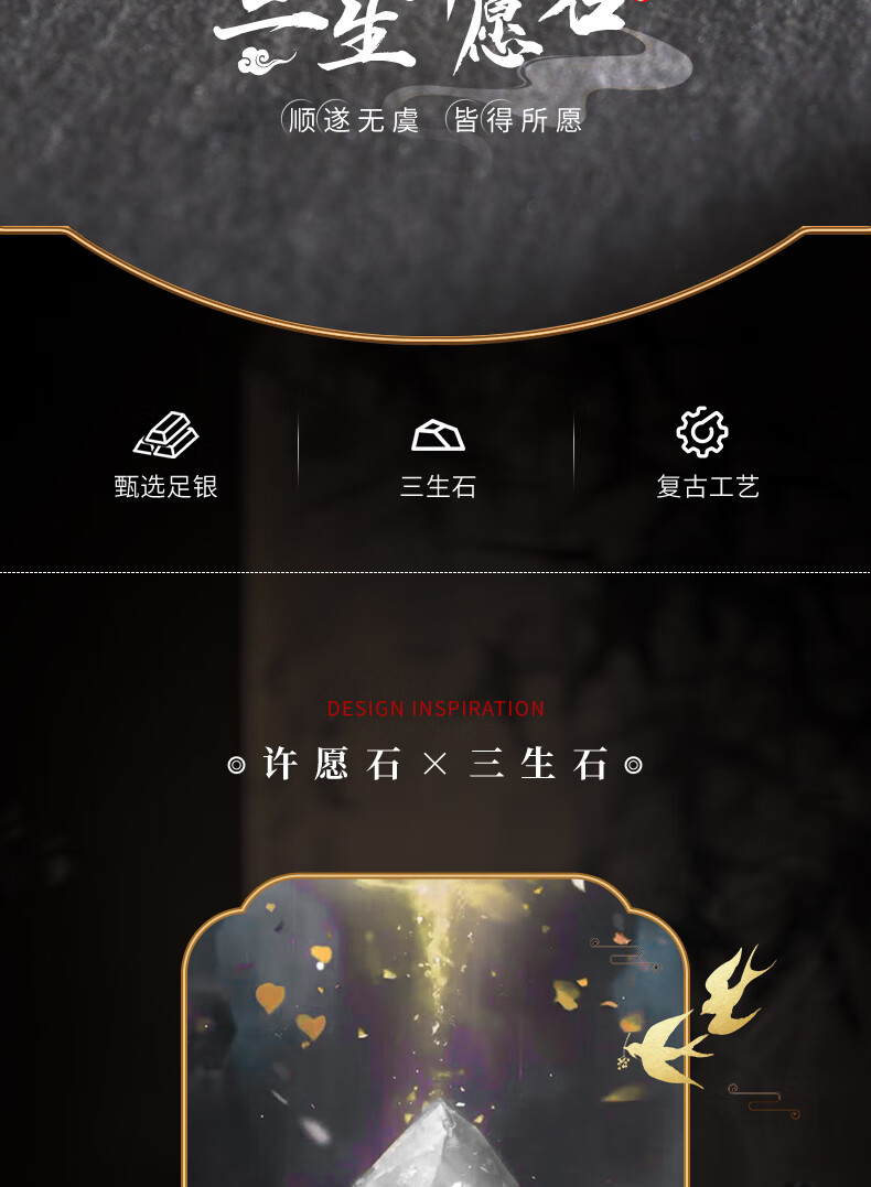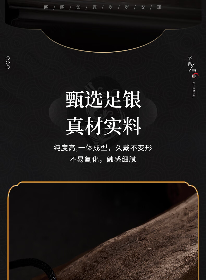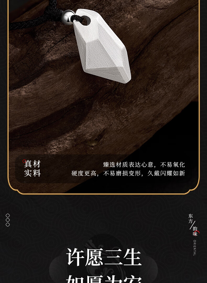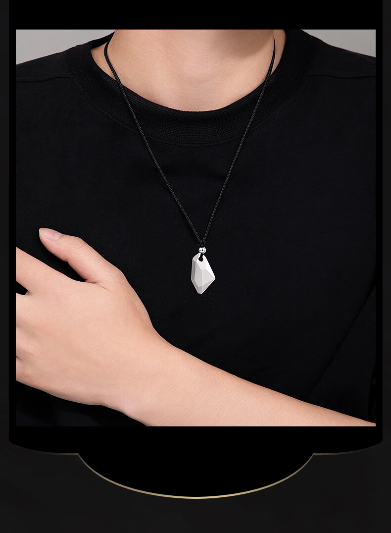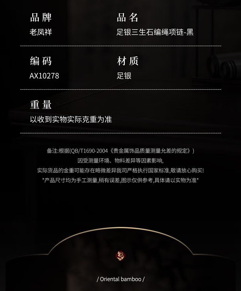 Lao Fengxiang Three Lives Stone Pure Silver Necklace Men's Wishing Stone Pendant Wedding Anniversary Birthday Gift for Boyfriend and Husband Pure Silver Three Lives Stone Braided Rope Necklace - Black