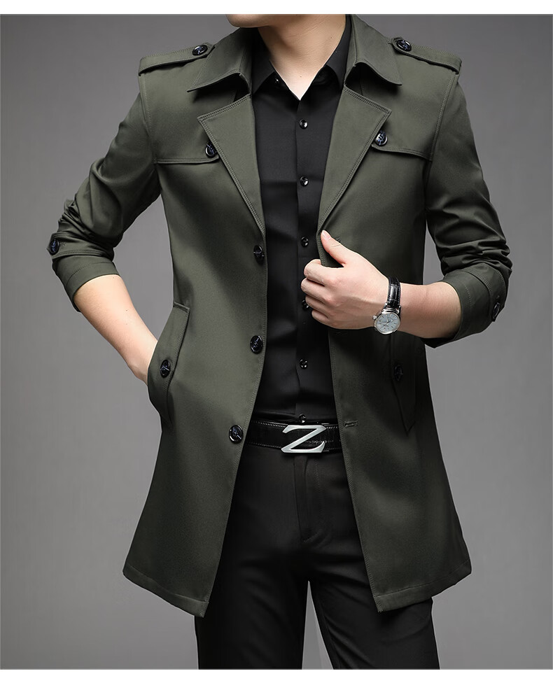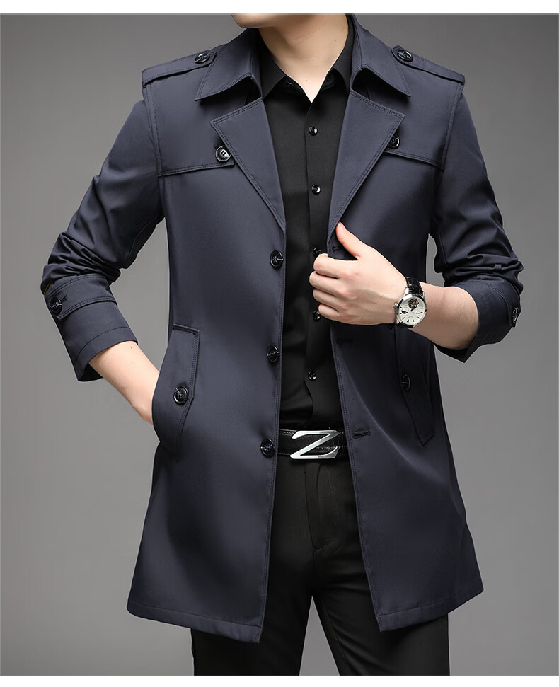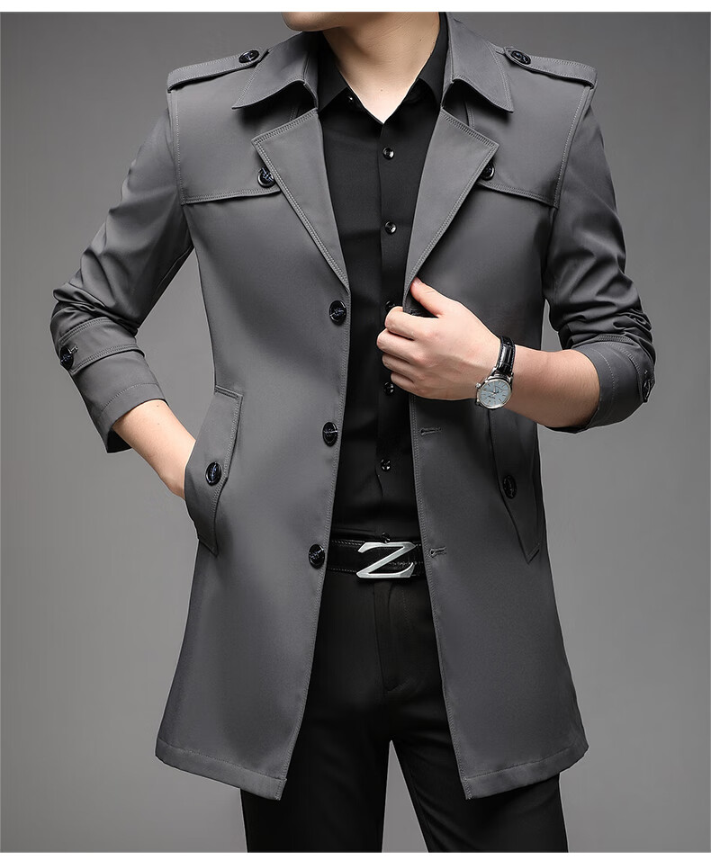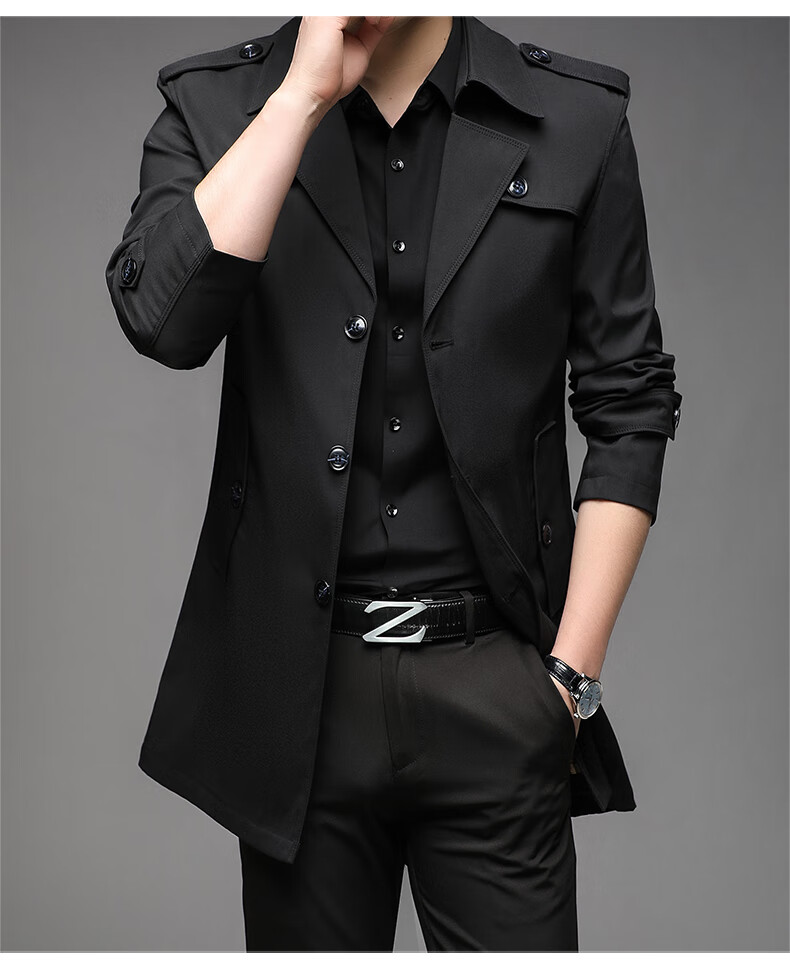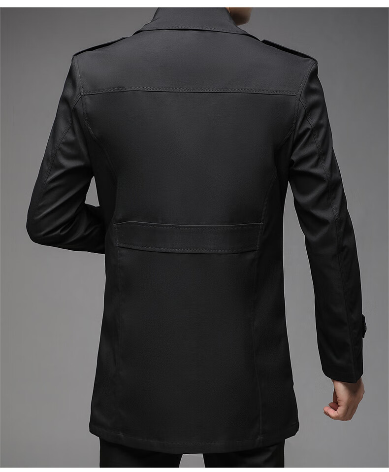 ROMON spring, autumn and winter men's windbreaker mid-length 2026 iron-free casual jacket solid color business men's jacket trendy top 808 black 2XL 180