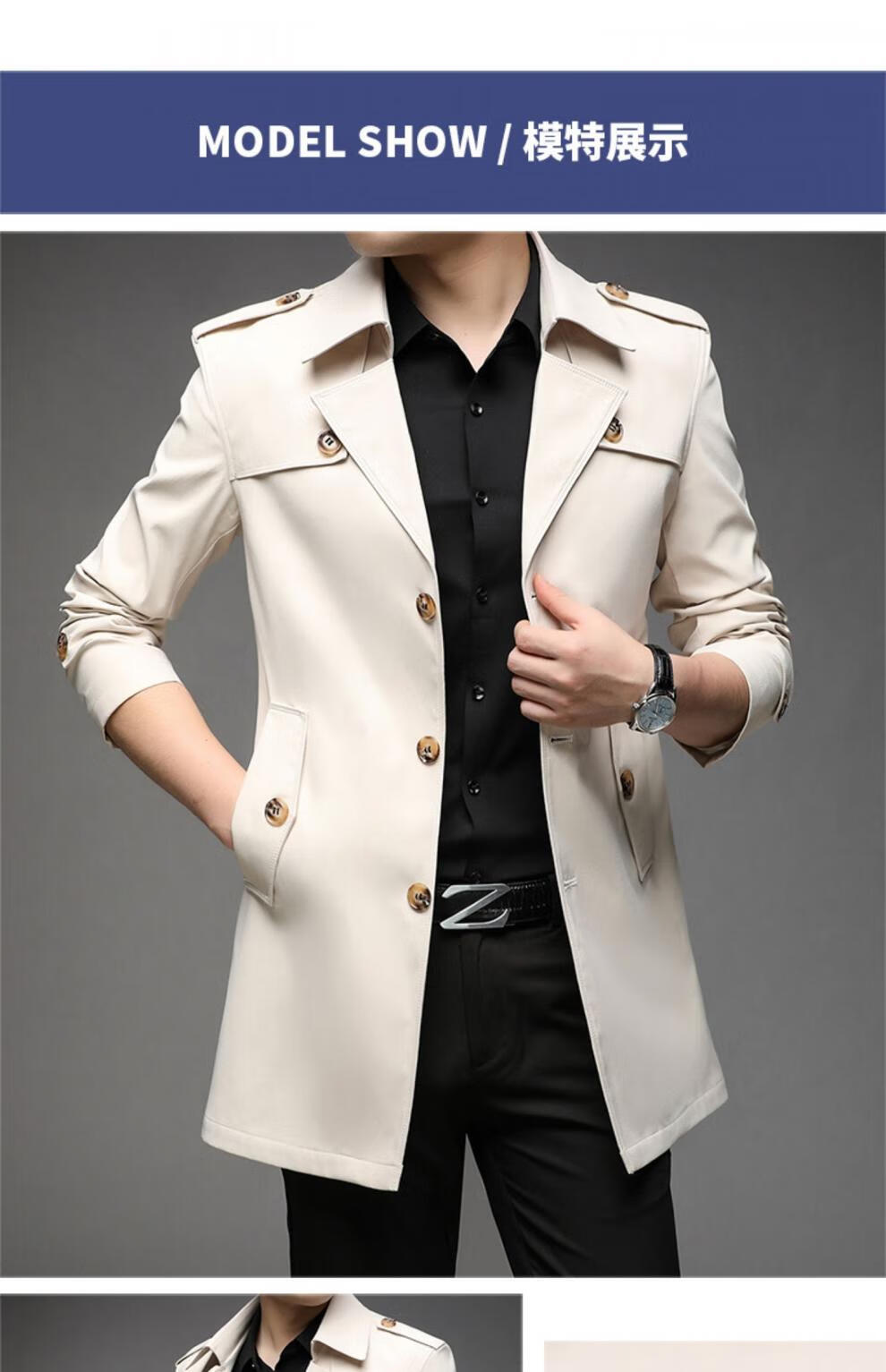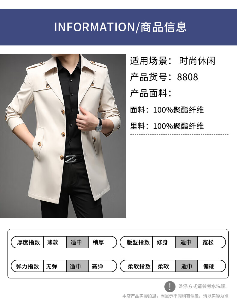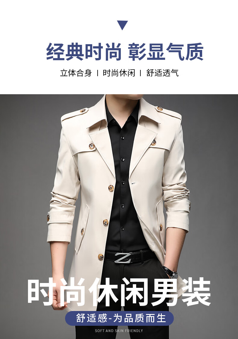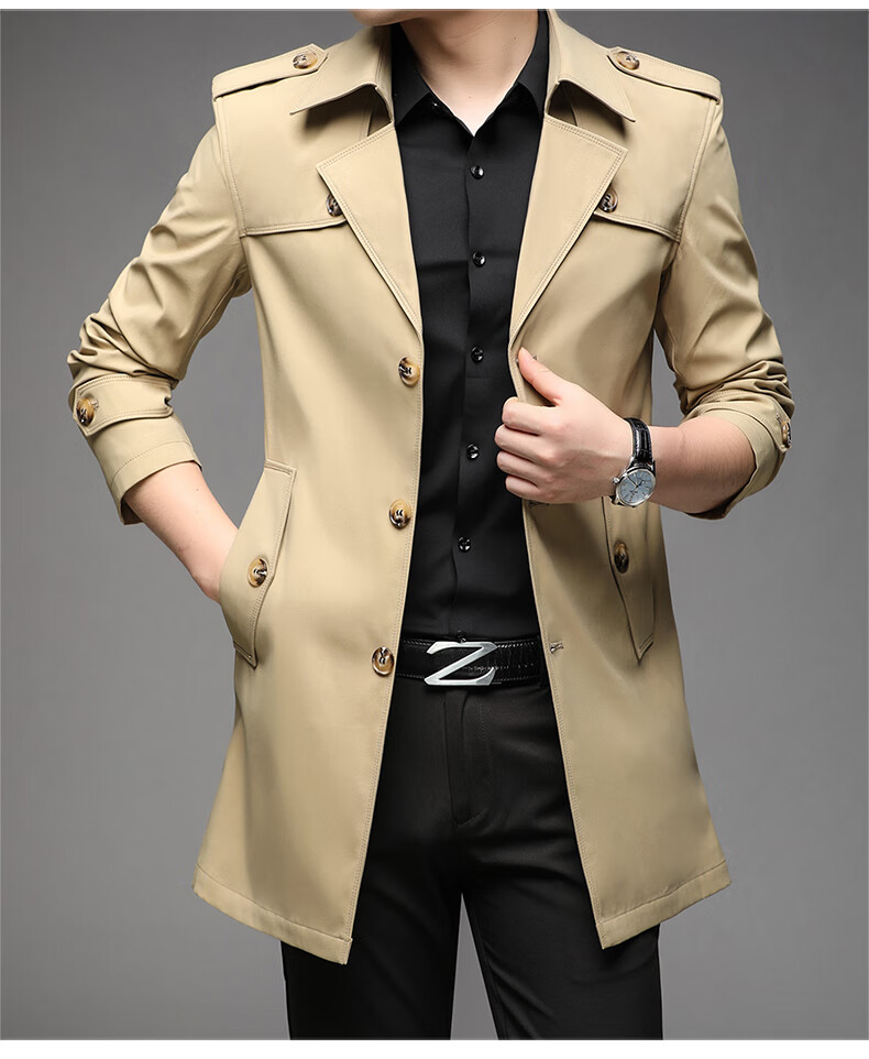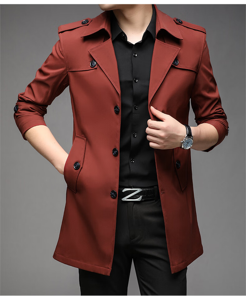 ROMON spring, autumn and winter men's windbreaker mid-length 2026 iron-free casual jacket solid color business men's jacket trendy top 808 black 2XL 180