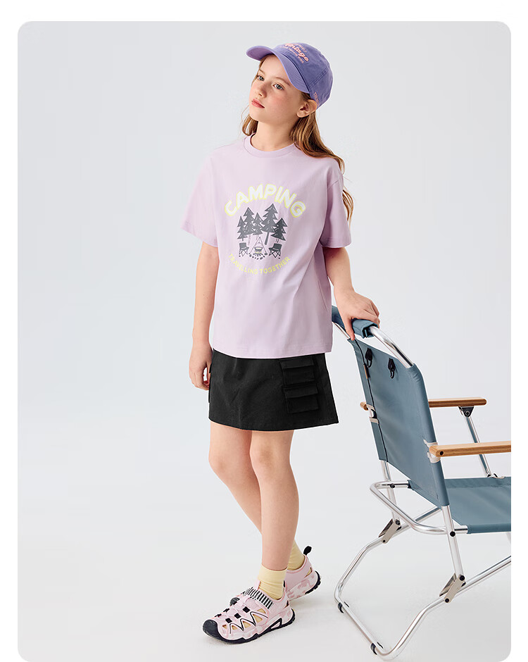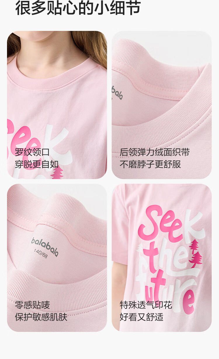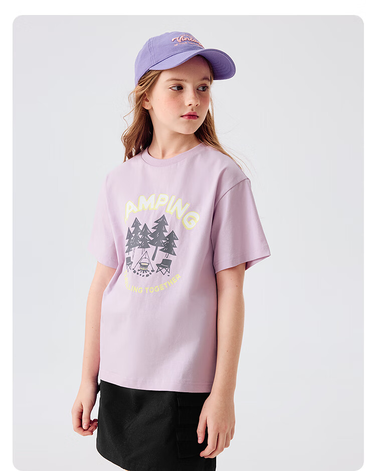 Balabala children's clothing children's short-sleeved T-shirt boys and girls summer moisture-absorbent quick-drying parent-child tops pink and purple 70005 110