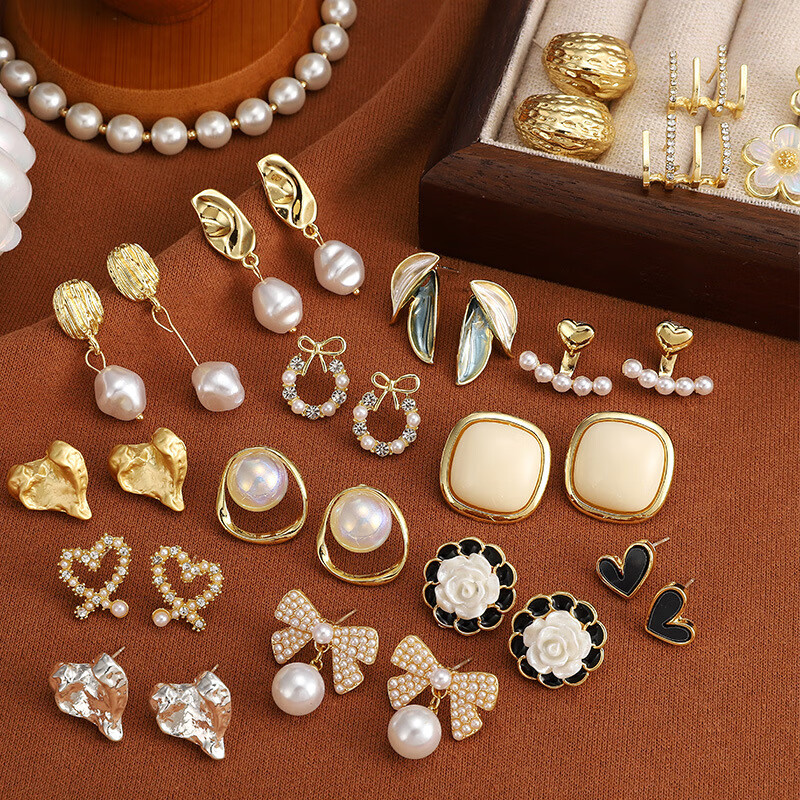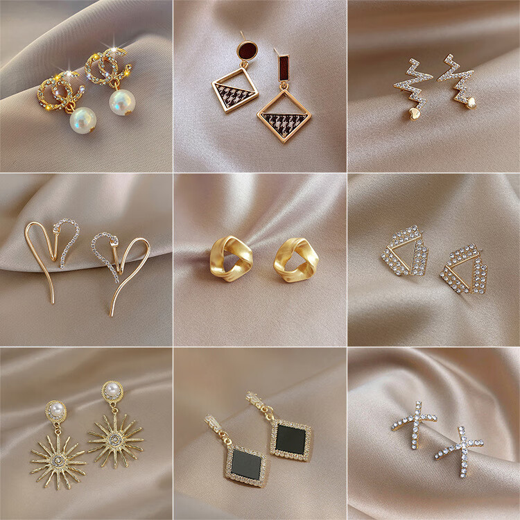 Collection of earrings, fashion hot style earrings, women's versatile earrings, high-end niche design earrings, temperament earrings, 3 pairs of earrings, random styles, no limit to picture style