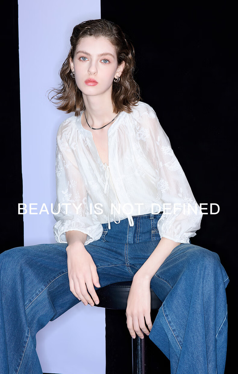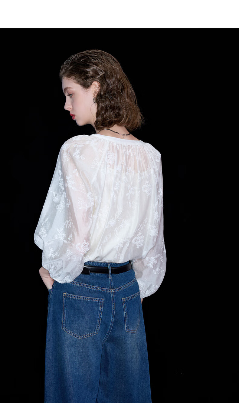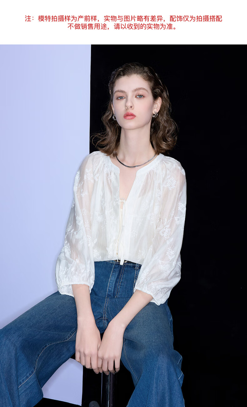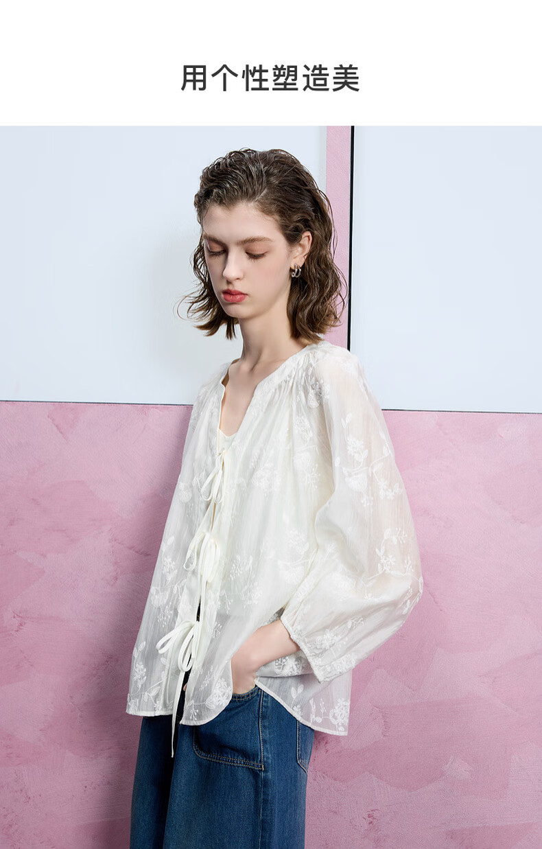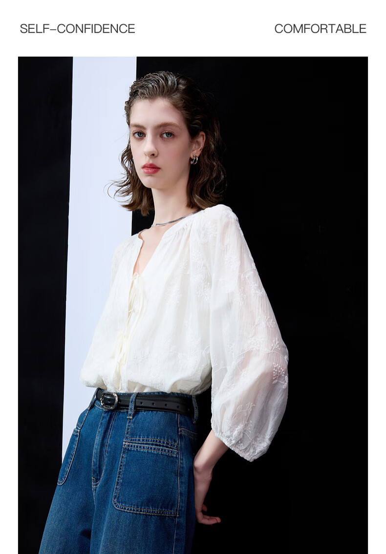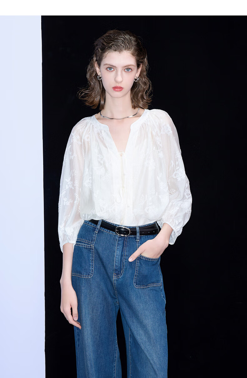 Tricolor 2025 Autumn Loose Two-piece Set Embroidered Lyocell Shirt Camisole Women's Off-White XL 170/92A