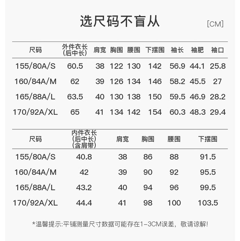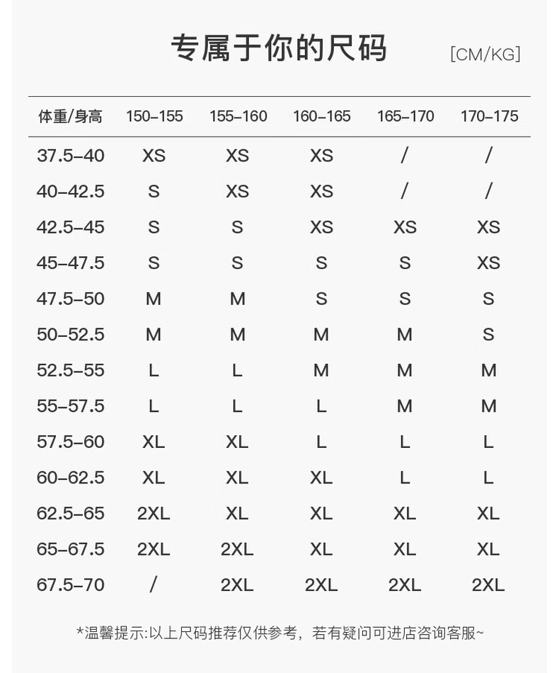 China (cm) 160-165/84-86 165-170 / 88-90 167-172 / 92-96 168-173 / 98-102 170-176 / 106-110