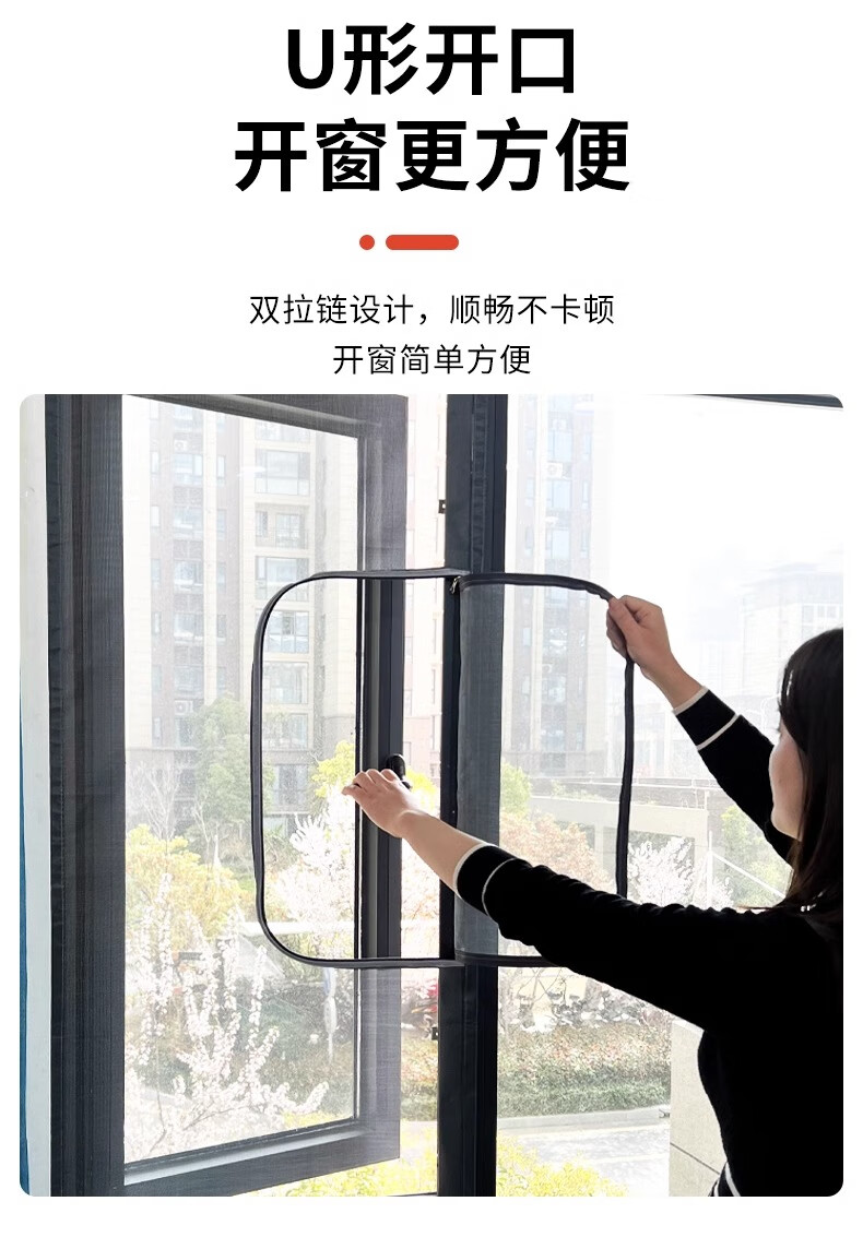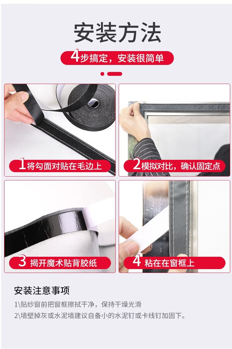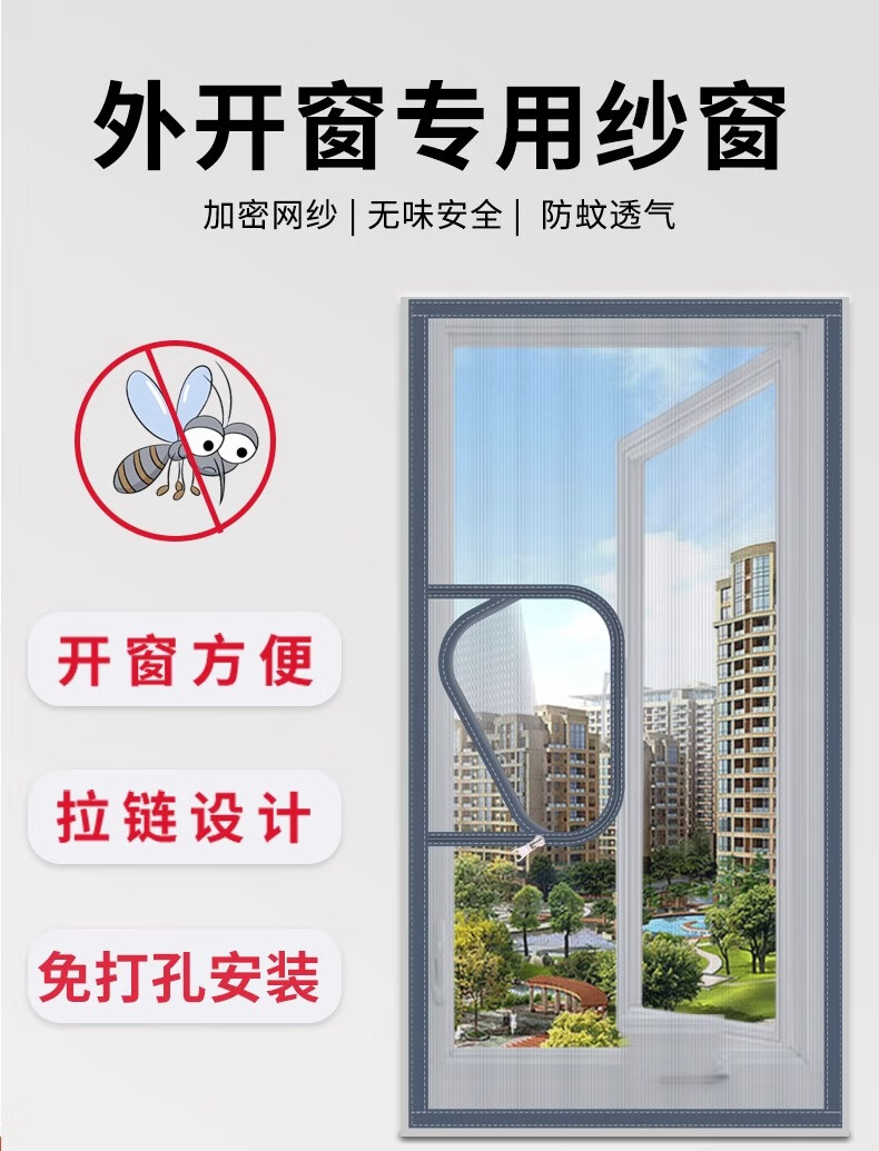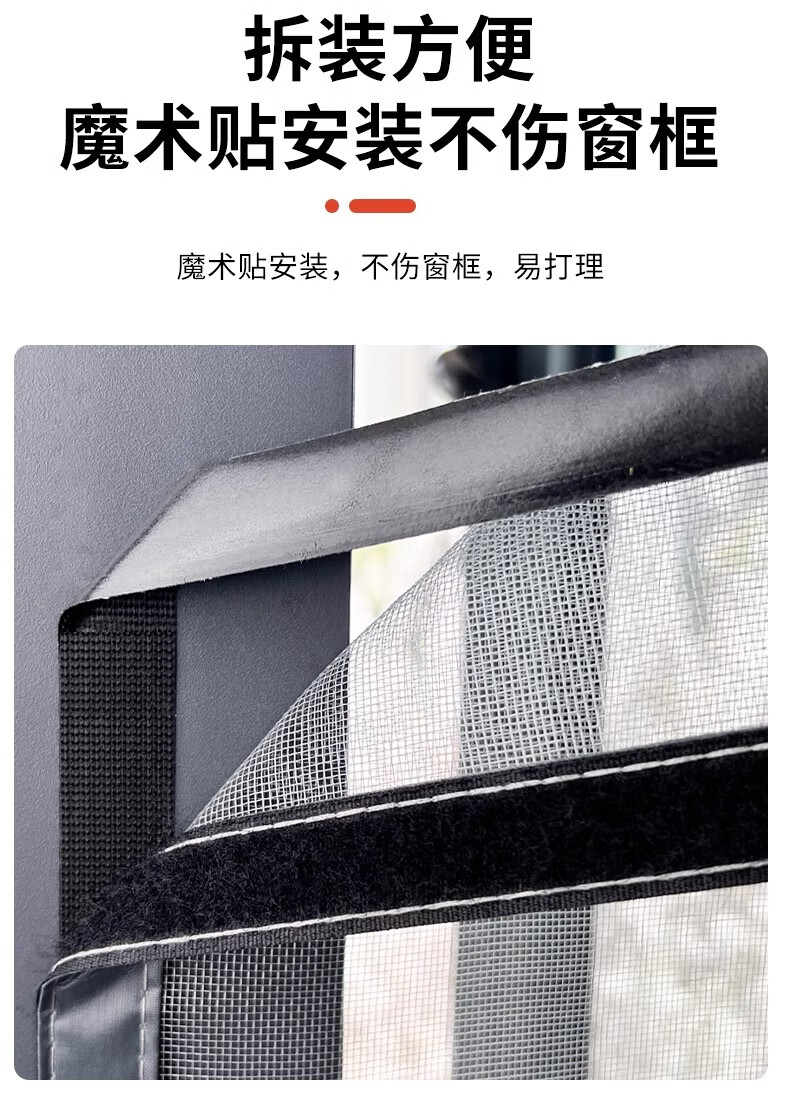 Nolantin side-opening screen window, special zipper Velcro for inner-opening window, self-adhesive anti-mosquito and sand curtain net for home use without punching and self-assembly, push-out window-side opening, gray gauze and black stickers, width 60x height 120cm