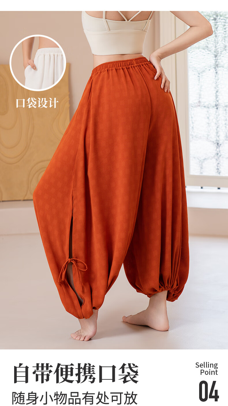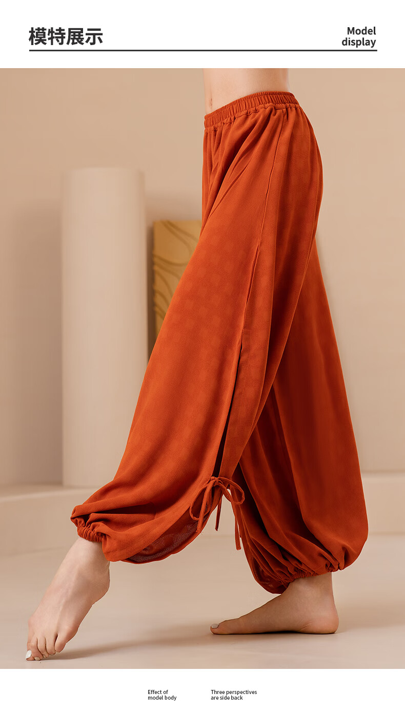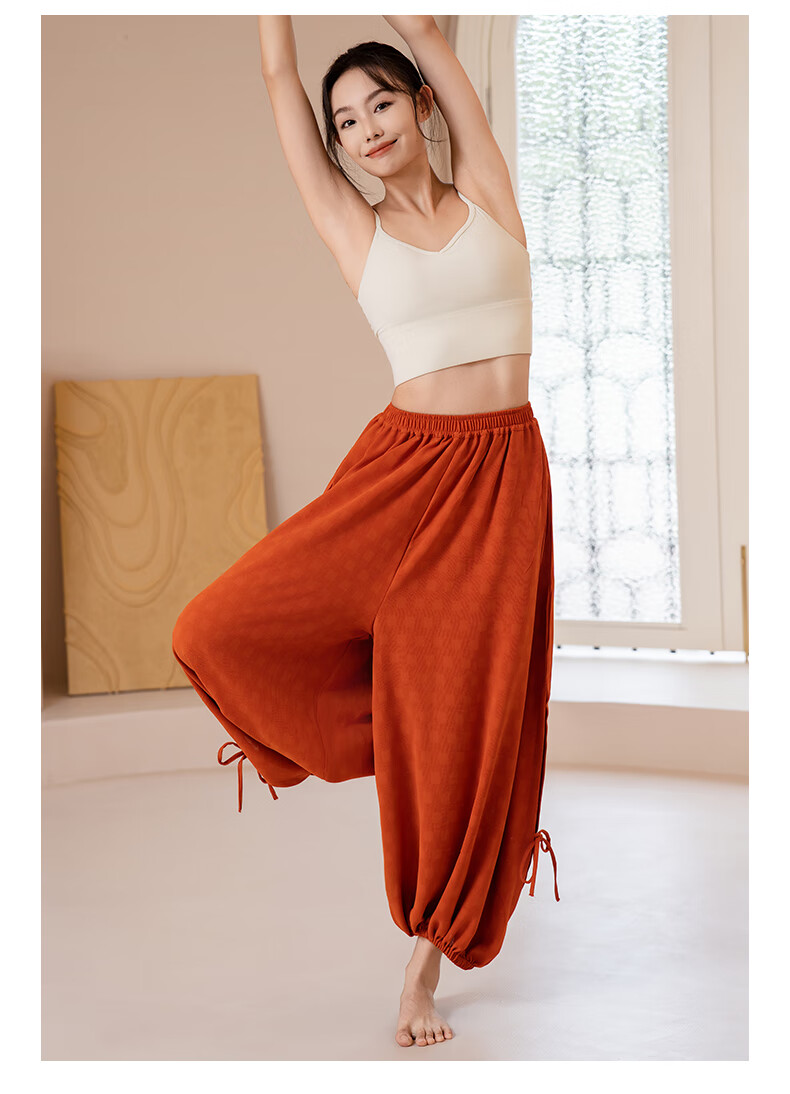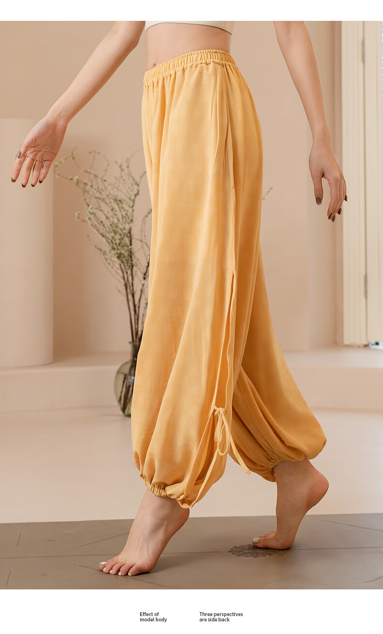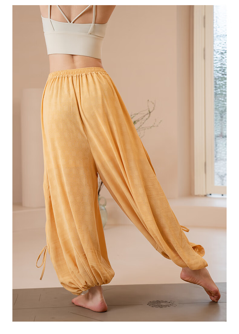 Meesu Yoga Pants Women's Loose Bloomers Chinese Style Pilates Dance Fitness Sports Pants New Chinese Style Wide Leg Pants Bright Yellow S