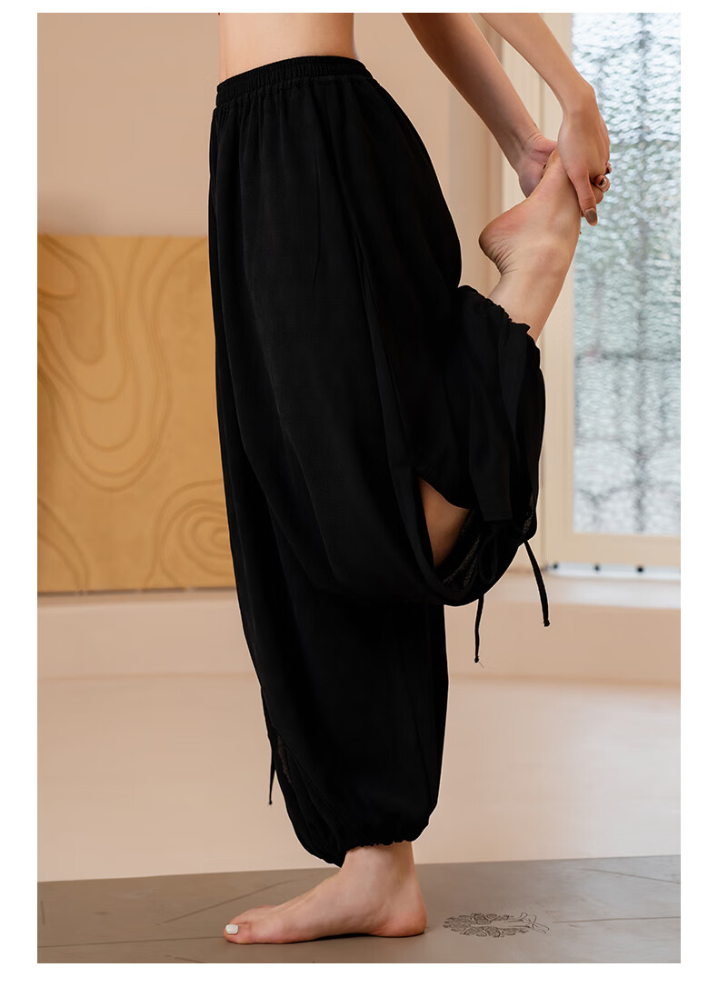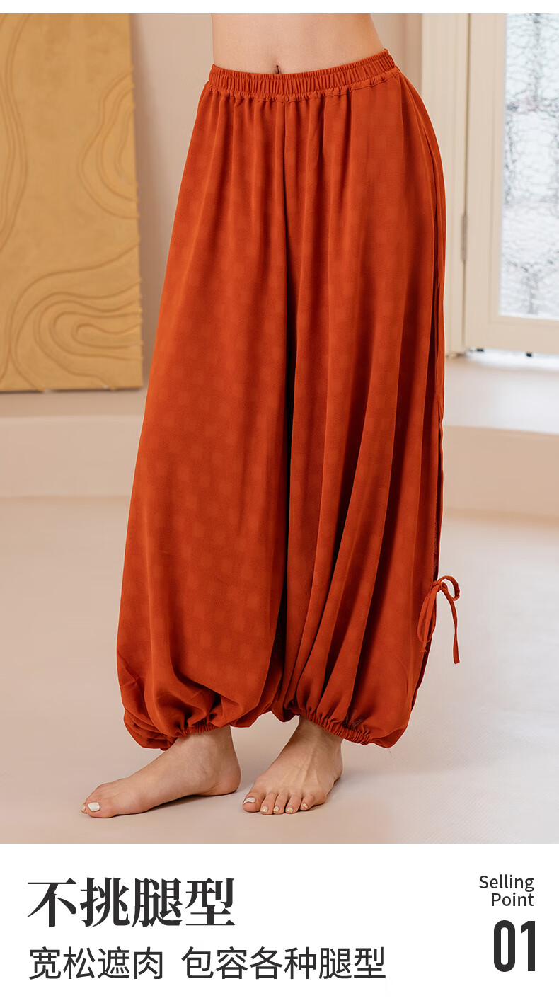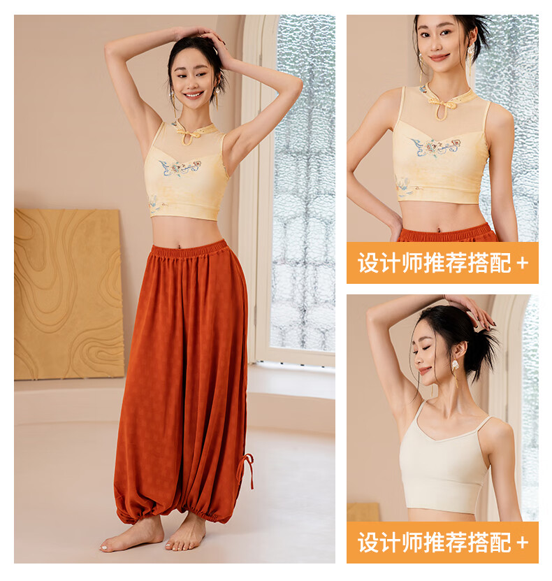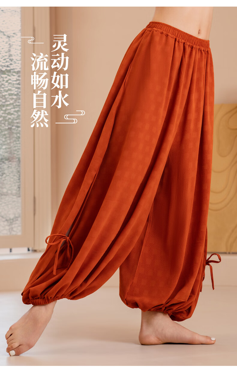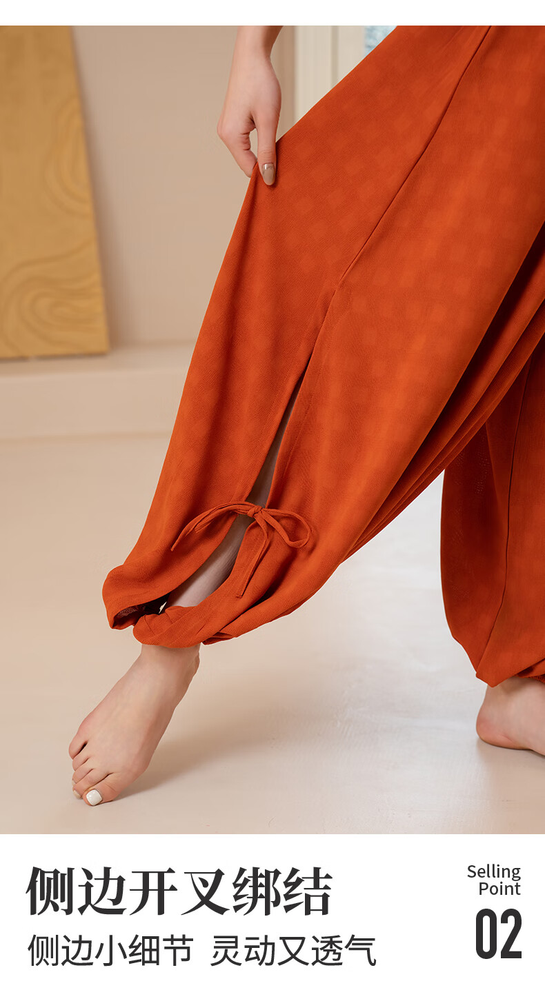 Meesu Yoga Pants Women's Loose Bloomers Chinese Style Pilates Dance Fitness Sports Pants New Chinese Style Wide Leg Pants Bright Yellow S