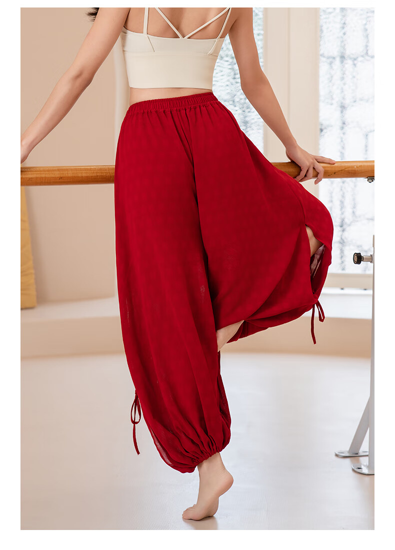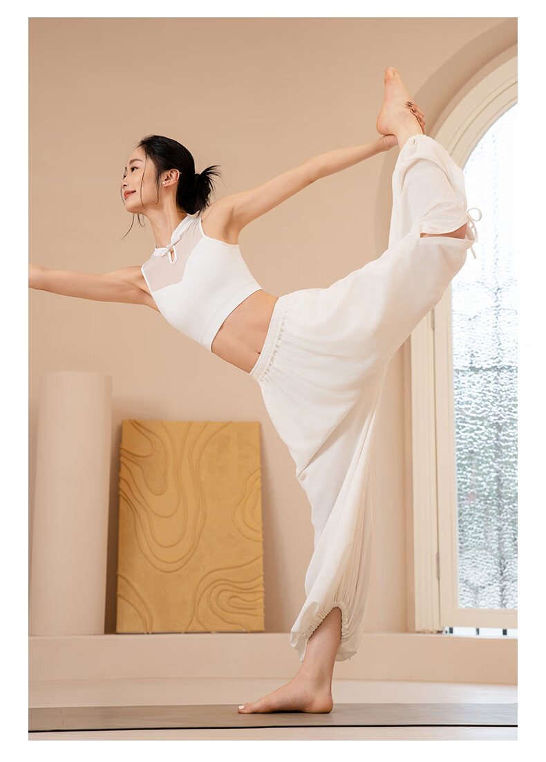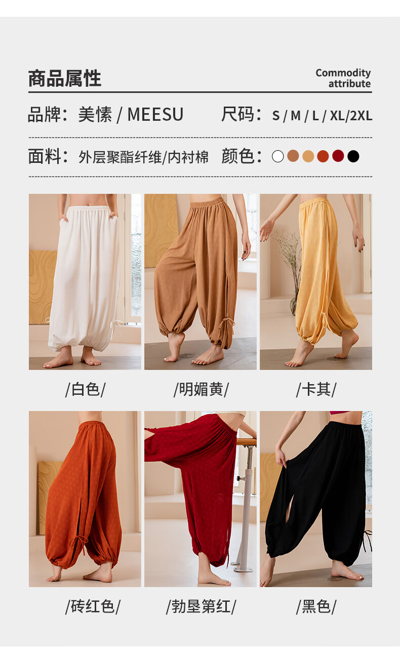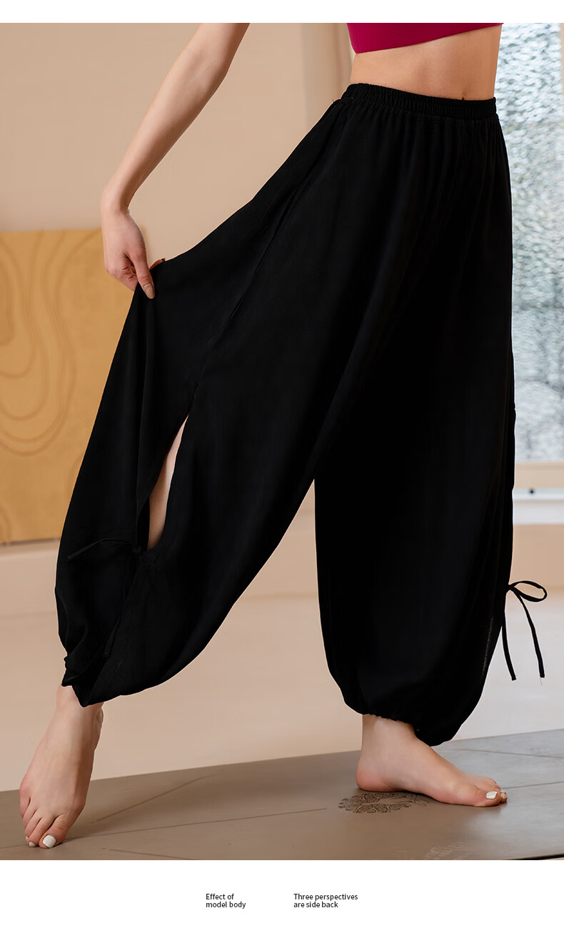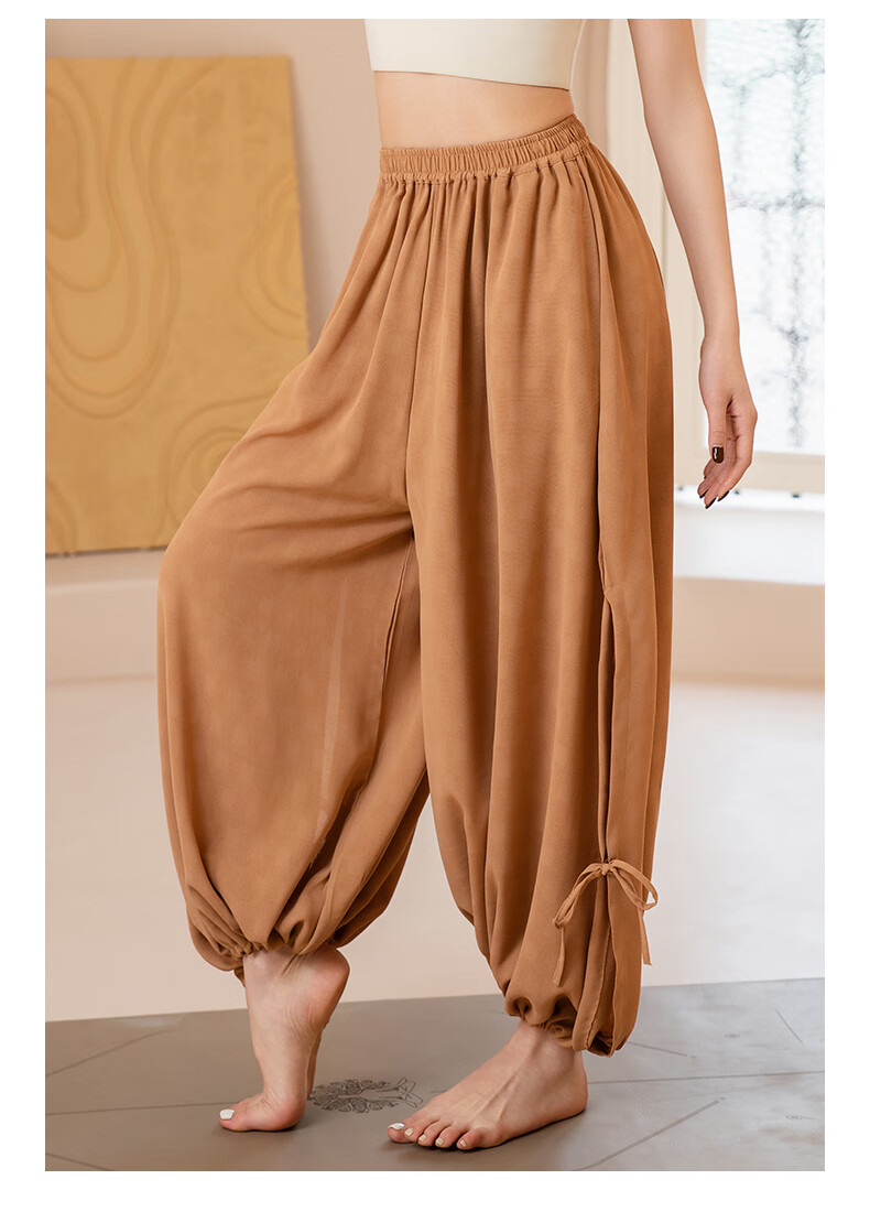 Meesu Yoga Pants Women's Loose Bloomers Chinese Style Pilates Dance Fitness Sports Pants New Chinese Style Wide Leg Pants Bright Yellow S