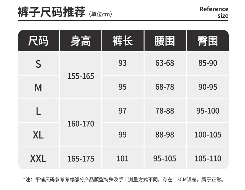 Outseam (cm) 99 cm 101.5 cm 104 cm 106.5 cm 109 cm