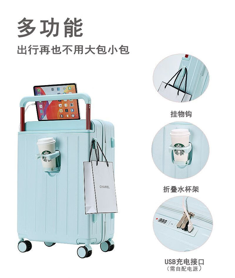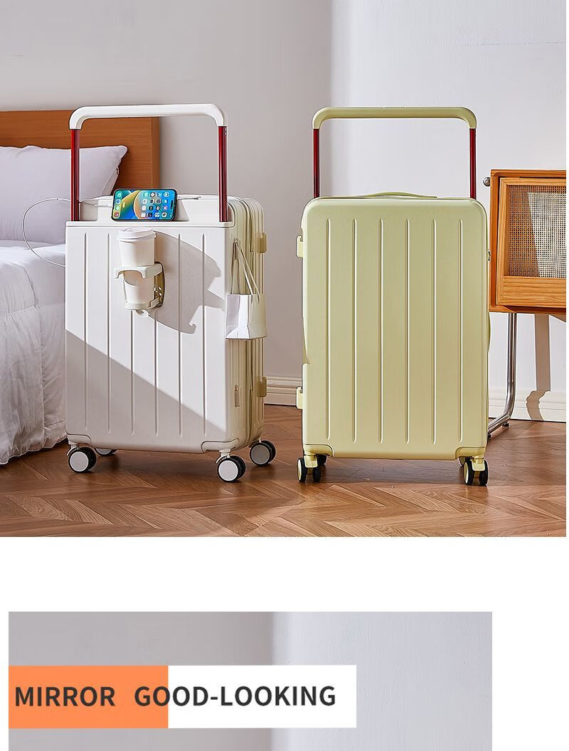 Kangaroo (KANGAROO) wide trolley suitcase front opening trolley case men's large capacity multifunctional password box student women's travel suitcase piano white fashionable wide trolley 20 inches small boarding