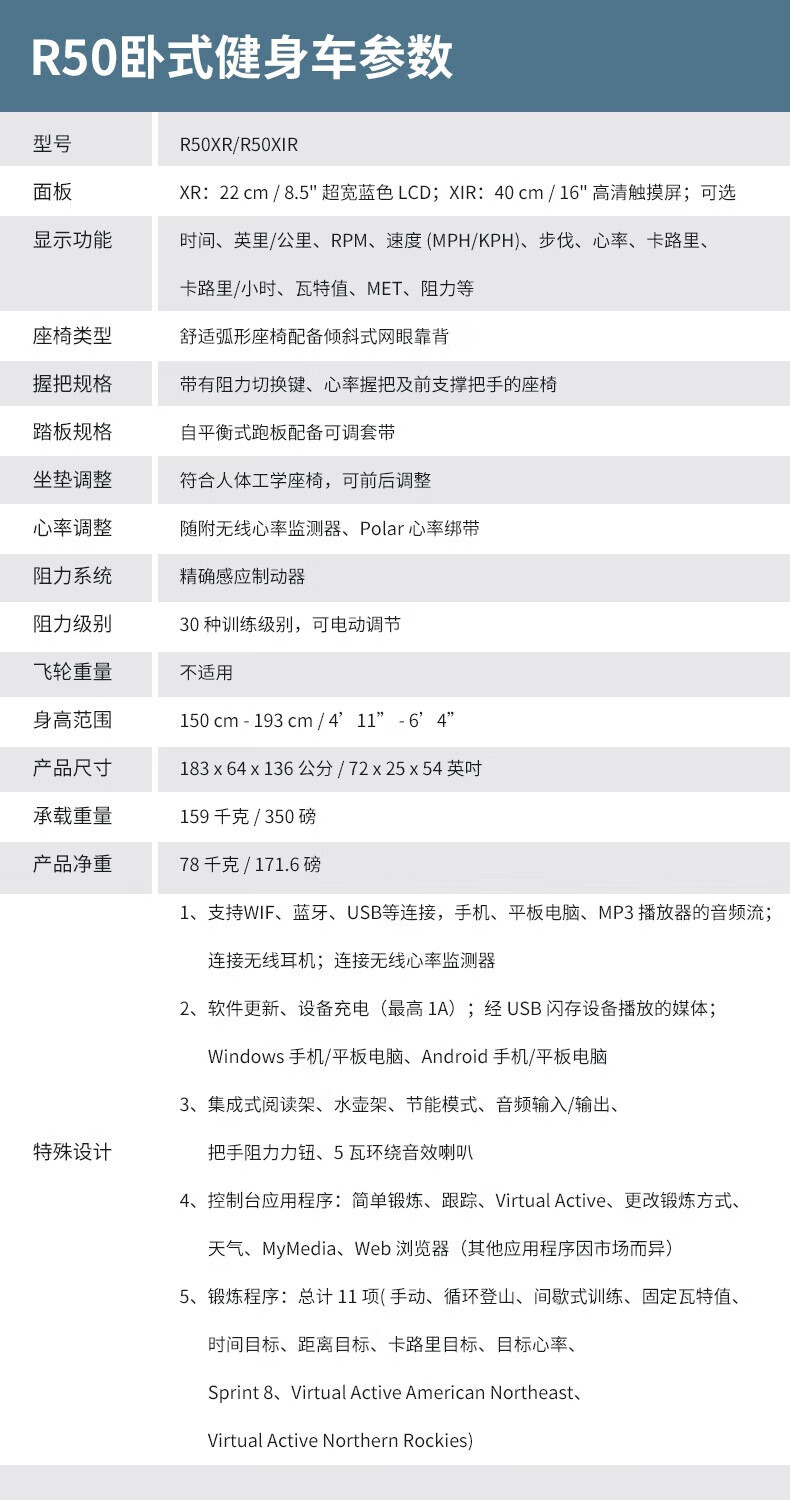 JOHNSON high-end commercial Matrix horizontal exercise bike rehabilitation training bicycle home silent fitness equipment plug-in R50XIR-touch screen