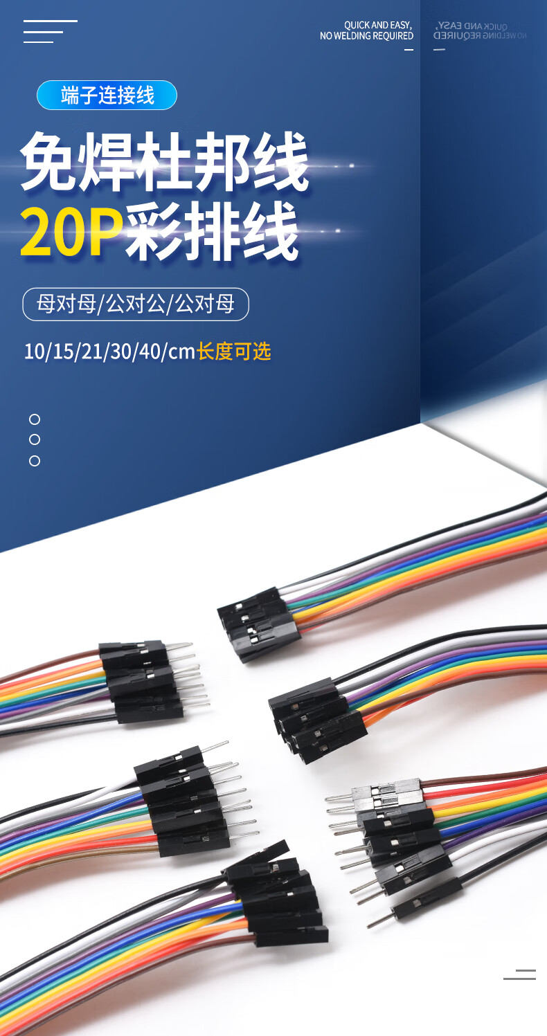 Dupont cable male to male female to female male to female 20p rehearsal cable connecting cable 10/15/21/30/40/cm Dupont cable 10cm three combinations (30 in total) No Specifications