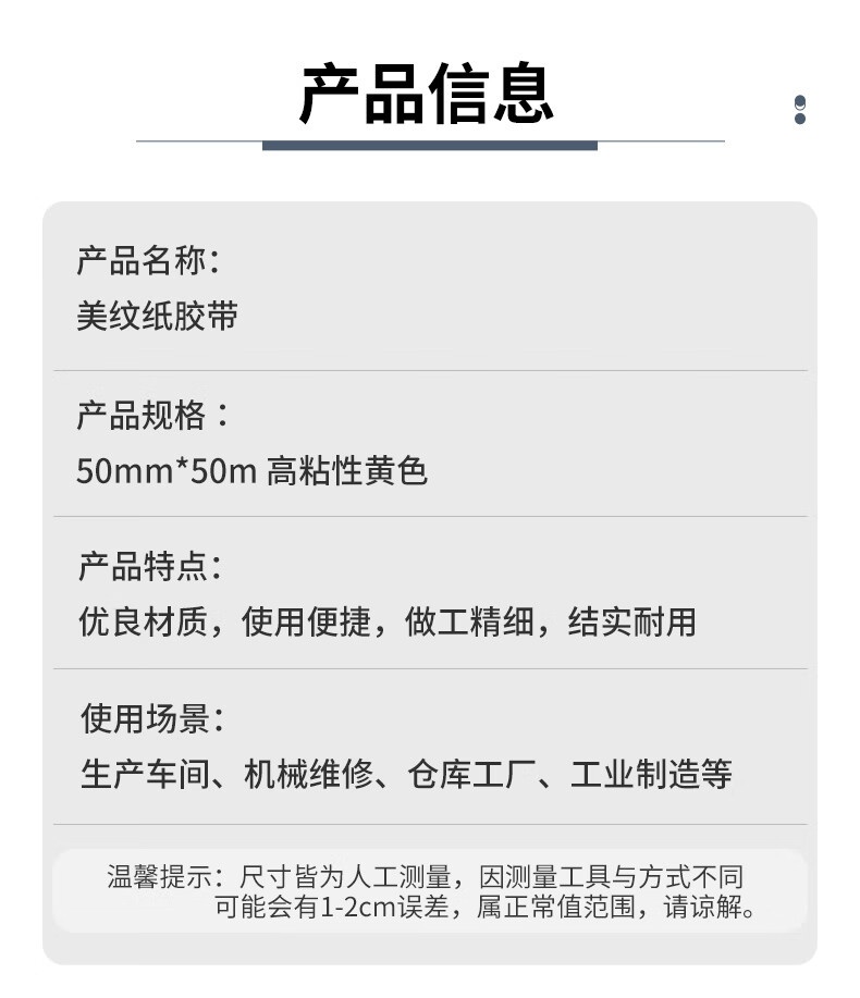 Benyida masking tape 50mm*50m high viscosity yellow