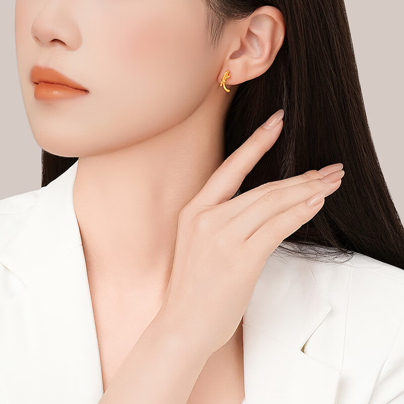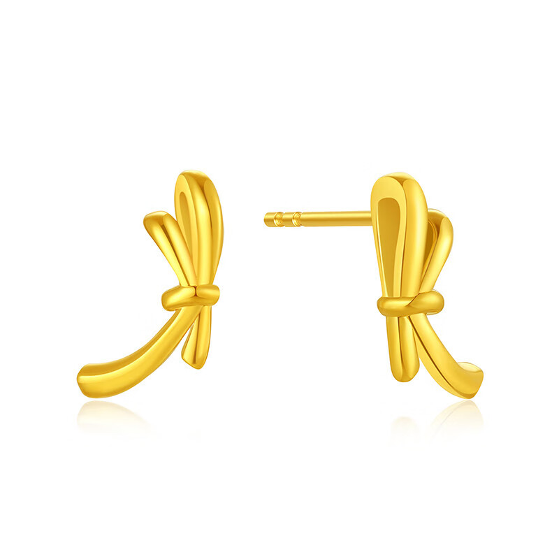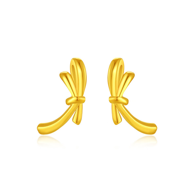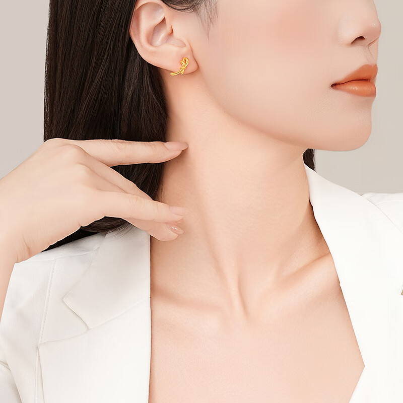 Chao Acer to Jane Bow Yellow 18K Gold Earrings Women's Gold Earrings for Workplace Commuting as a Birthday Gift for Girlfriend One Pair Contains Silicone Ear Plugs