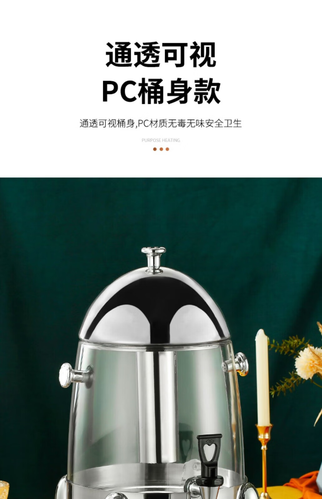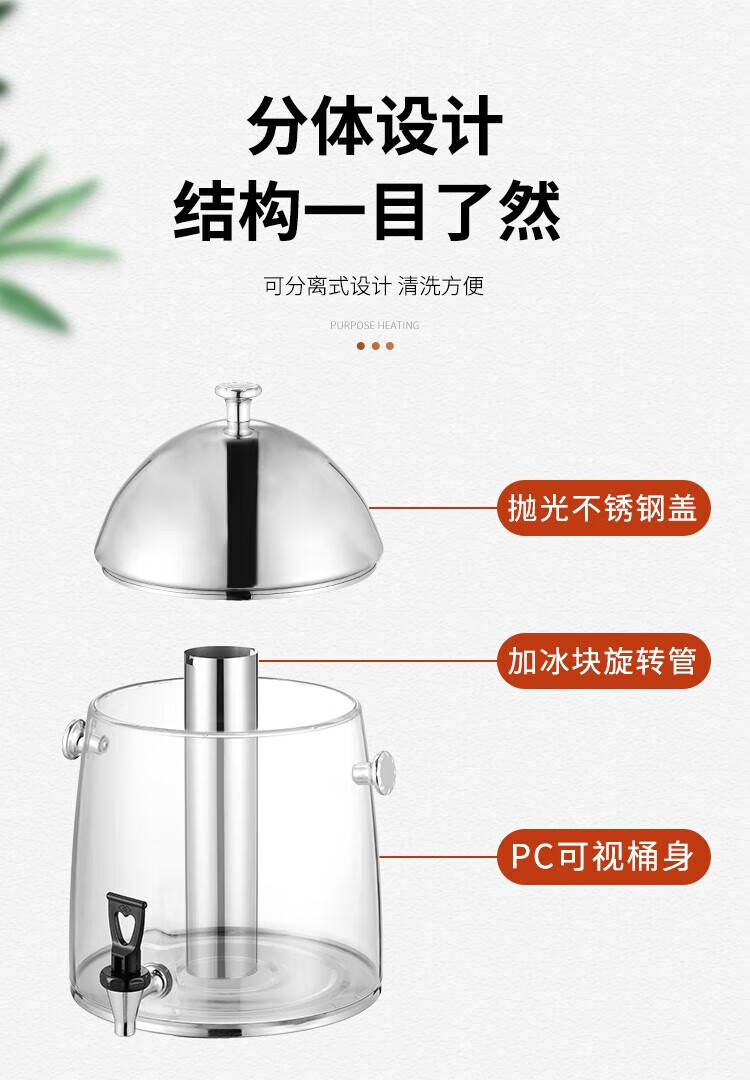 Venus Juice Milk Cauldron Stainless Steel Buffet Beverage Machine Commercial Coffee Soy Milk Milk Insulation Electric Heating Tea Cauldron Alcohol Heating 19L All Steel Polished Model
