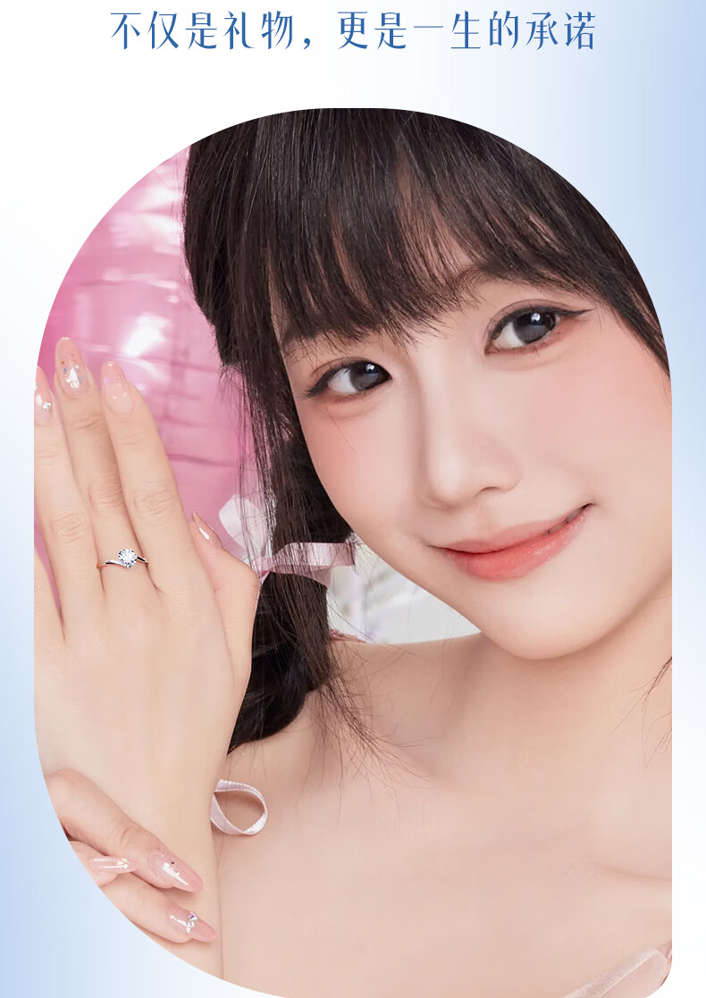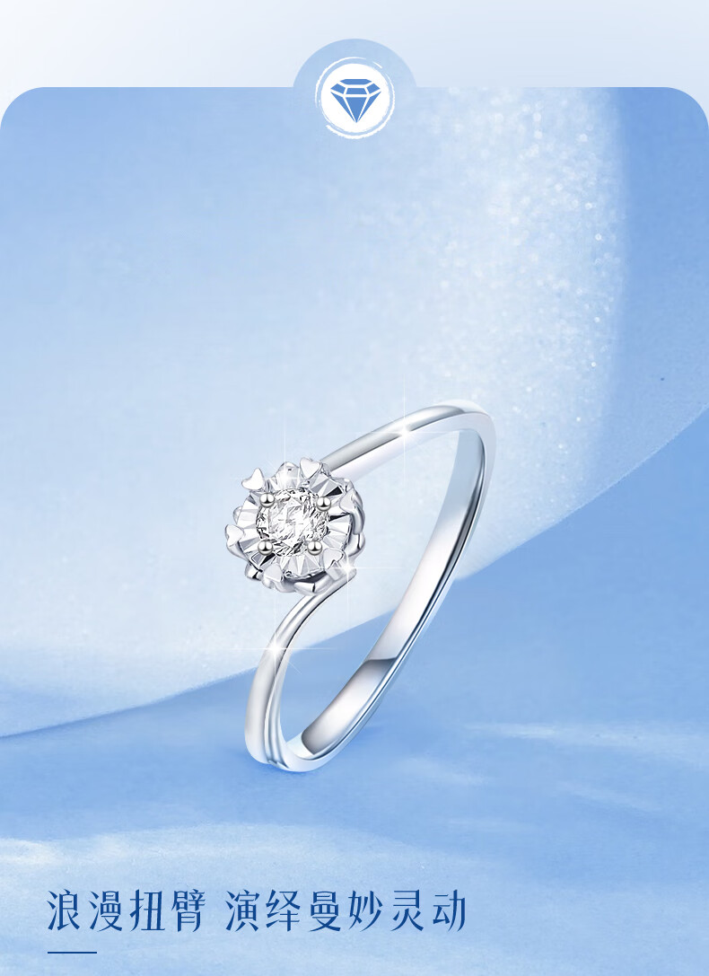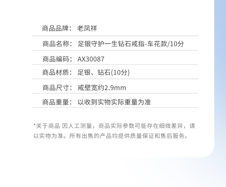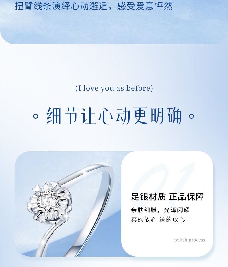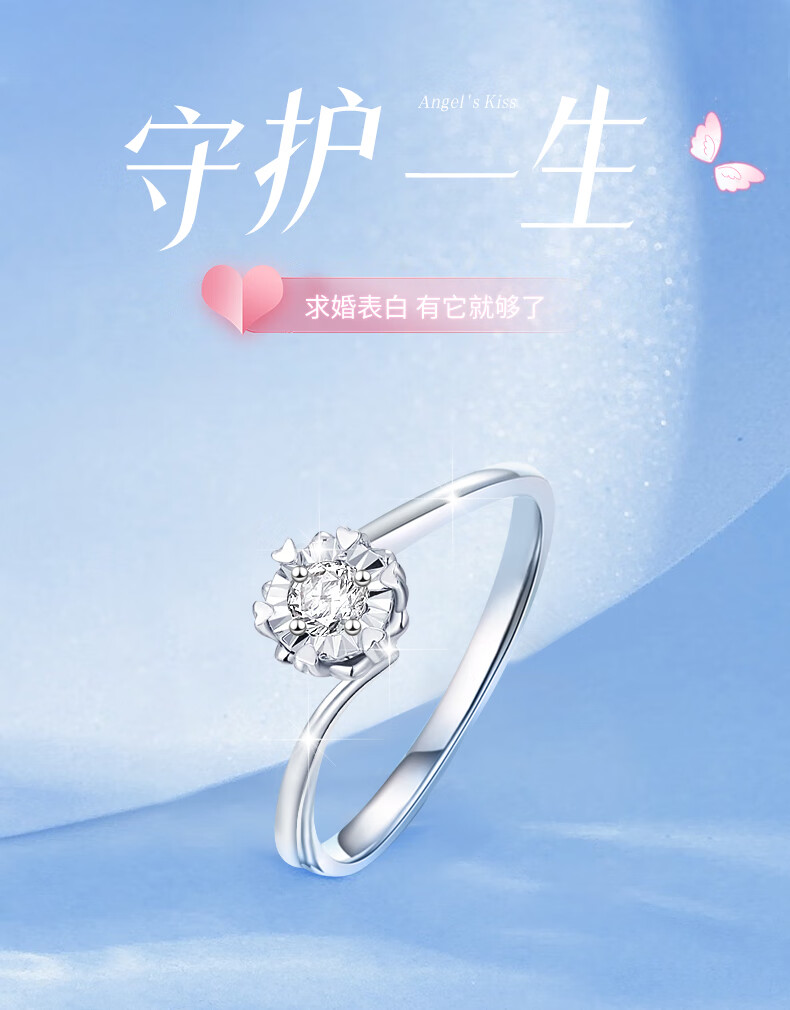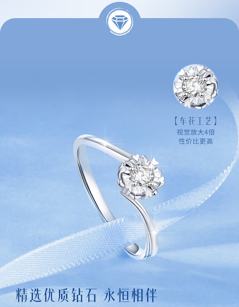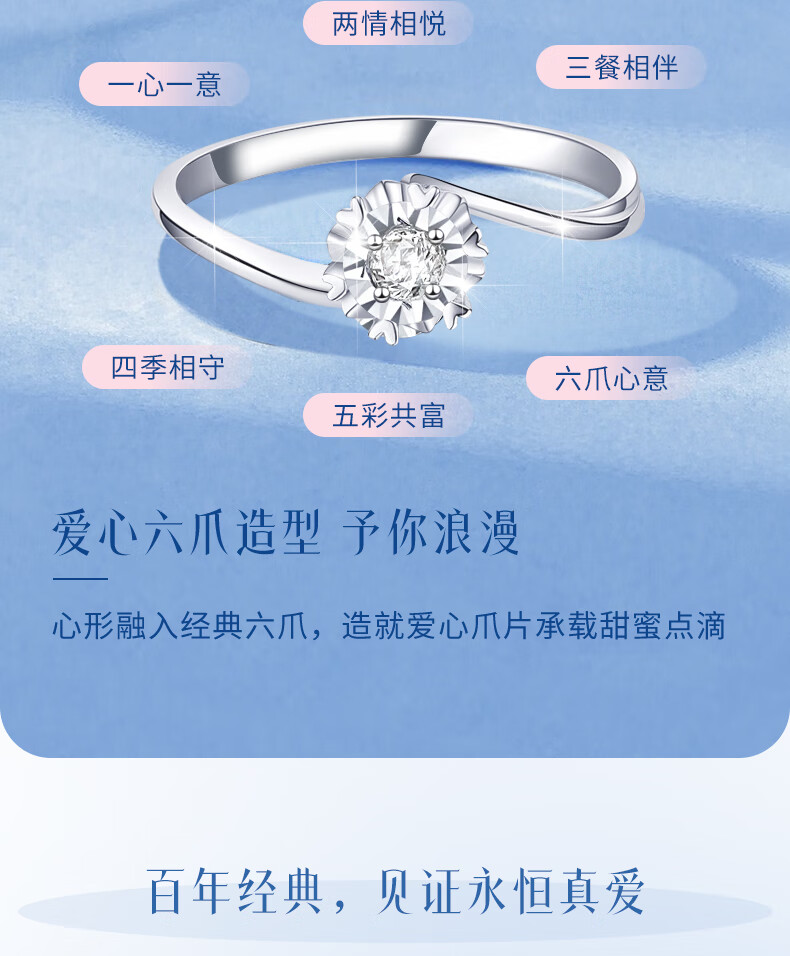 Lao Fengxiang protects a lifetime diamond and solid silver ring. Proposal diamond ring for lady, wedding anniversary gift for girlfriend and wife. Pure silver protects lifetime diamond ring.