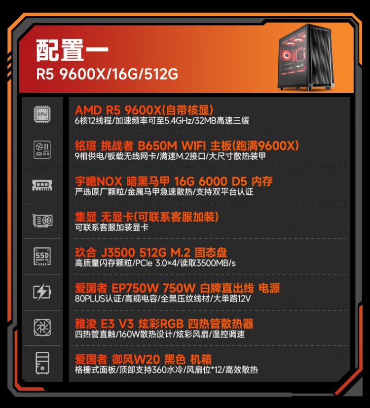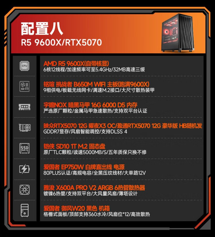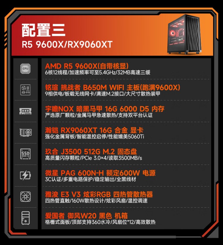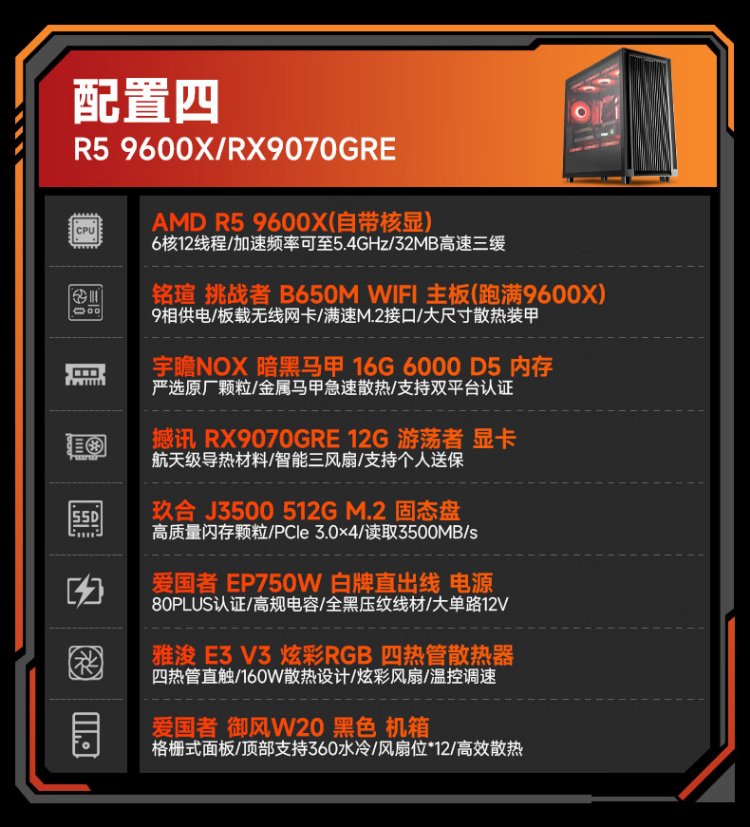AMD Ryzen 5 9600X host/9060XT/9070GRE/5060Ti/5070 graphics card desktop computer host game e-sports live broadcast design complete machine DIY assembly machine configuration four 9600X+RX9070GRE