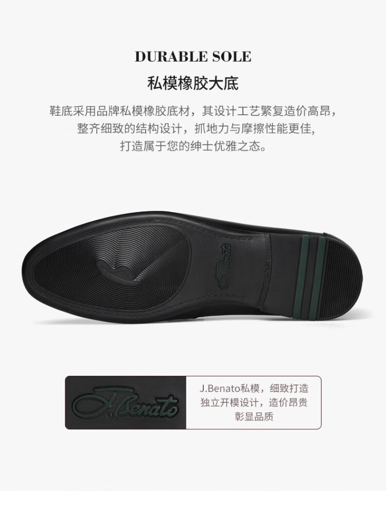 J.Benato brand flagship men's shoes 25 spring and summer new men's business formal leather shoes men's genuine leather slip-on shoes black 40 (250mm)