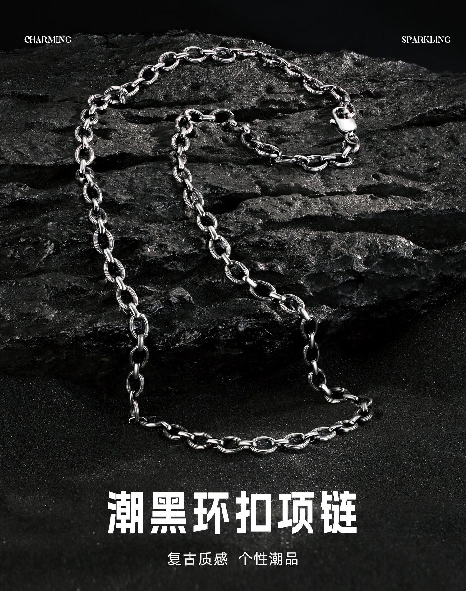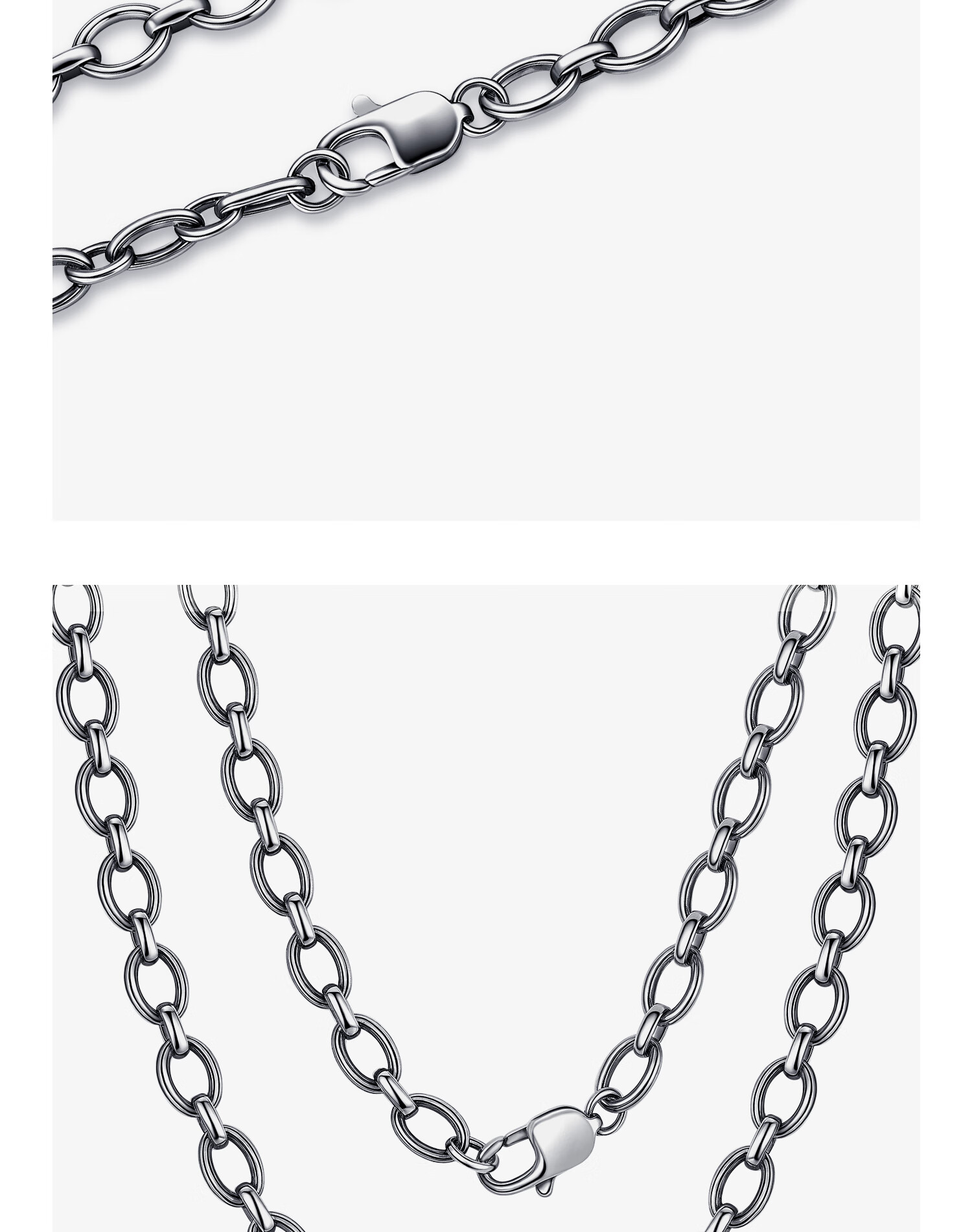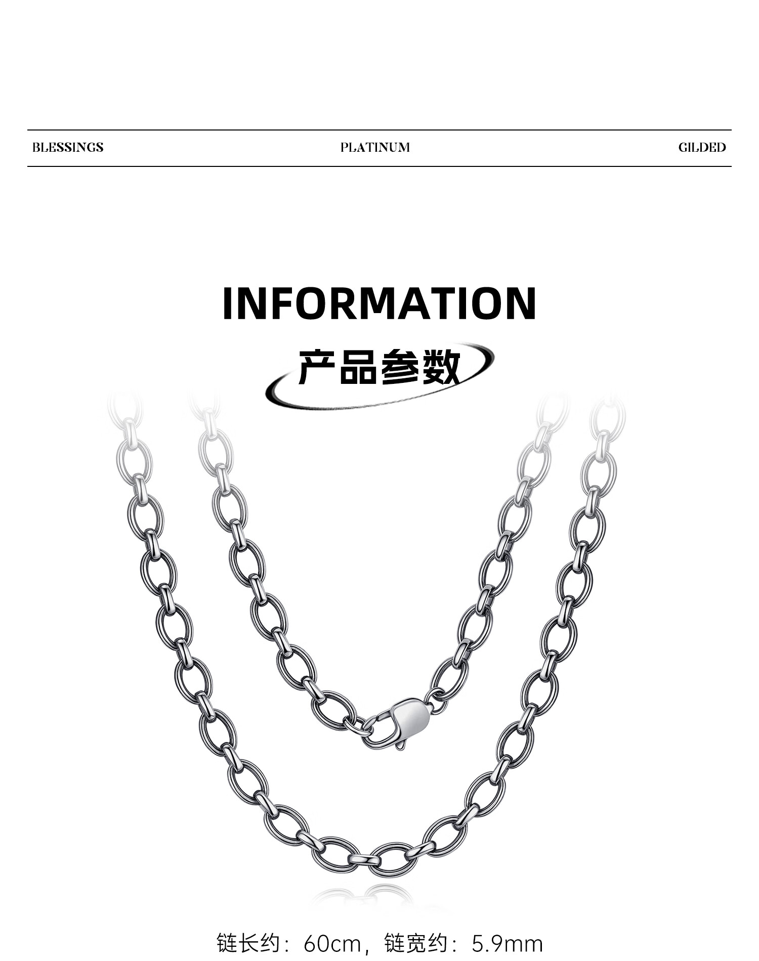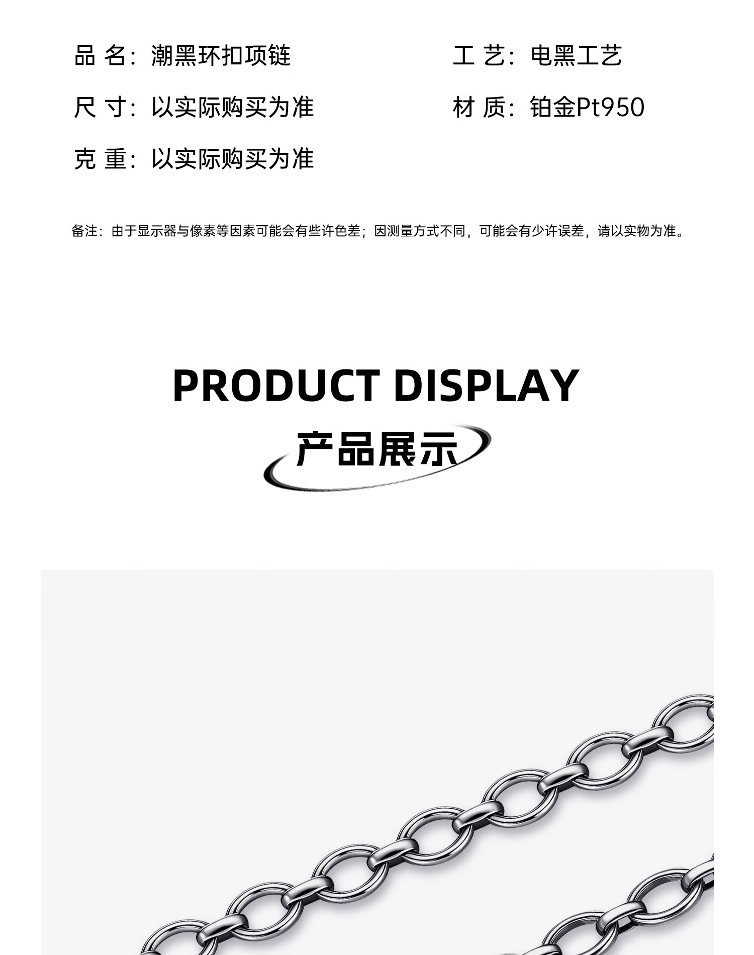 Zhongxin Jewelry Trendy Black Ring Buckle PT950 Platinum Necklace Electric Black O-shaped Clavicle Chain Simple Platinum Plain Chain for Men and Women 47.7g (59cm)