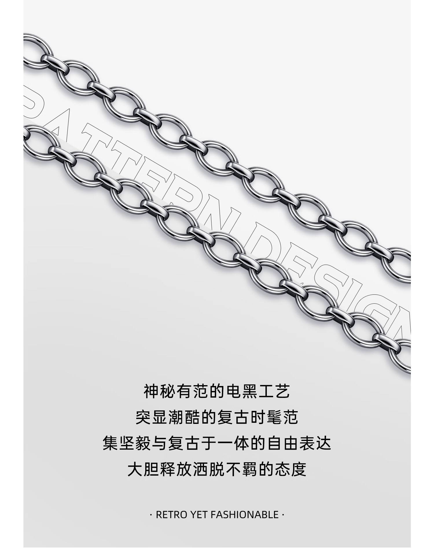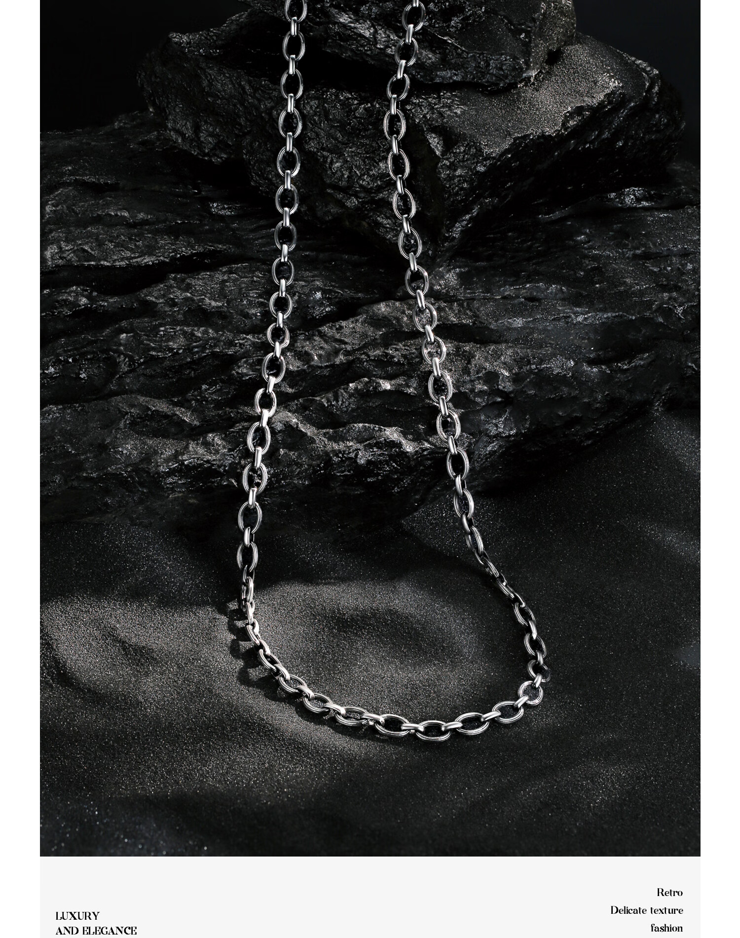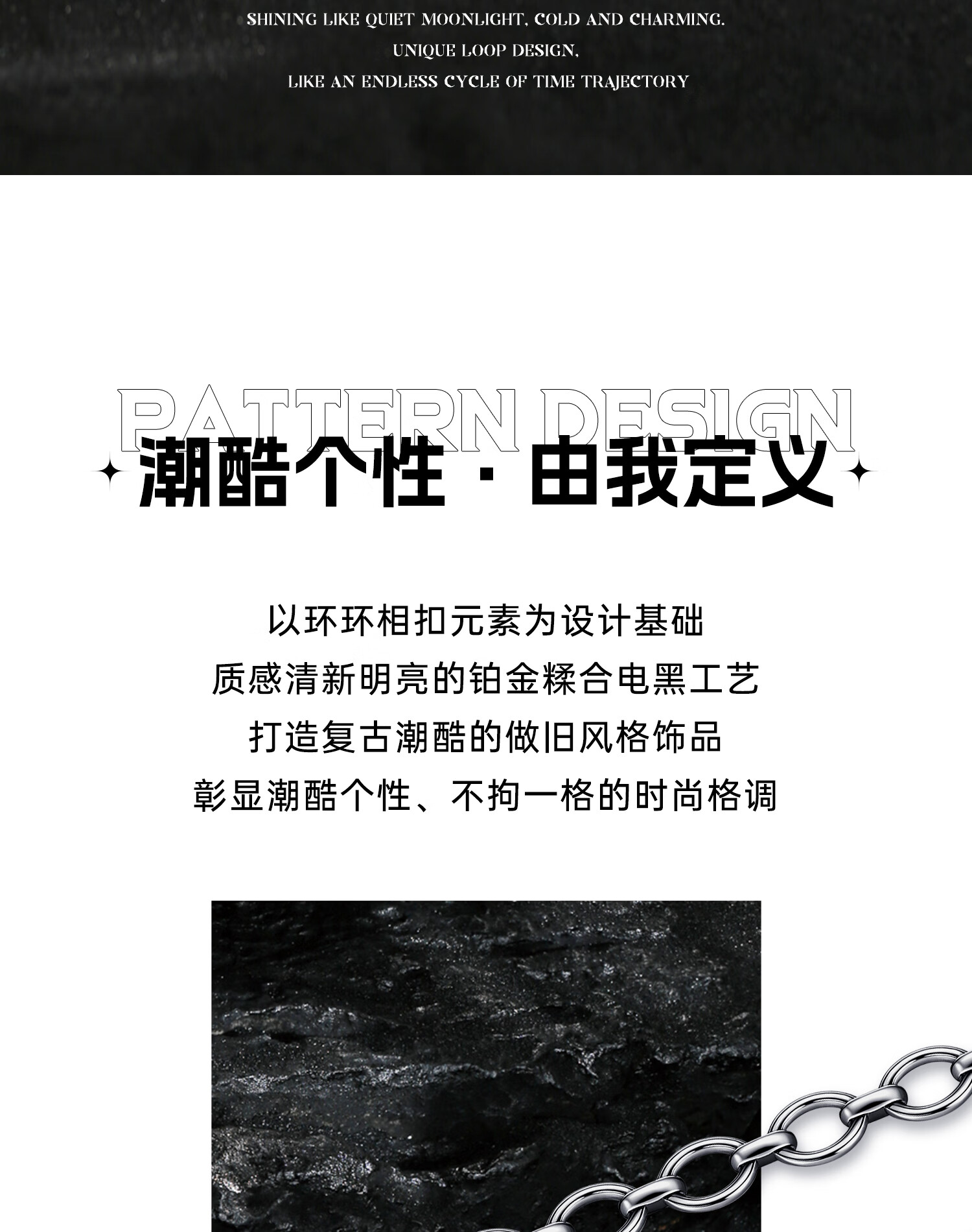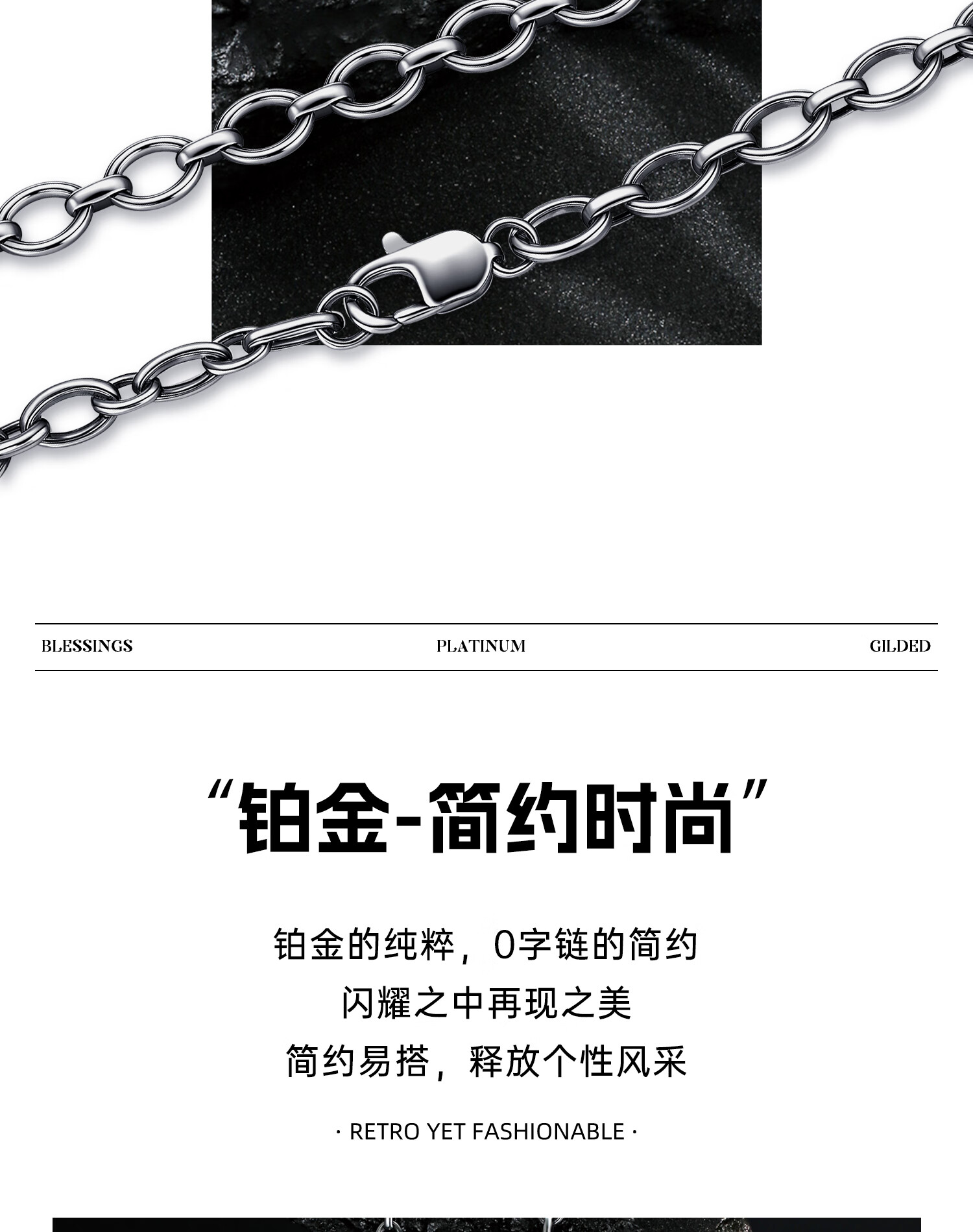 Zhongxin Jewelry Trendy Black Ring Buckle PT950 Platinum Necklace Electric Black O-shaped Clavicle Chain Simple Platinum Plain Chain for Men and Women 47.7g (59cm)