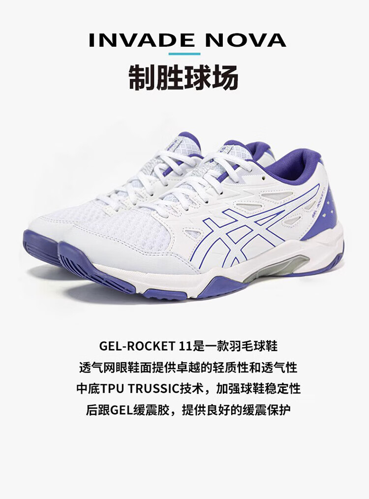 ASICS Volleyball Shoes Men's and Women's Badminton Air Volleyball Shoes GEL-ROCKET11 1072A093-401 Blue and White Standard Code 20 38 240MM