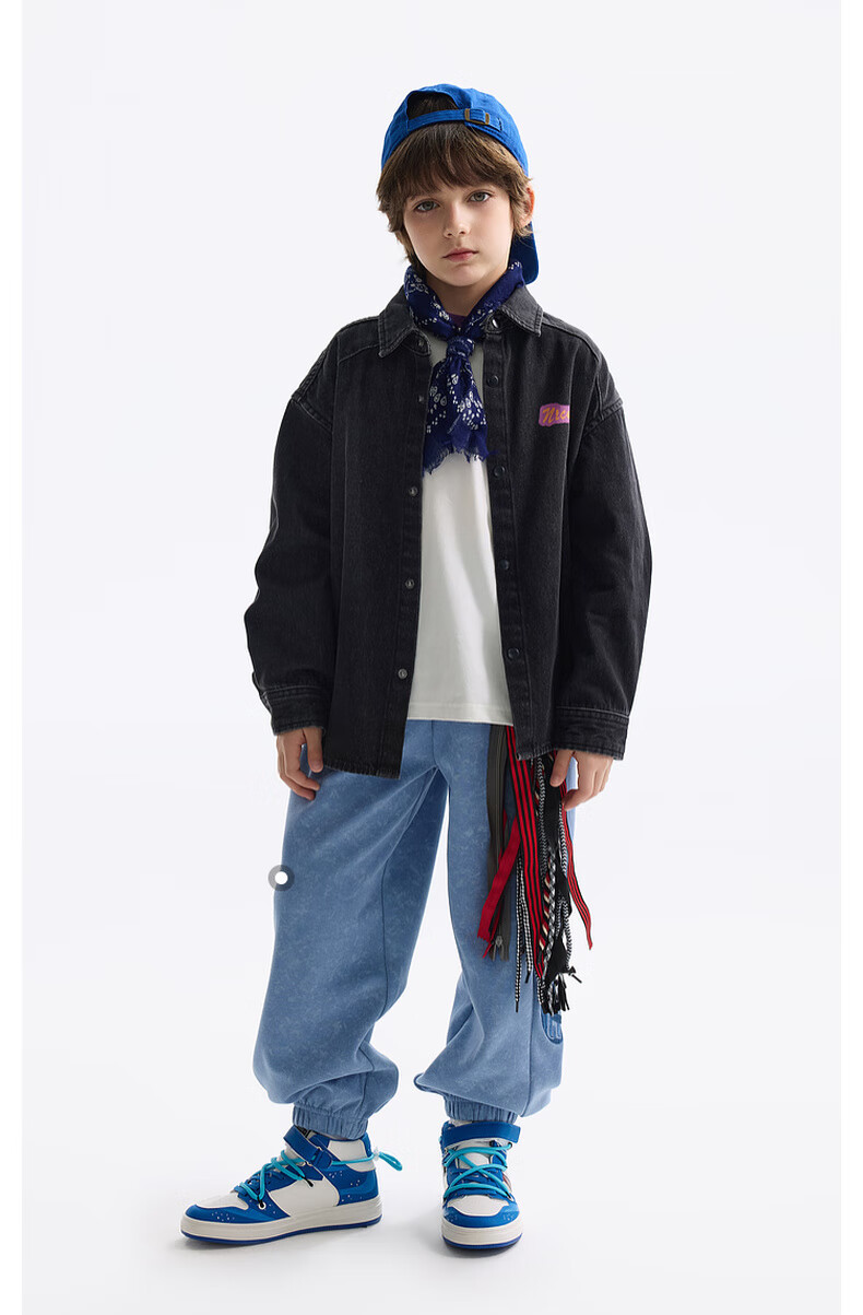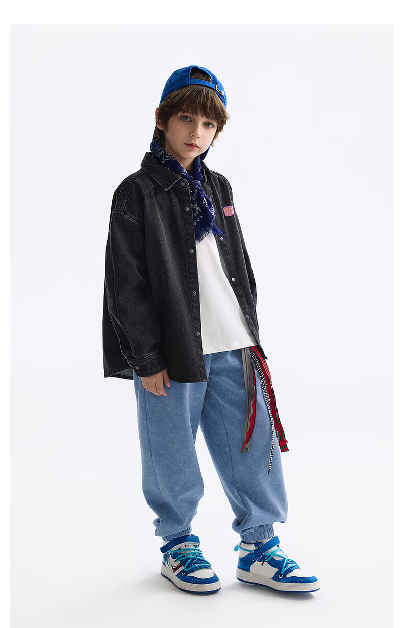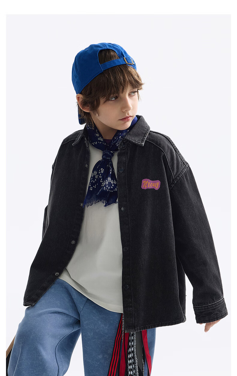 MQD MQD children's clothing children's shirt spring new lapel long-sleeved washed denim shirt fashion printed top carbon black 140
