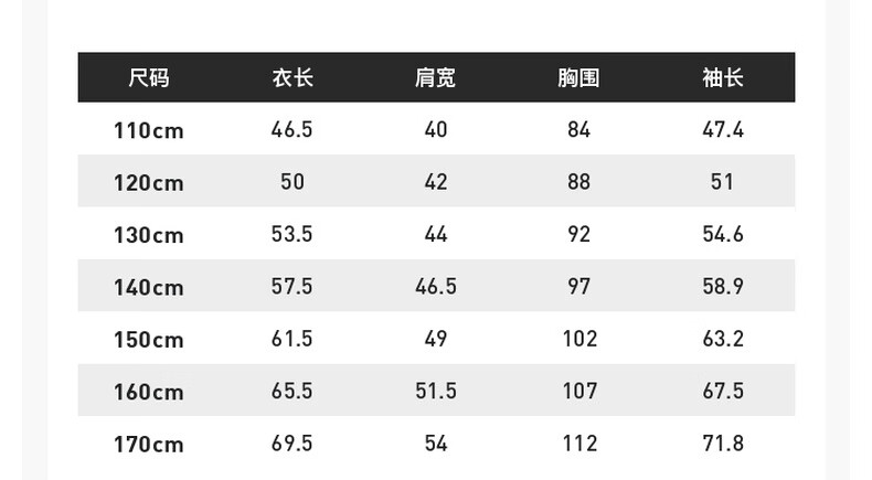 China (cm) 165 / 88-90 170 / 96-98 175 / 108-110 180 / 118-122 185 / 126-130