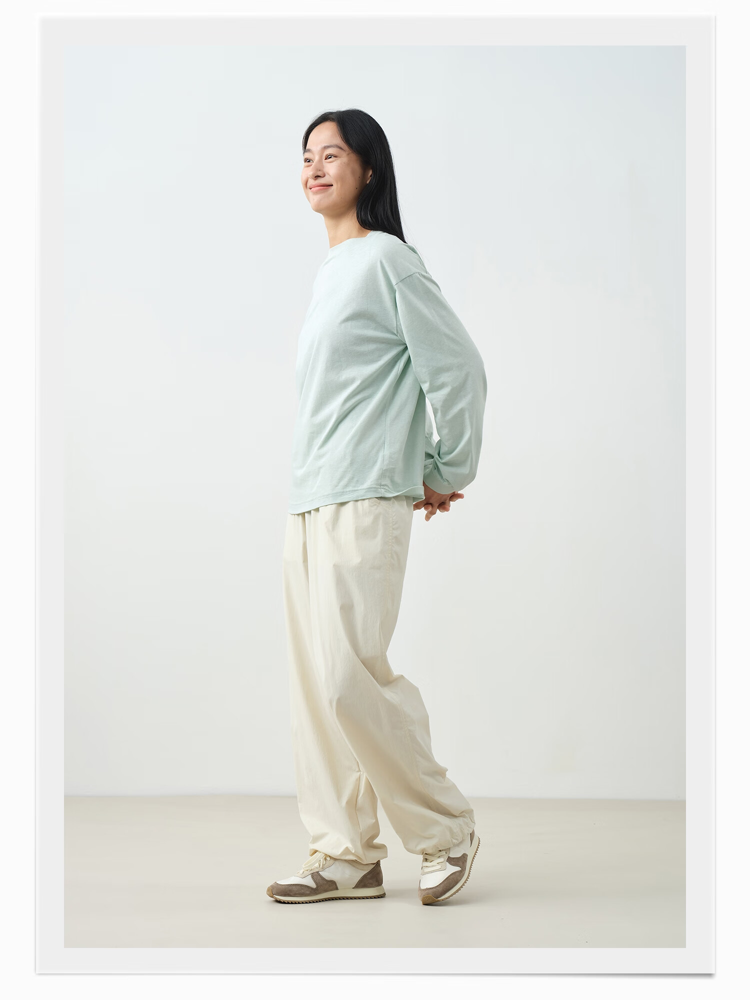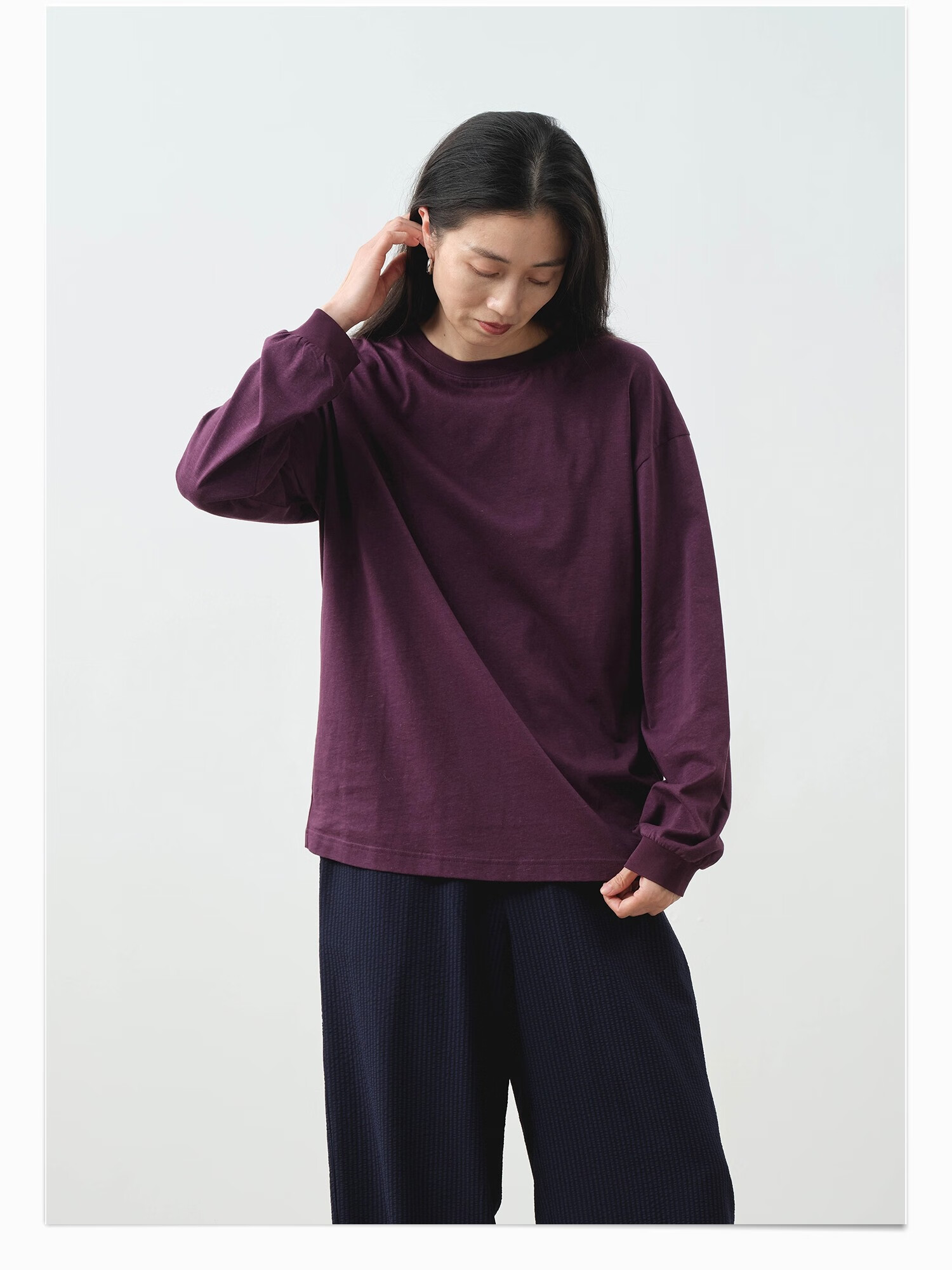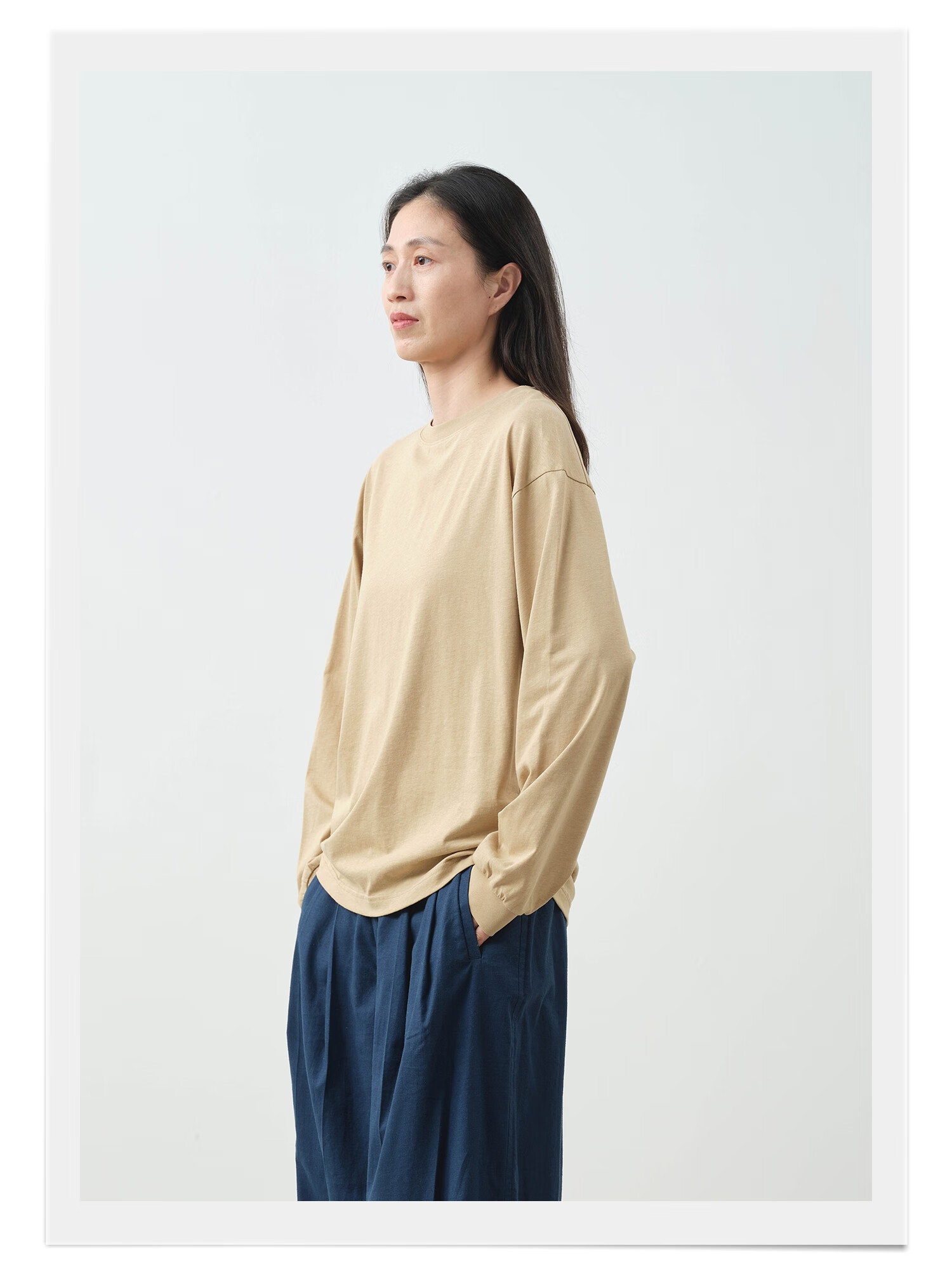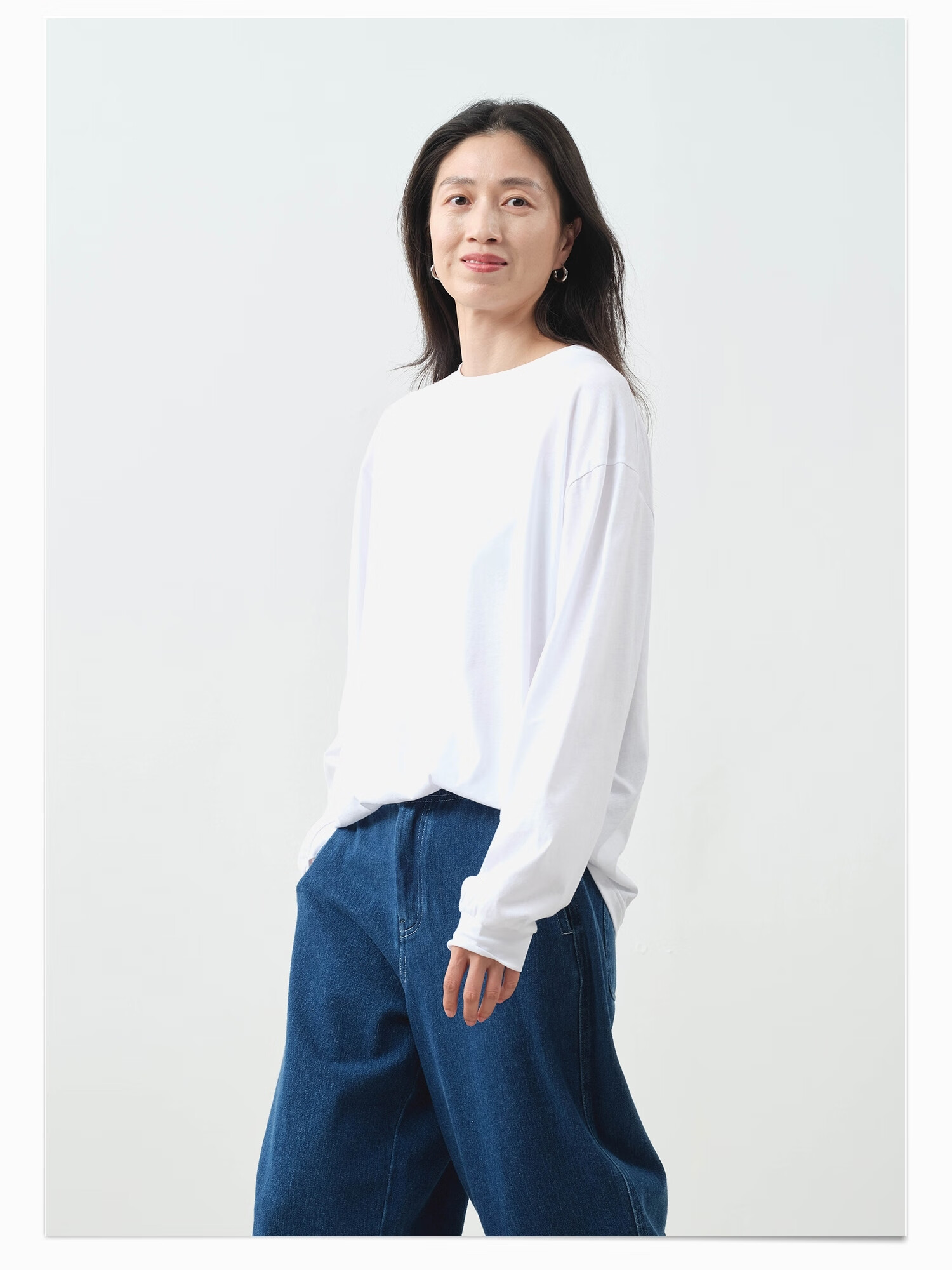 Youlan parent-child sensitive skin can also wear 25 spring and summer women's soft hemp long-sleeved T-shirt bright white 165