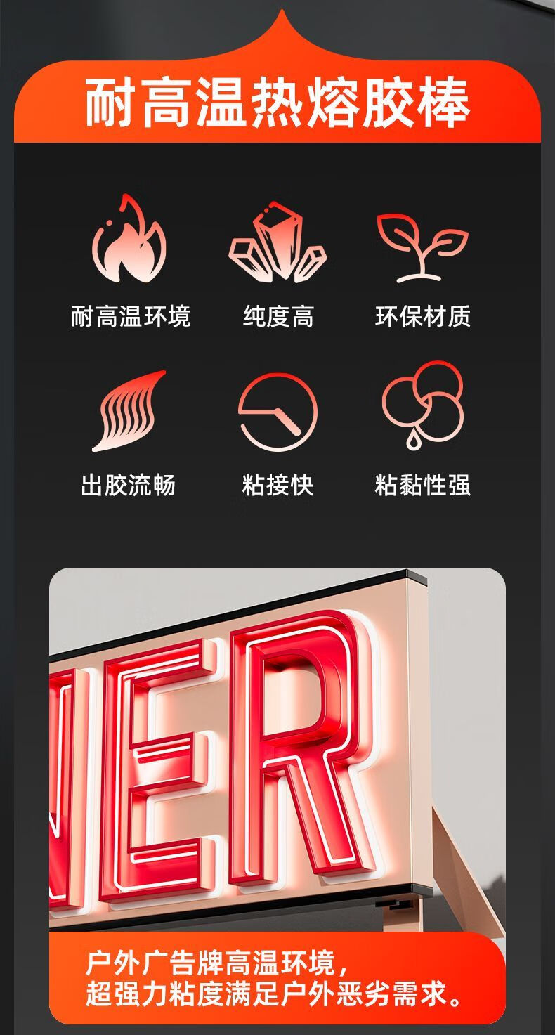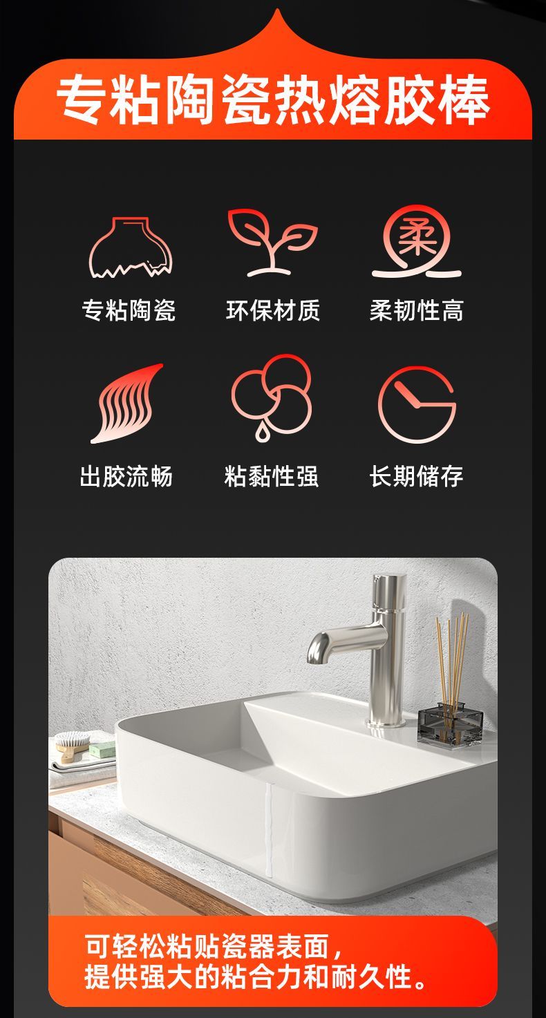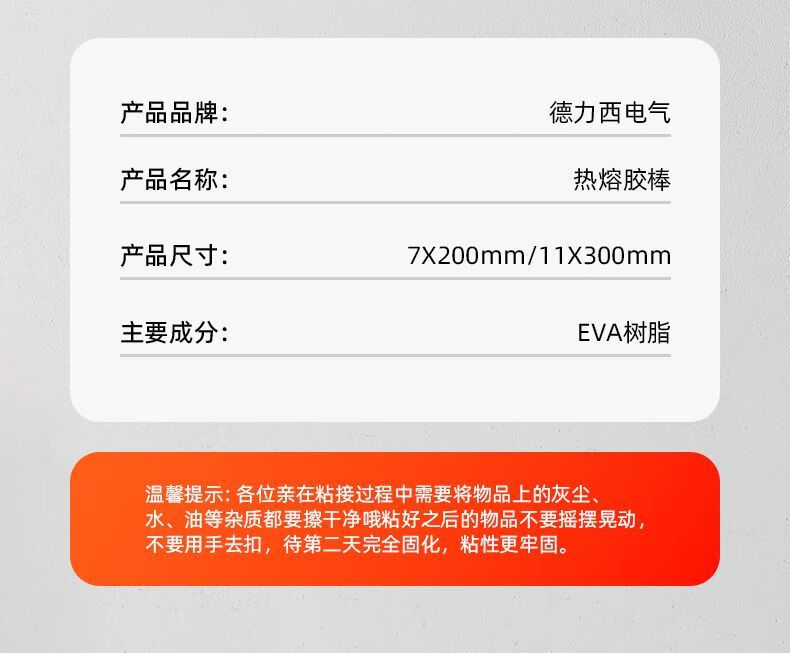 Delixi Electric hot melt glue stick for children's handmade metal ceramic high-temperature products, ultra-high viscosity 7mm/11mm glue gun glue strip for metal, 7x200MM-10 pieces