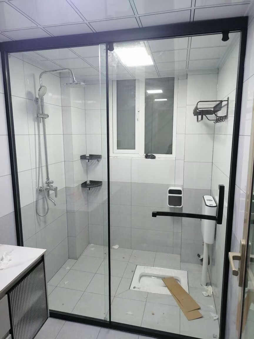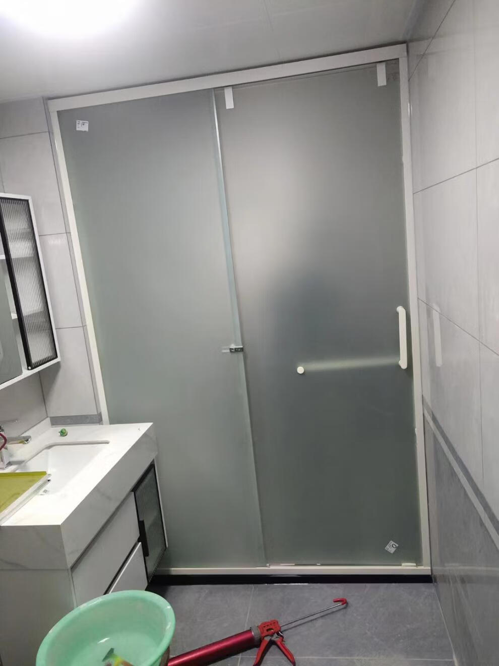 Yichen custom-made shower room dry and wet separation bathroom space aluminum partition straight sliding door bathroom tempered glass frosted glass + 10 yuan / square