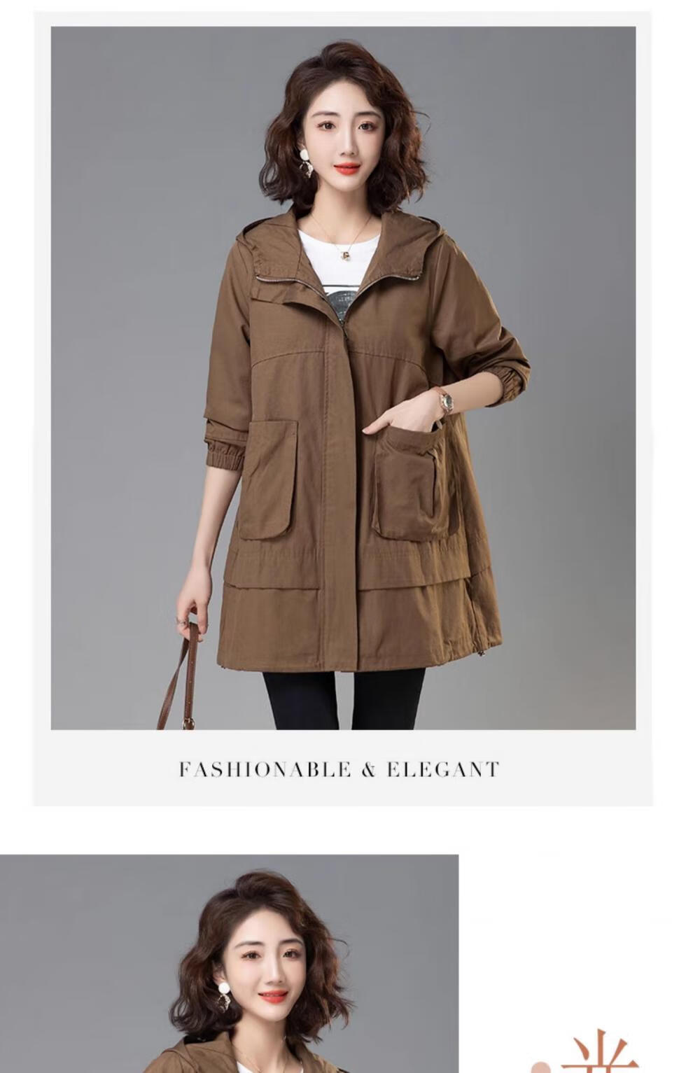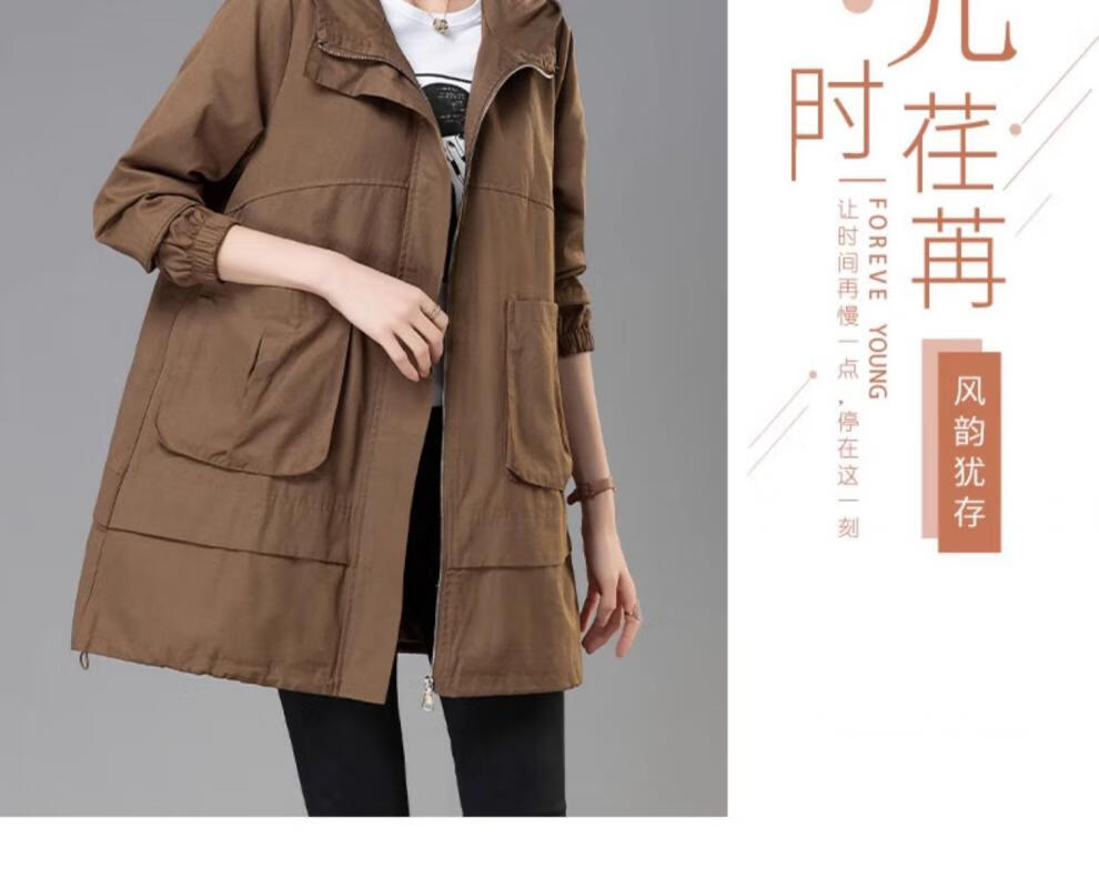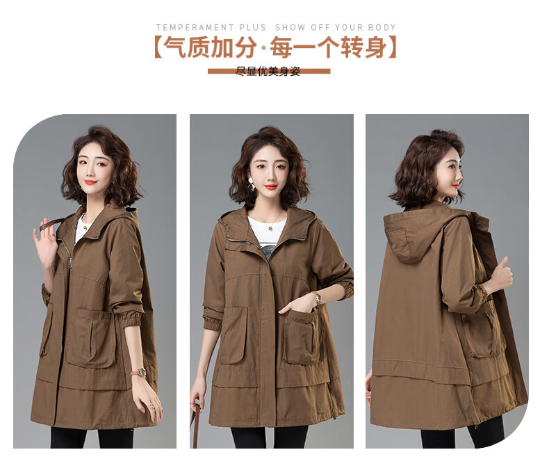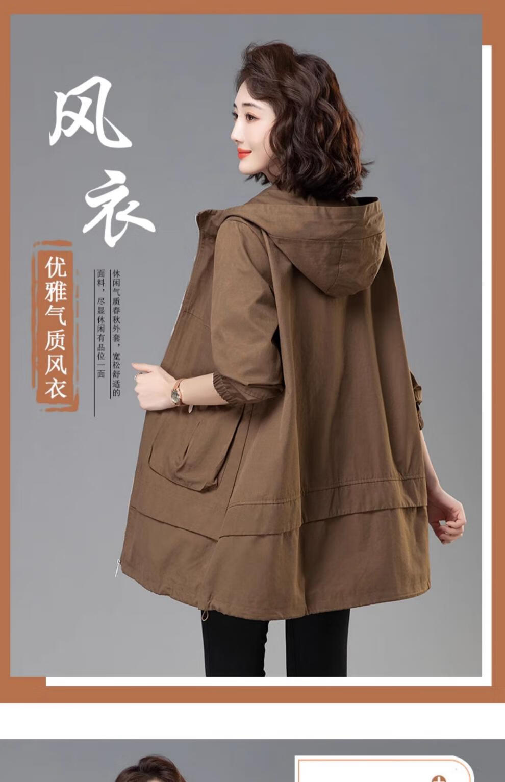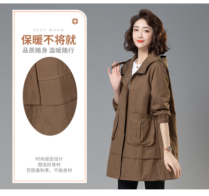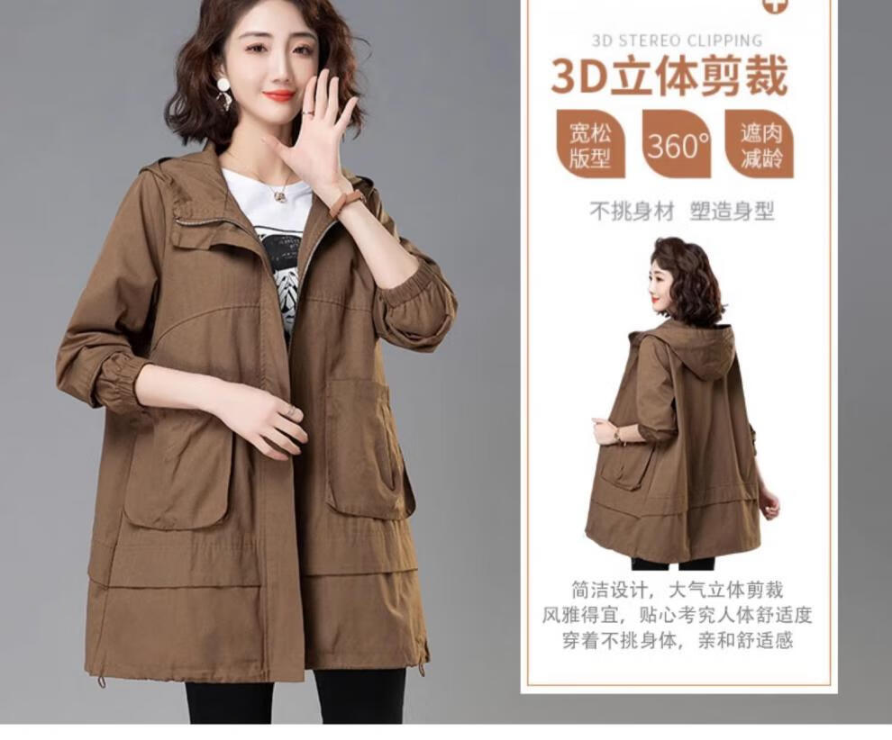 Woodpecker Korean Style Loose Windbreaker Women's Mid-Length Spring and Autumn Clothing 2026 New Casual Western Style Jacket for Middle-aged Mothers Brown 2XL (Recommended 130Jin Jin is equal to 0.5kg -145Jin Jin is equal to 0.5kg)