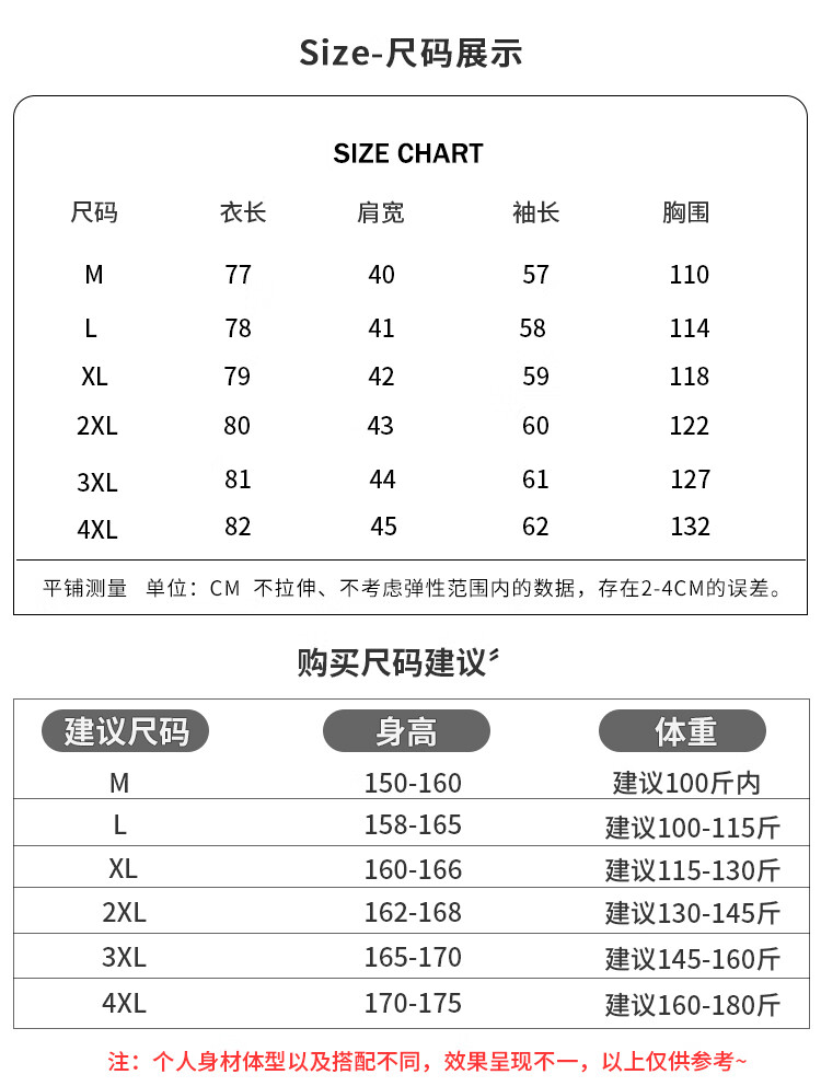 China (cm) 160-165/84-86 165-170 / 88-90 167-172 / 92-96 168-173 / 98-102 170-176 / 106-110