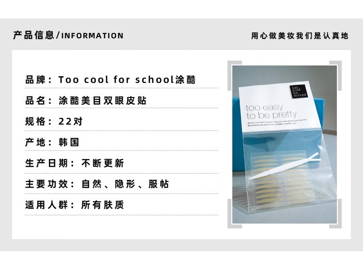 Too cool for school Korea single sided transparent double eyelid patch natural invisible 22 times in stock