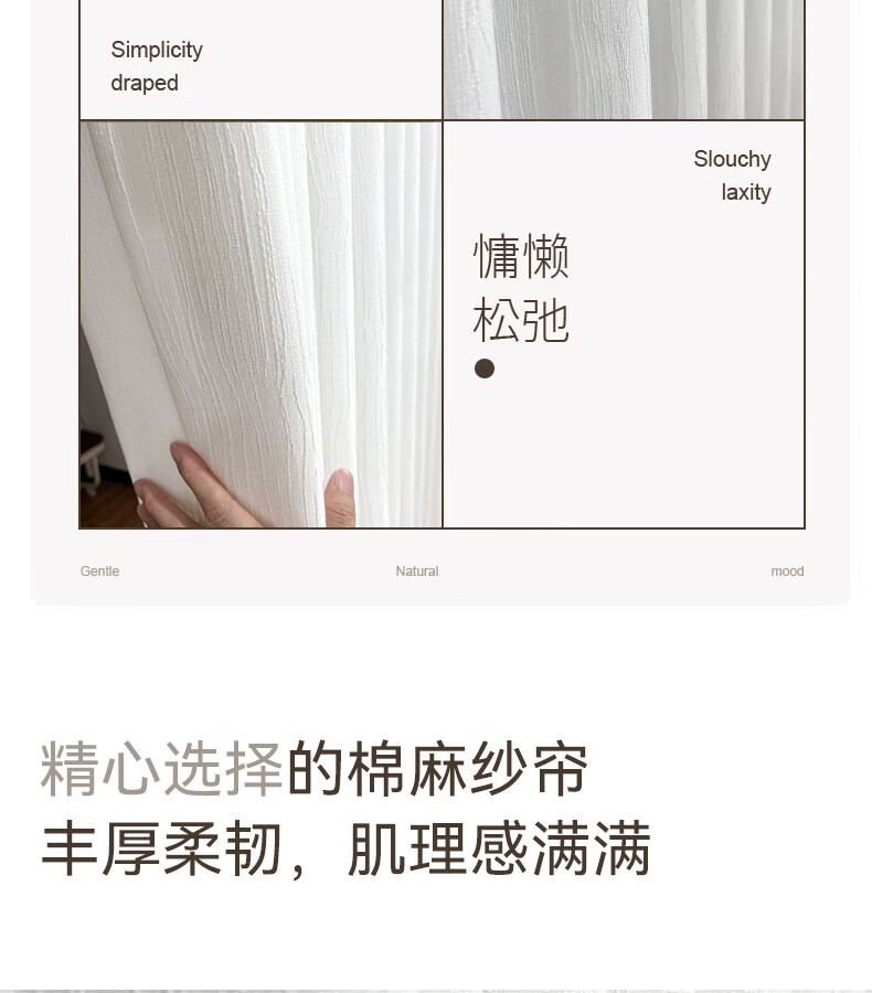 Ji Litian Yumai woven cotton and linen gauze curtain, simple light-proof and opaque sunshade screen for study, living room and balcony, woven lining - white, one meter Korean fold (single hook/S hook) processing and customization