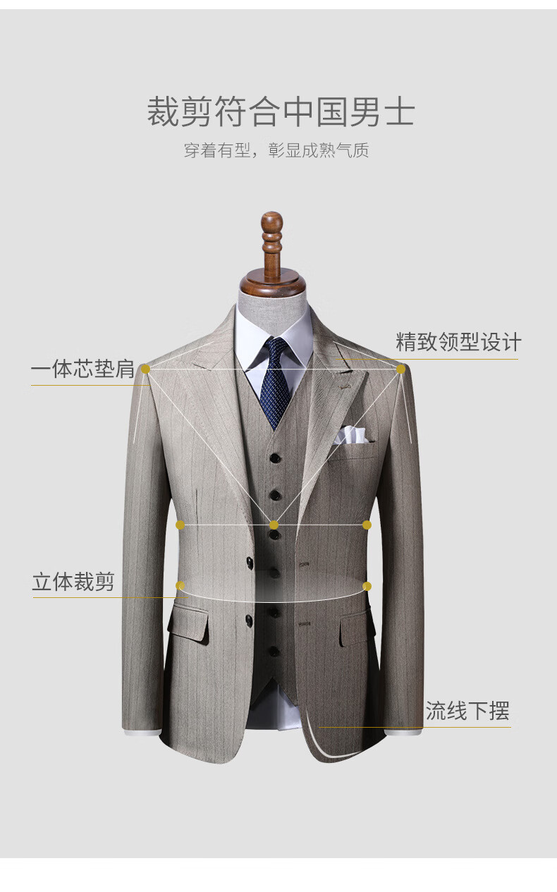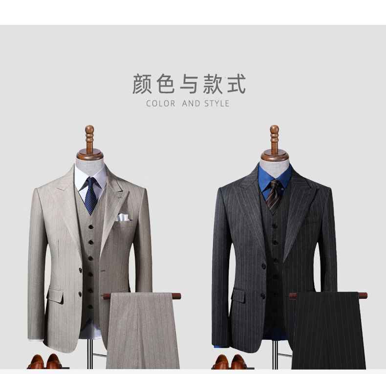 SUSTYLE high-end luxury men's suit men's suit business casual suit slim groom wedding dress three-piece suit beige XL