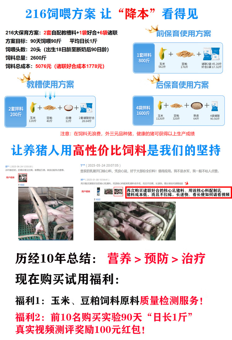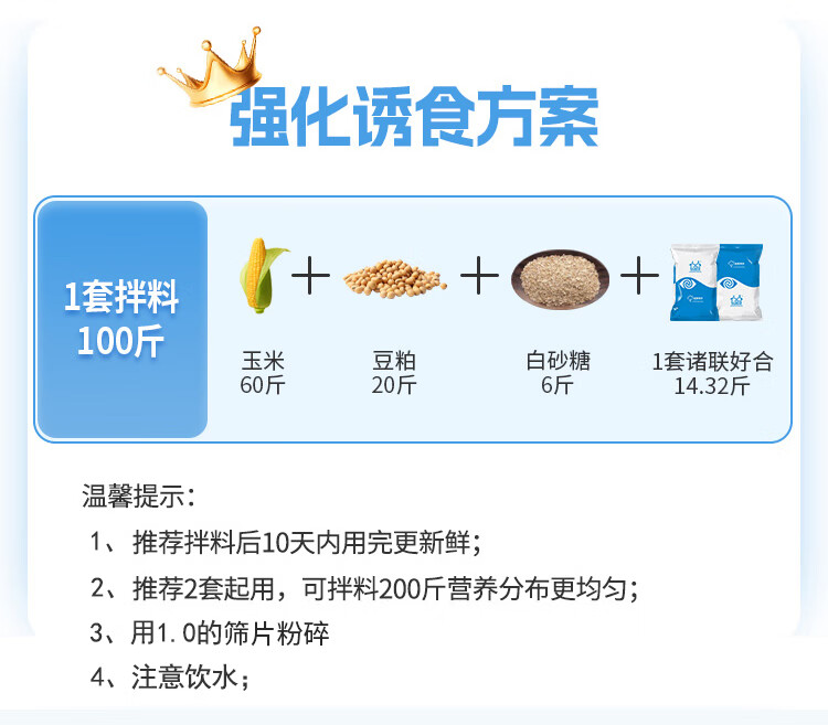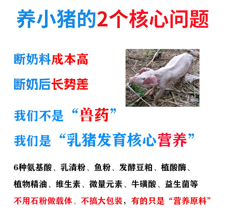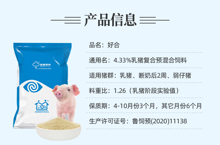 Self-prepared nursery pig feed with creep feed for piglets. Suitable for opening feed before and after weaning. Self-prepared pig premix. 1 set can be equipped with 100 Jin of creep feed. Jin is equal to 0.5 kg.